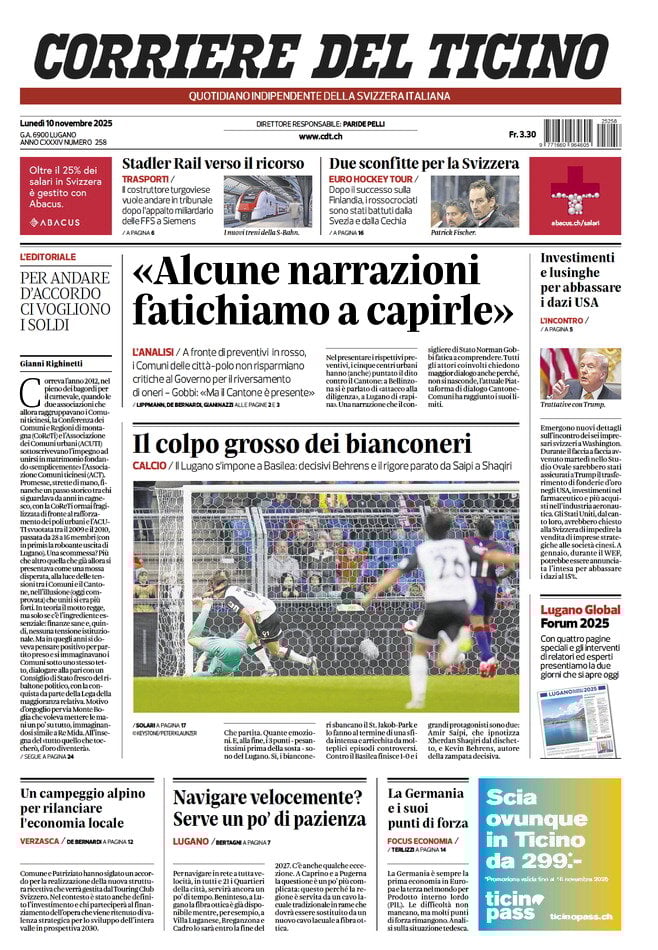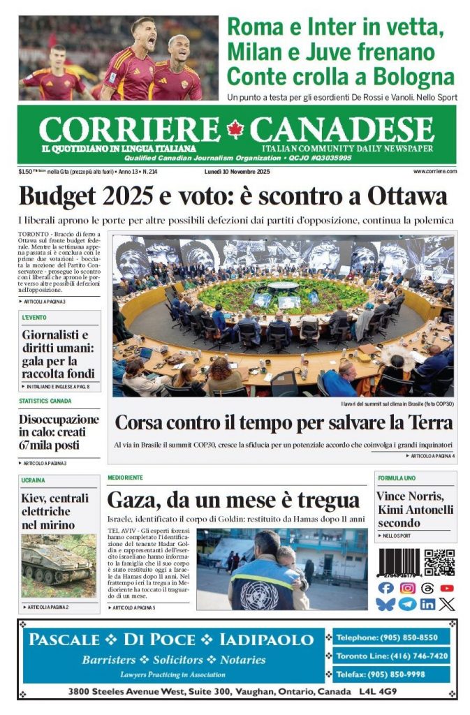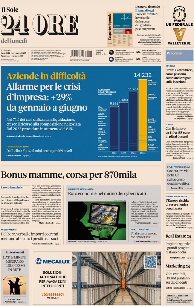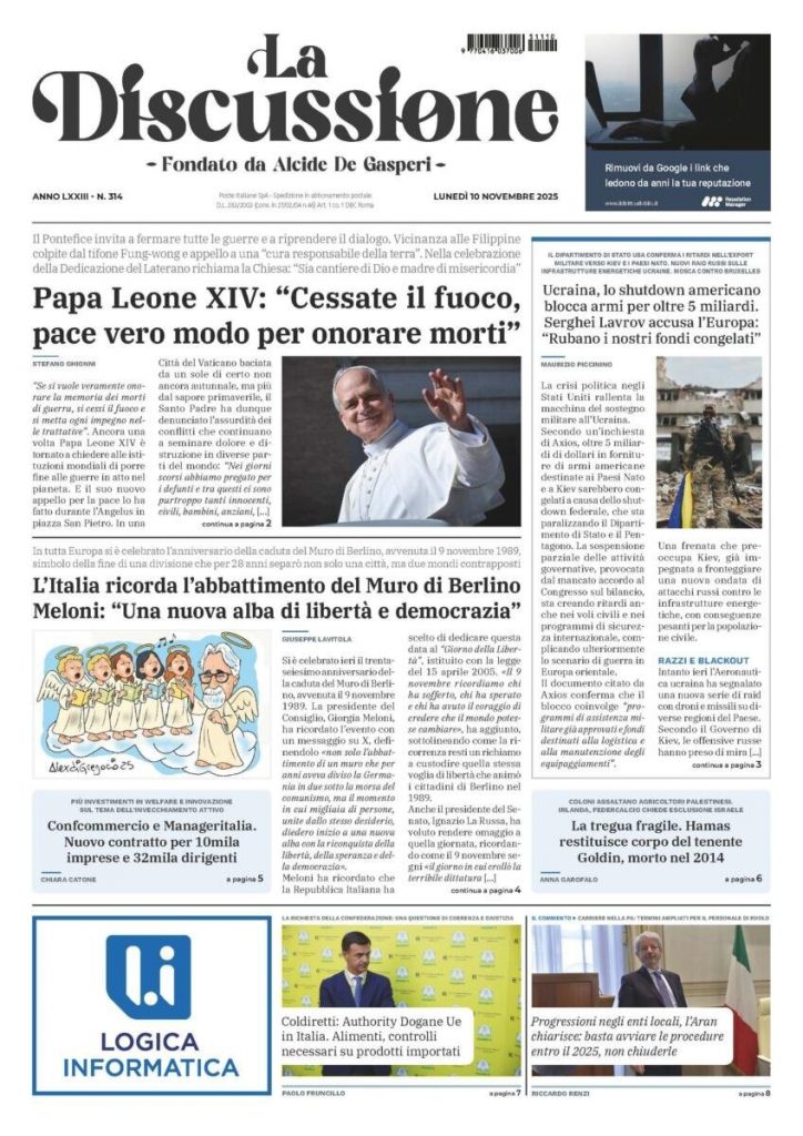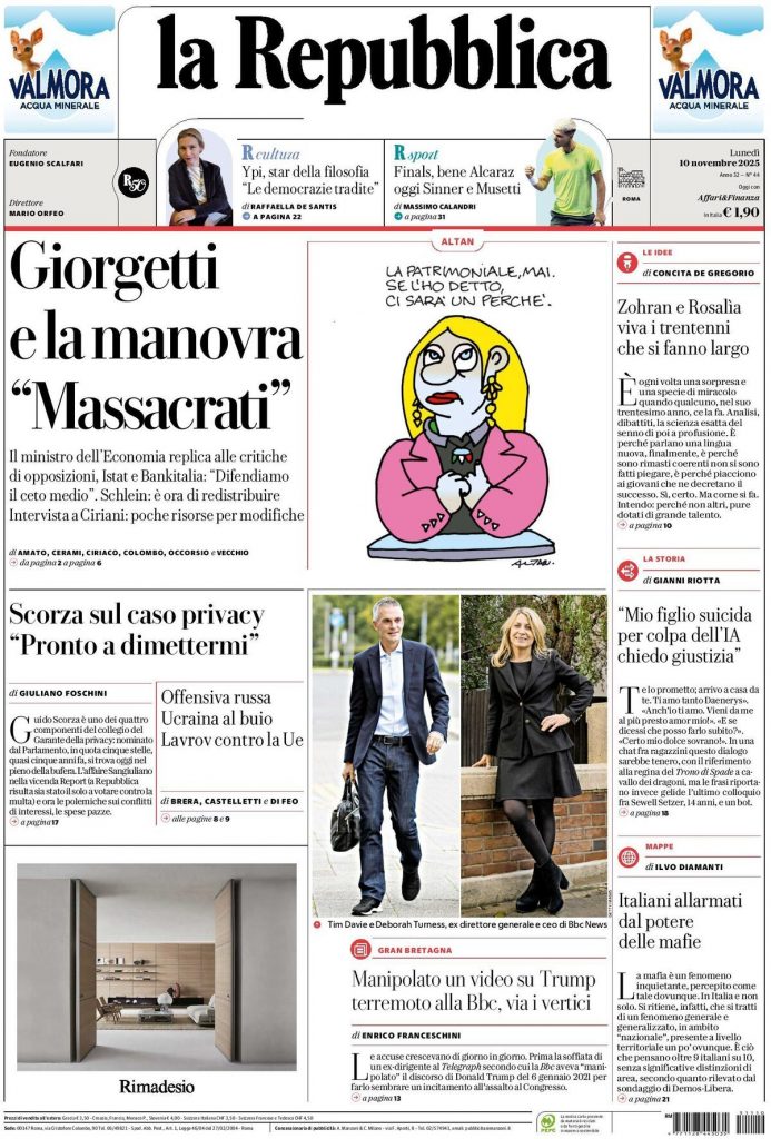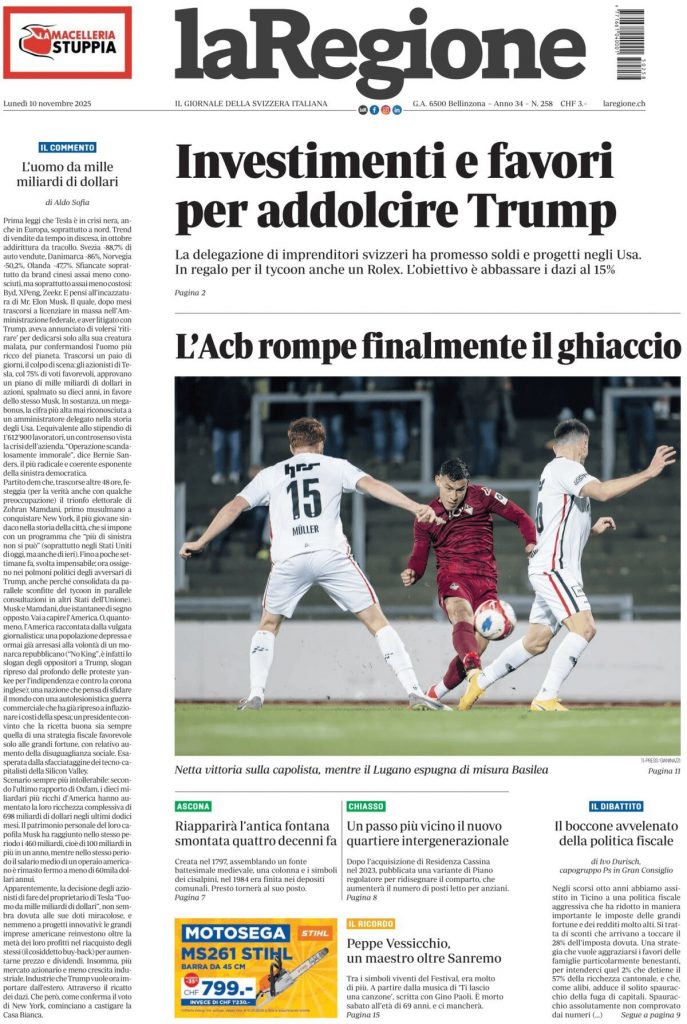 Caltanissetta 401 > News > Rassegna stampa > Le prime pagine delle maggiori testate giornalistiche siciliane, nazionali, economiche, sportive e straniere in Italia di Lunedì 10 Novembre 2025