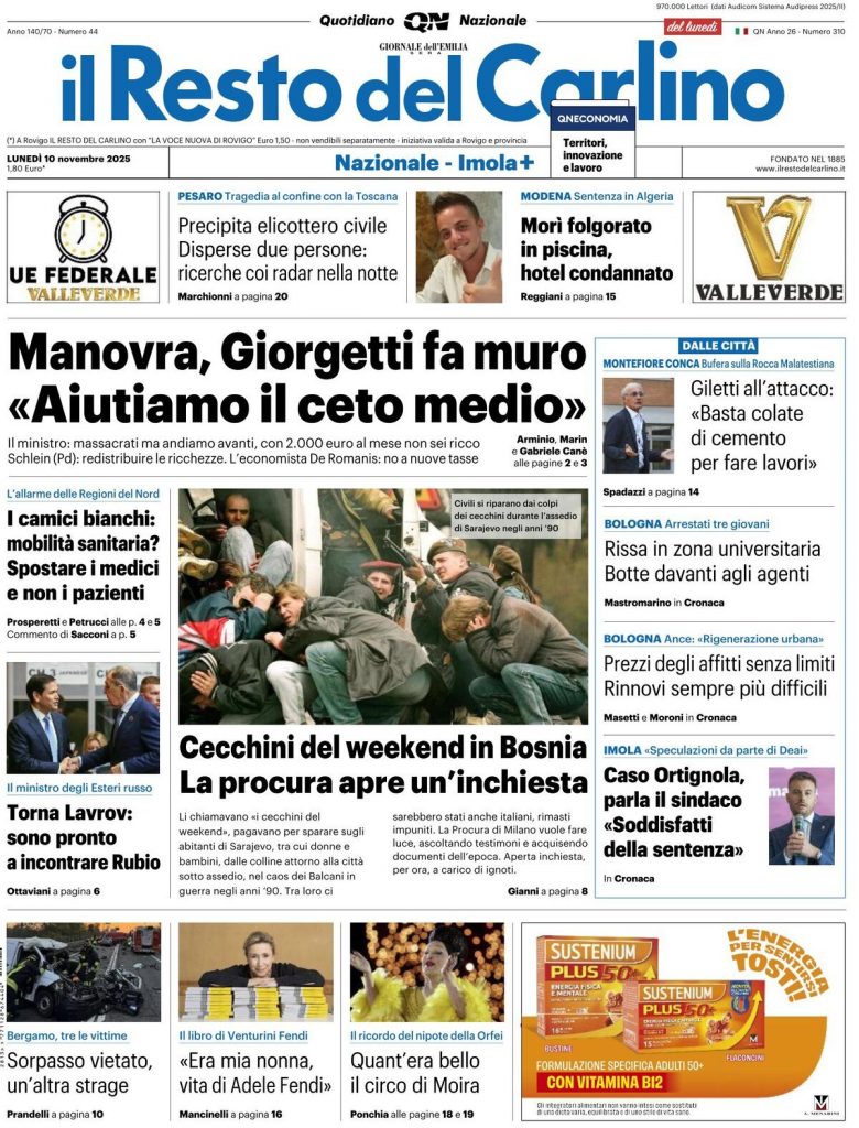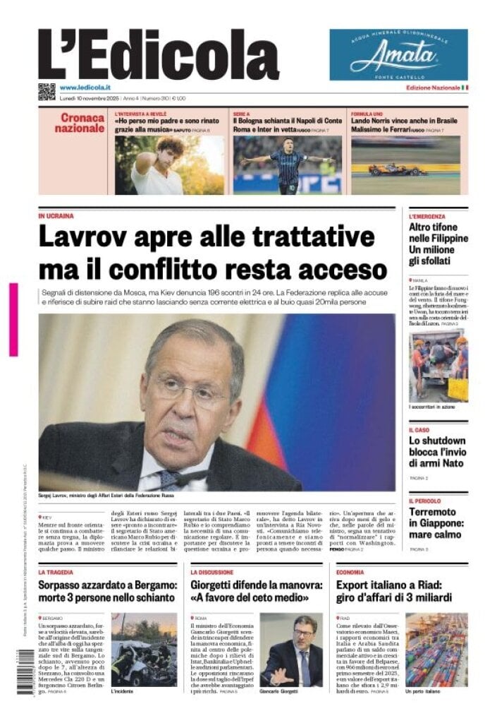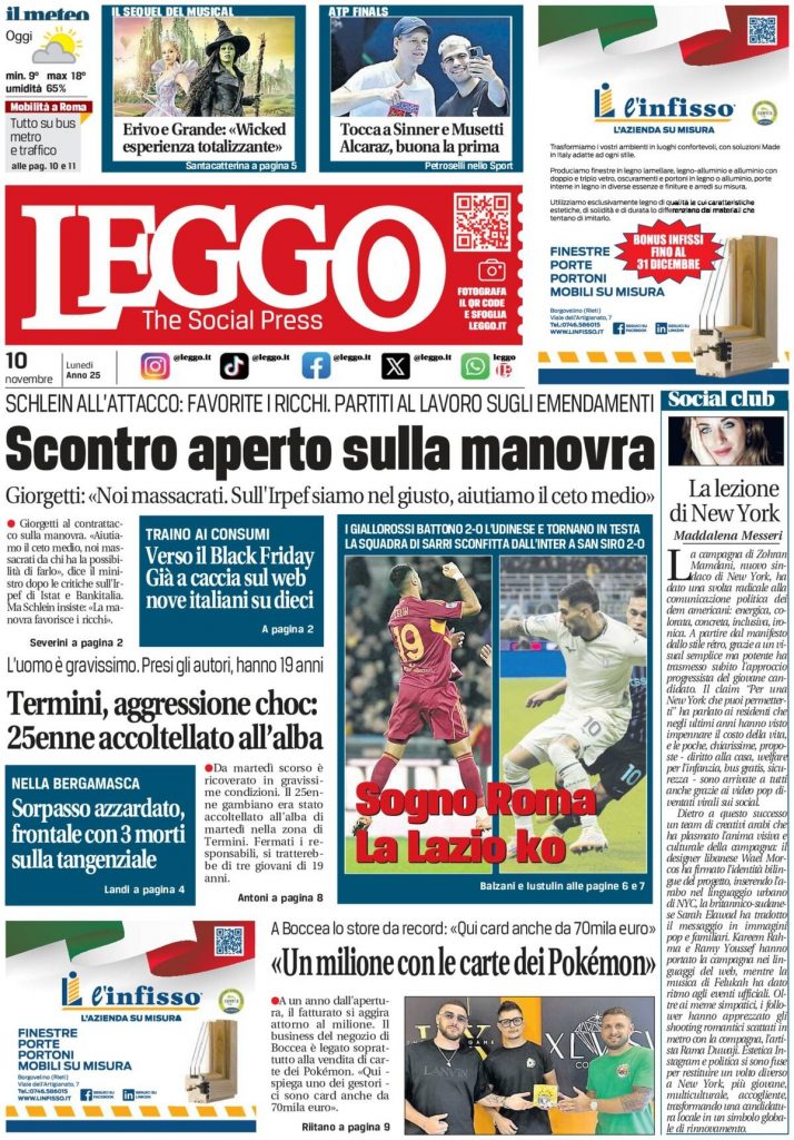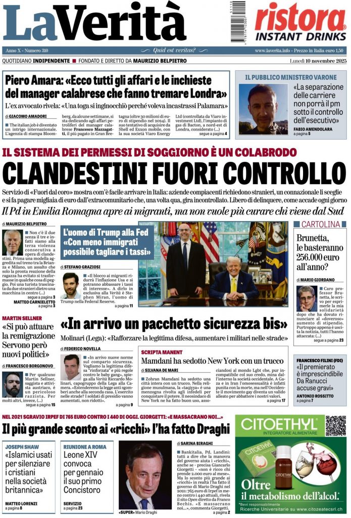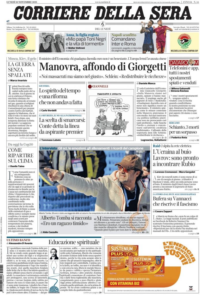 Reading: Le prime pagine delle maggiori testate giornalistiche siciliane, nazionali, economiche, sportive e straniere in Italia di Lunedì 10 Novembre 2025