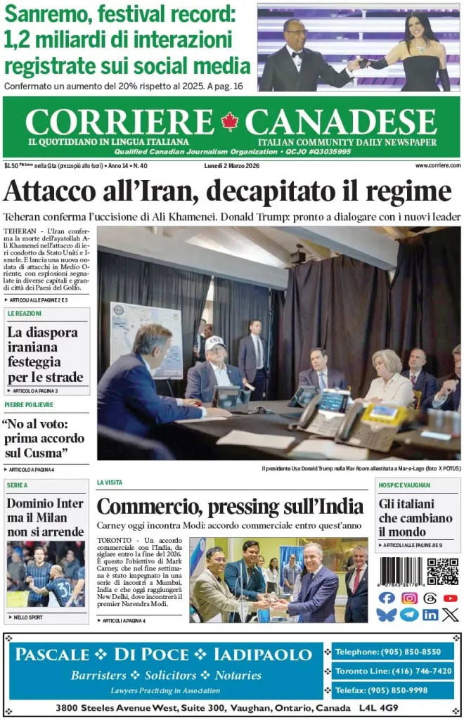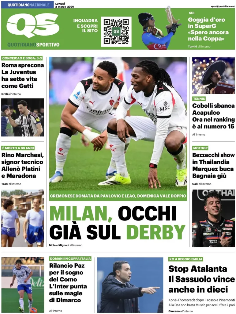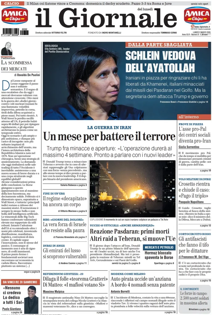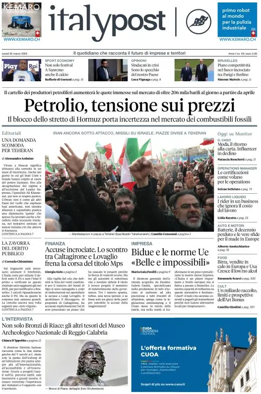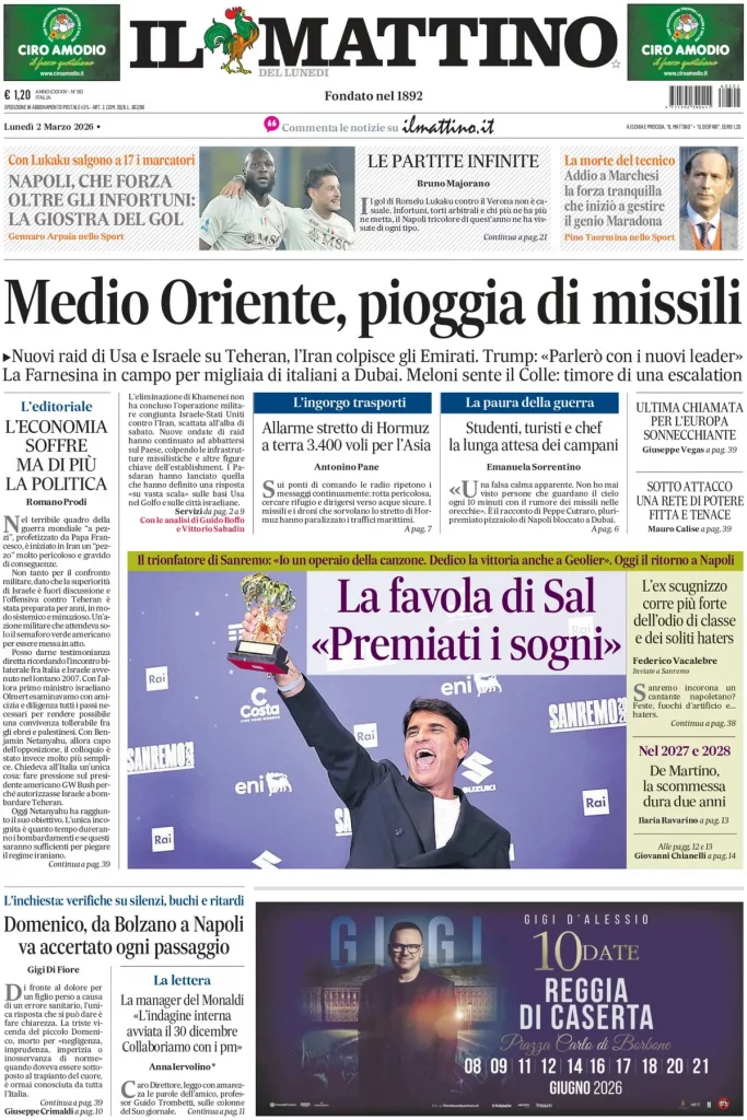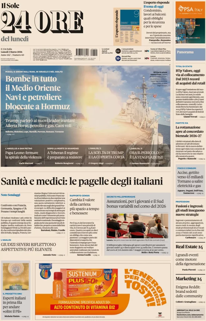 Reading: Le prime pagine delle maggiori testate giornalistiche siciliane, nazionali, economiche, sportive e straniere in Italia di Lunedì 2 Marzo 2026