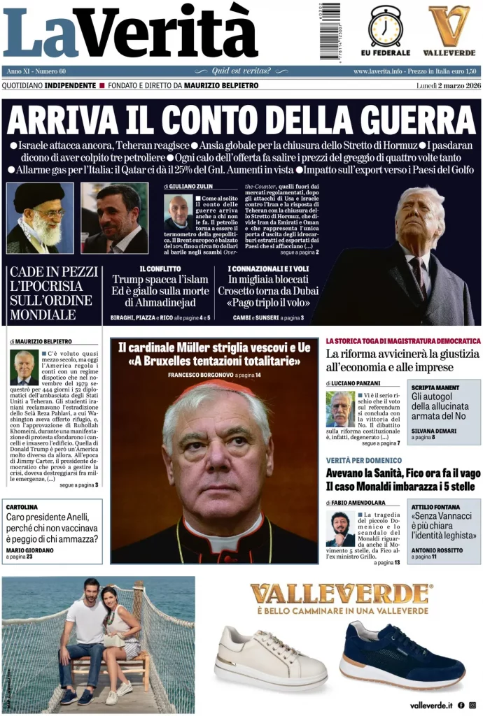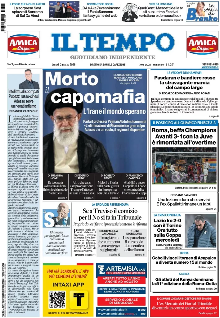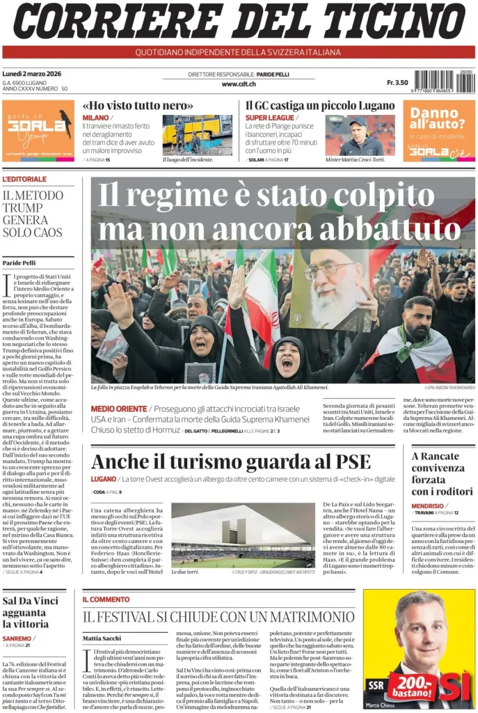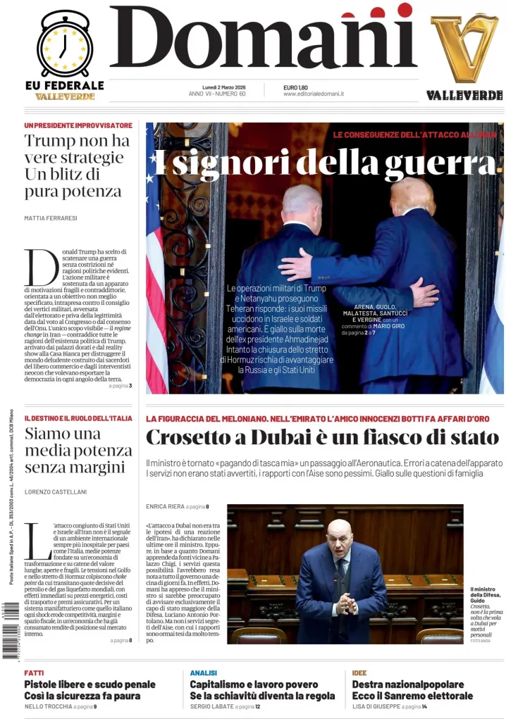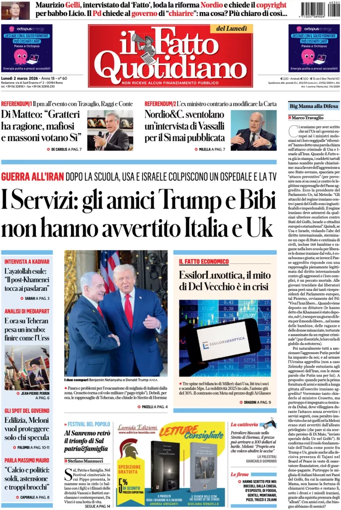 Le prime pagine delle maggiori testate giornalistiche siciliane, nazionali, economiche, sportive e straniere in Italia di Lunedì 2 Marzo 2026