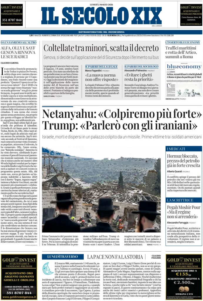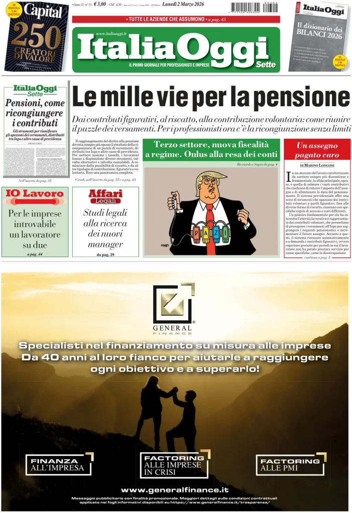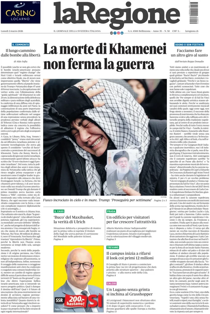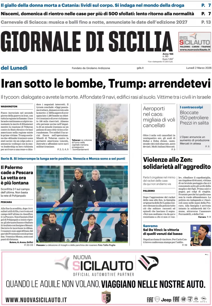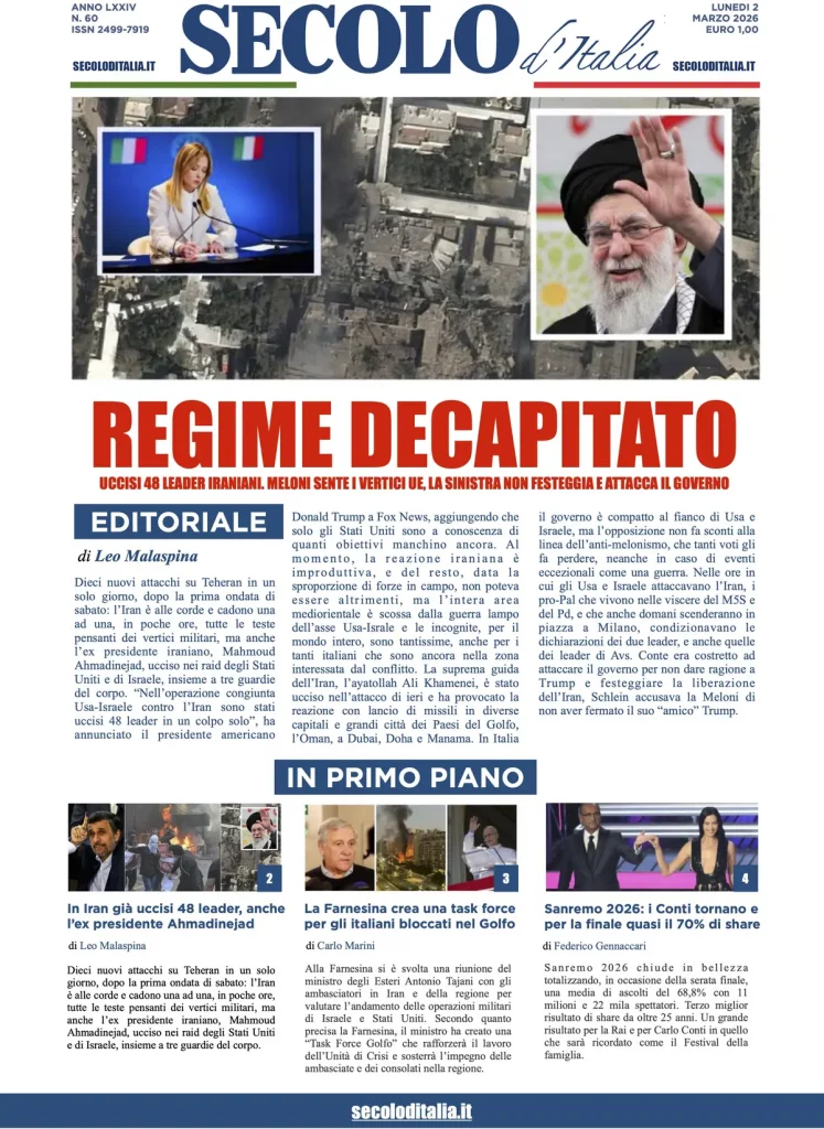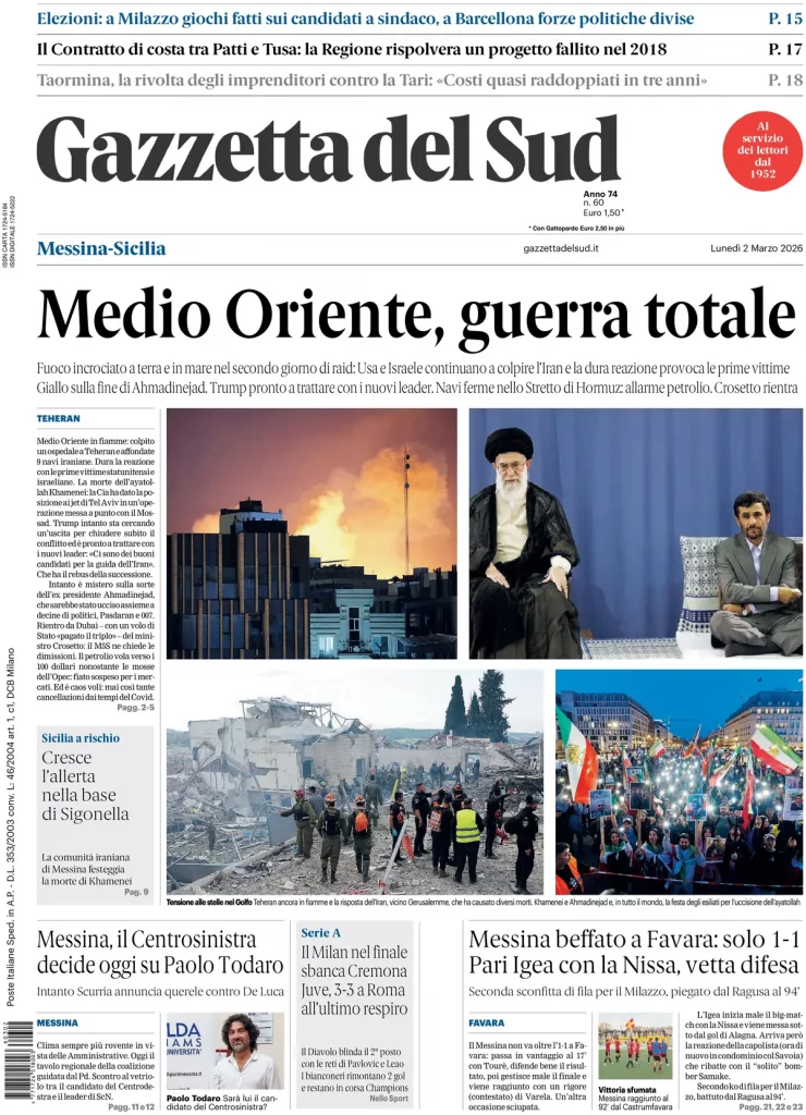 Caltanissetta 401 > News > Rassegna stampa > Le prime pagine delle maggiori testate giornalistiche siciliane, nazionali, economiche, sportive e straniere in Italia di Lunedì 2 Marzo 2026