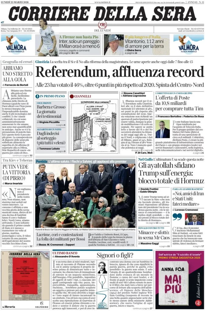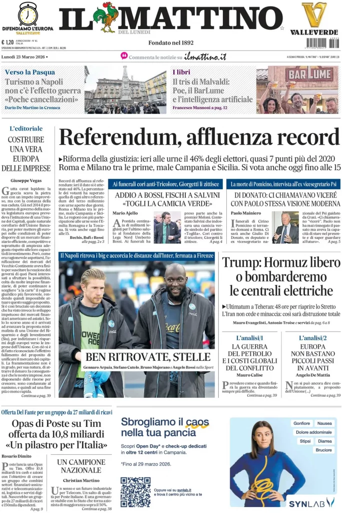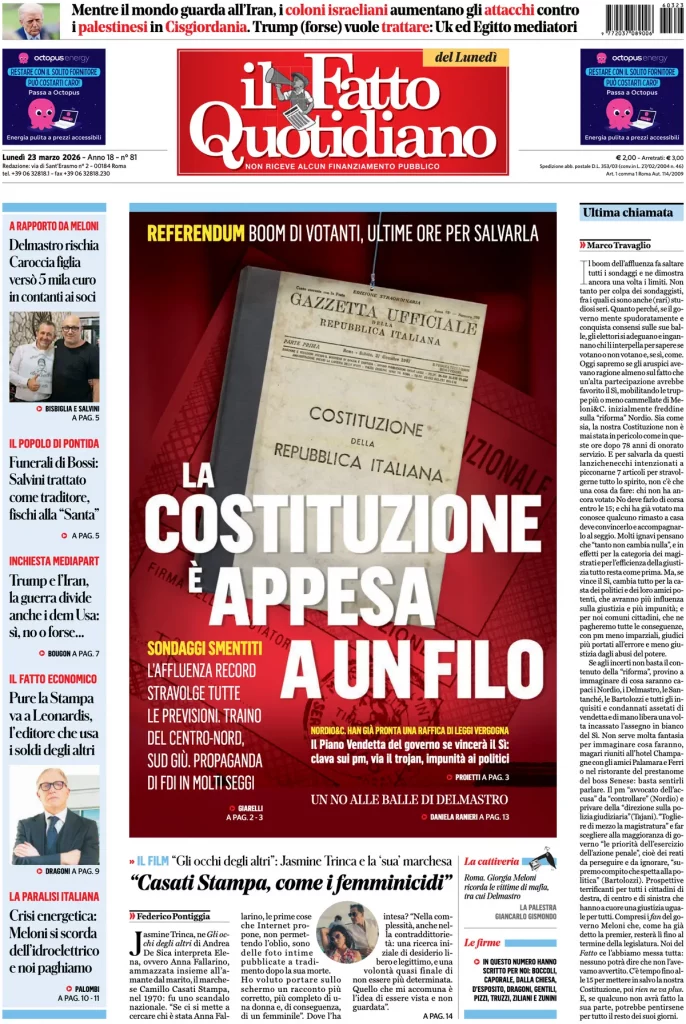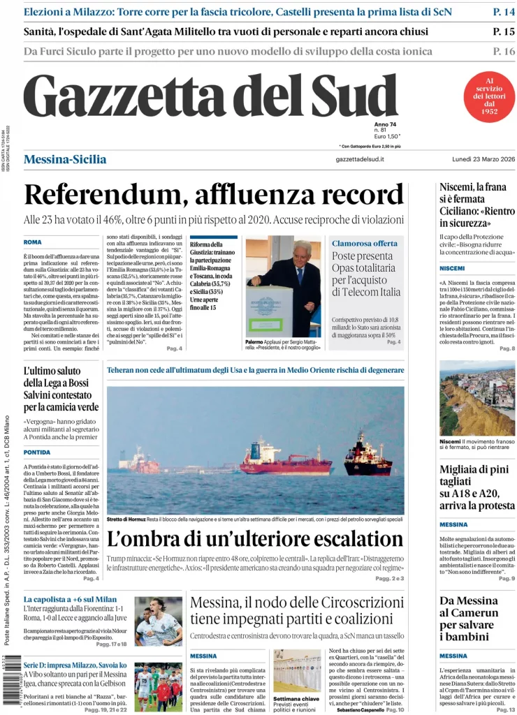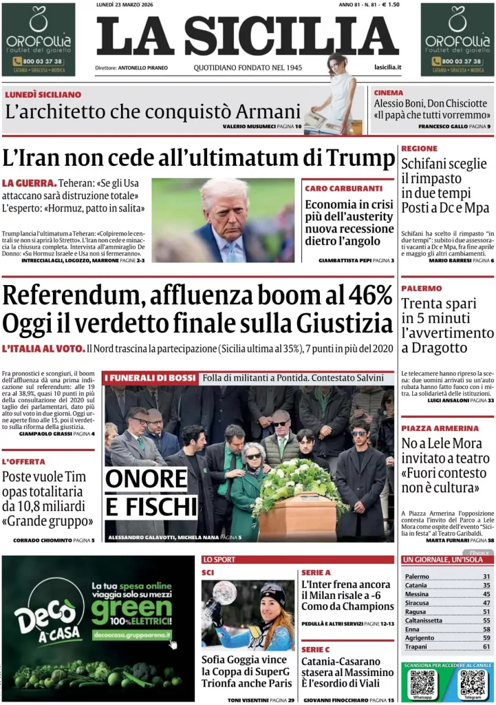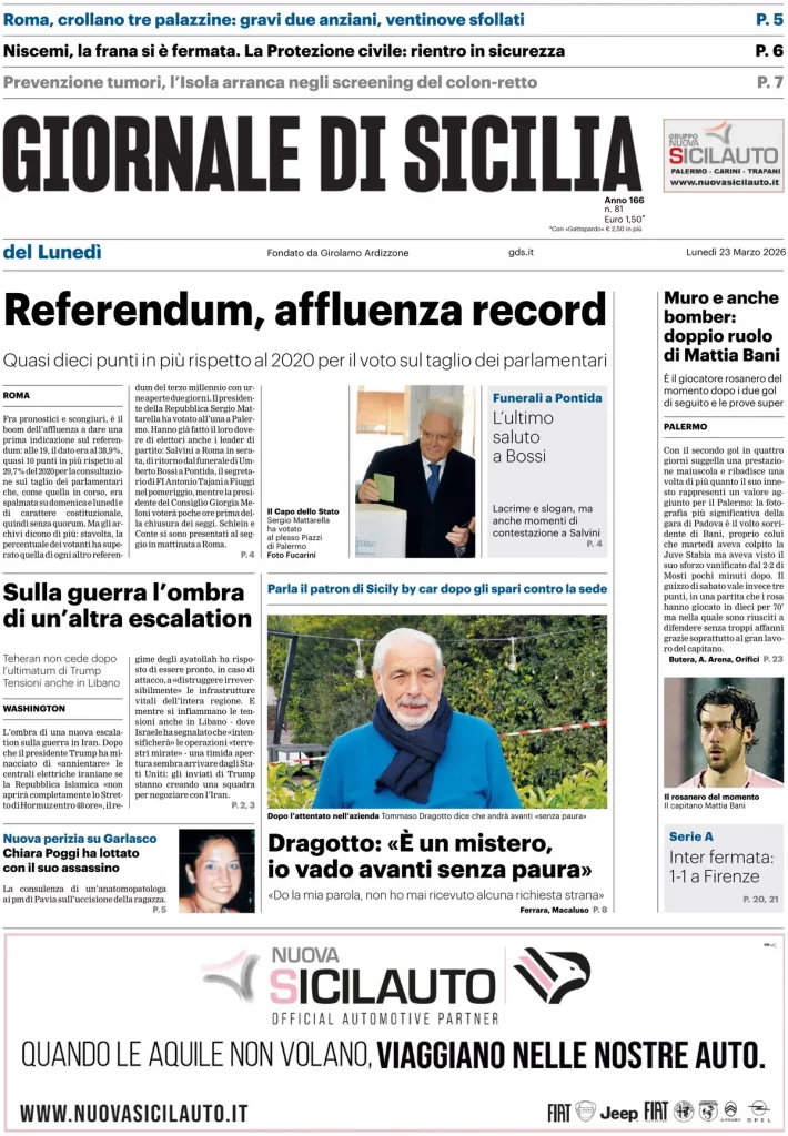 Le prime pagine delle maggiori testate giornalistiche siciliane, nazionali, economiche, sportive e straniere in Italia