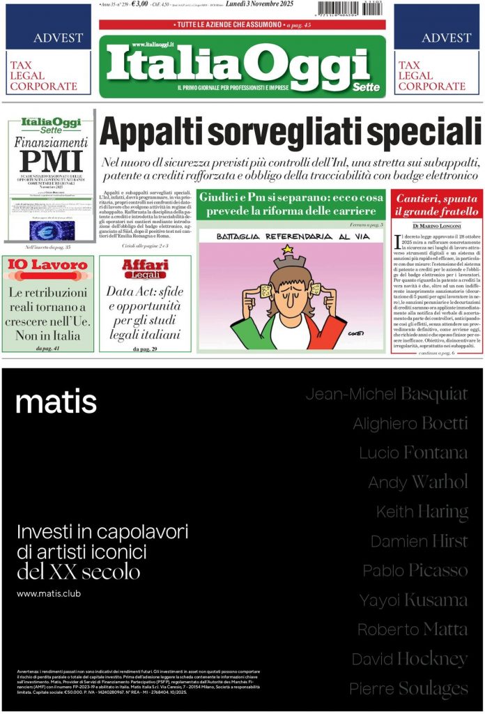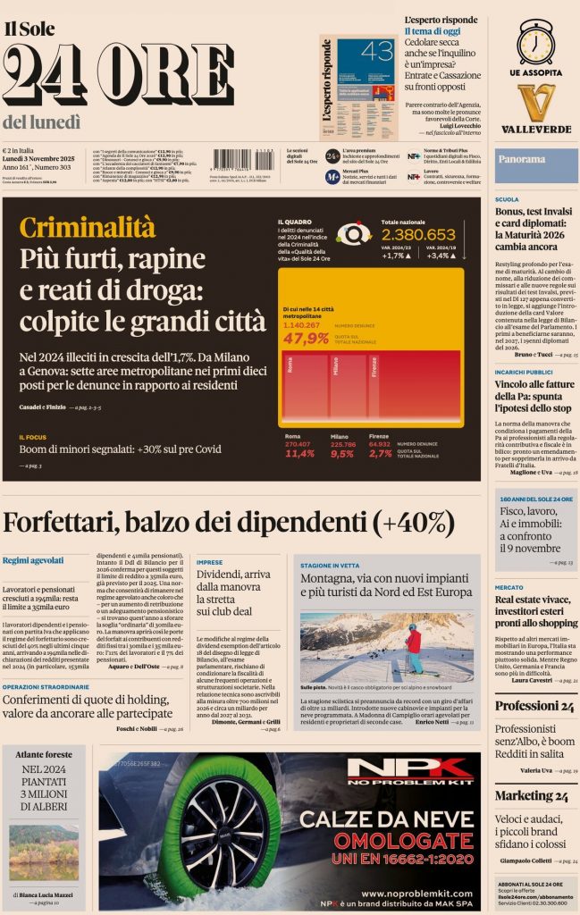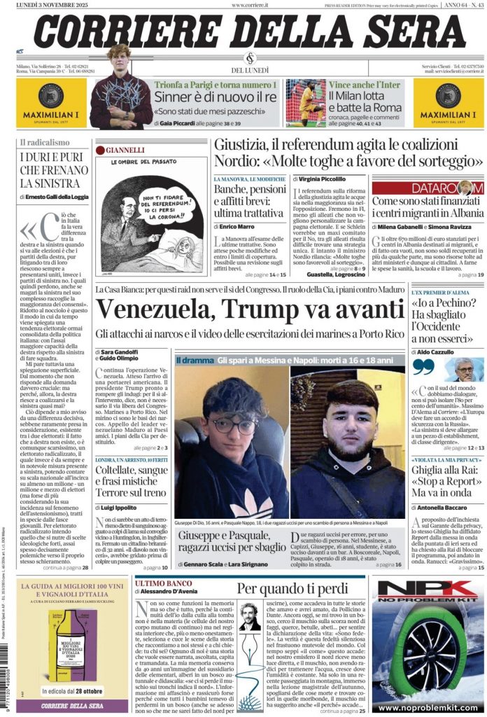 Reading: Le prime pagine delle maggiori testate giornalistiche siciliane, nazionali, economiche, sportive e straniere in Italia di Lunedì 3 Novembre 2025