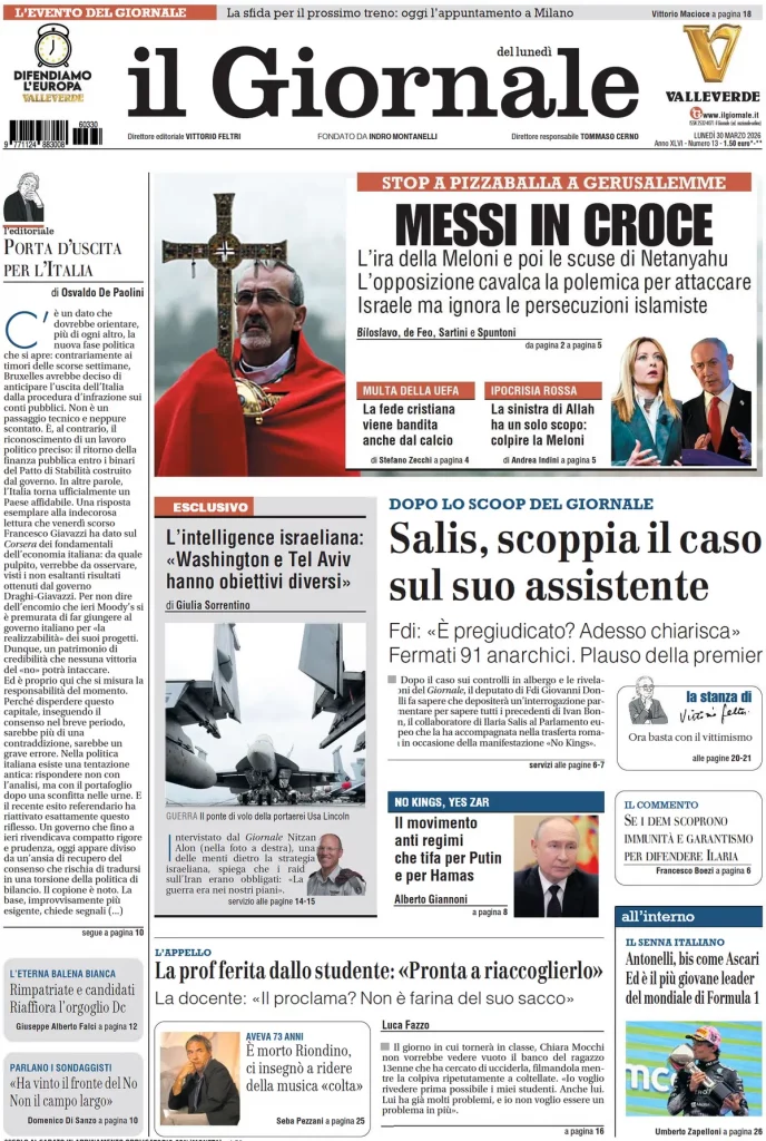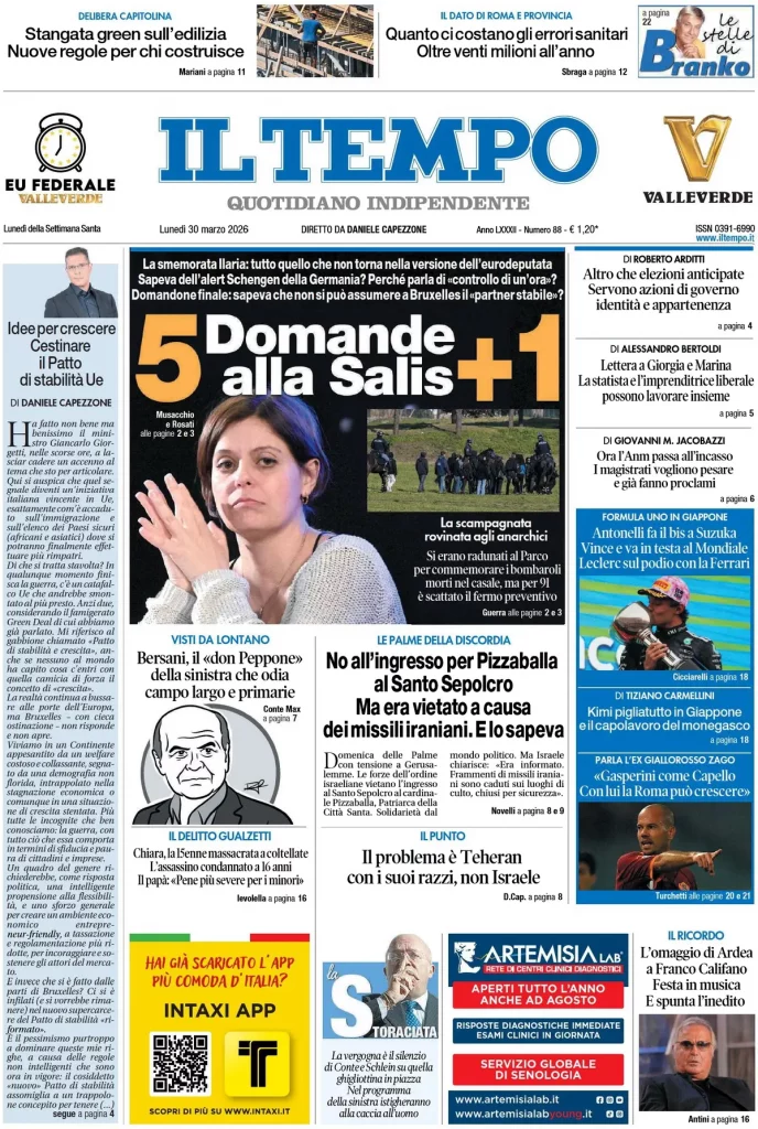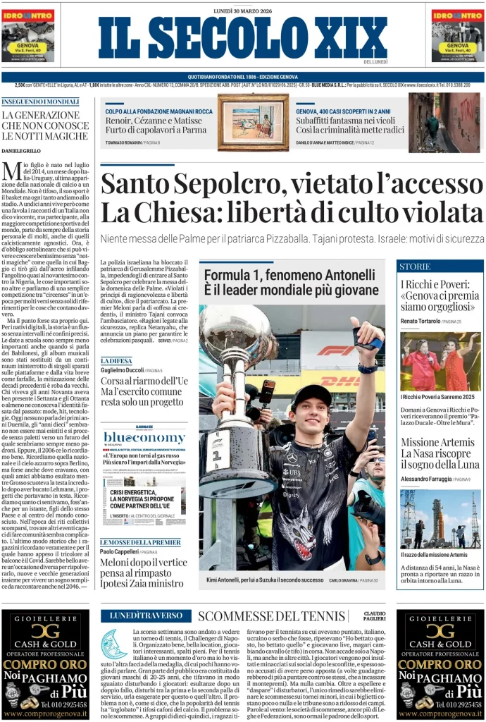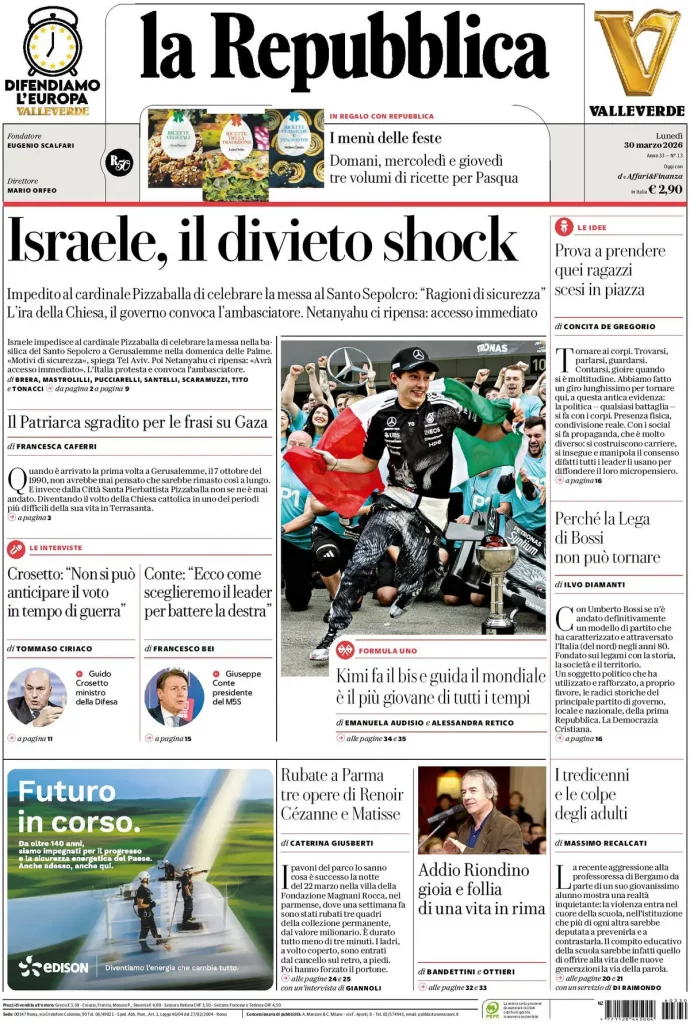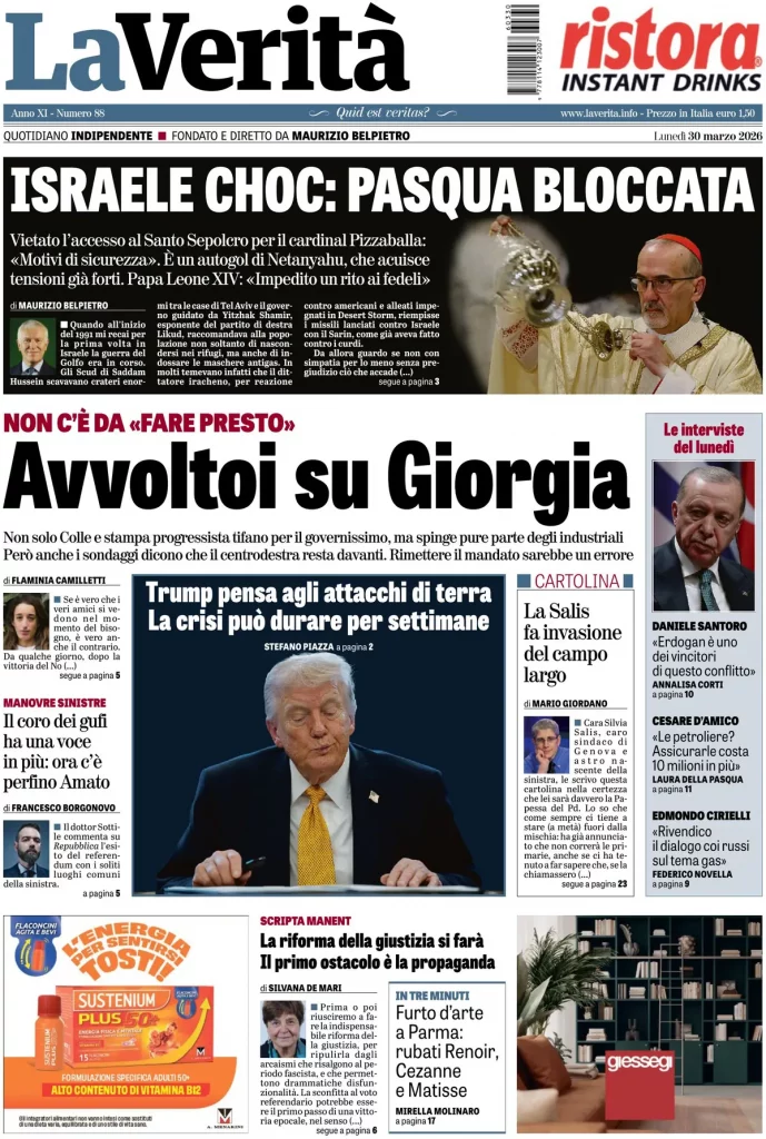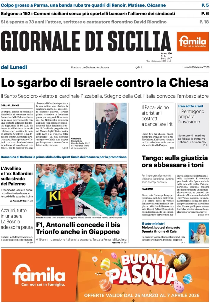 Caltanissetta 401 > News > Rassegna stampa > Le prime pagine delle maggiori testate giornalistiche siciliane, nazionali, economiche, sportive e straniere in Italia di Lunedì 30 Marzo 2026