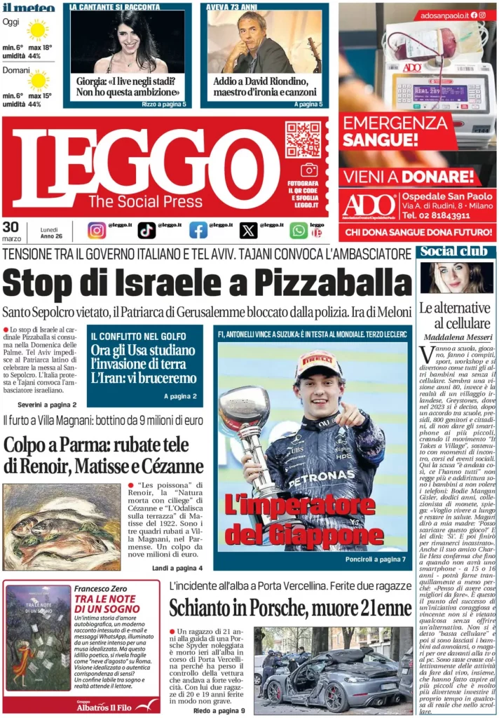 Reading: Le prime pagine delle maggiori testate giornalistiche siciliane, nazionali, economiche, sportive e straniere in Italia di Lunedì 30 Marzo 2026