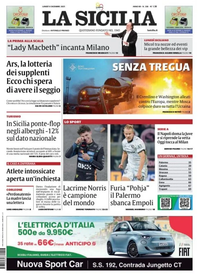 Le prime pagine delle maggiori testate giornalistiche siciliane, nazionali, economiche, sportive e straniere in Italia