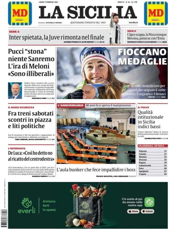 Le prime pagine delle maggiori testate giornalistiche siciliane, nazionali, economiche, sportive e straniere in Italia