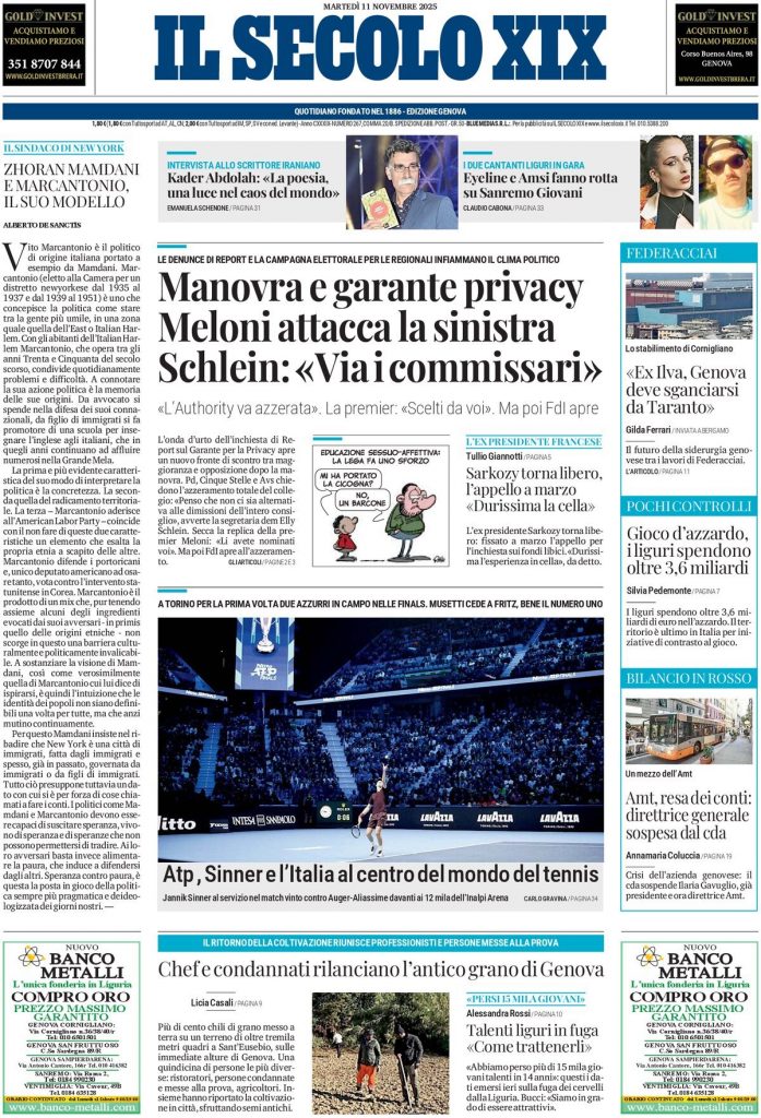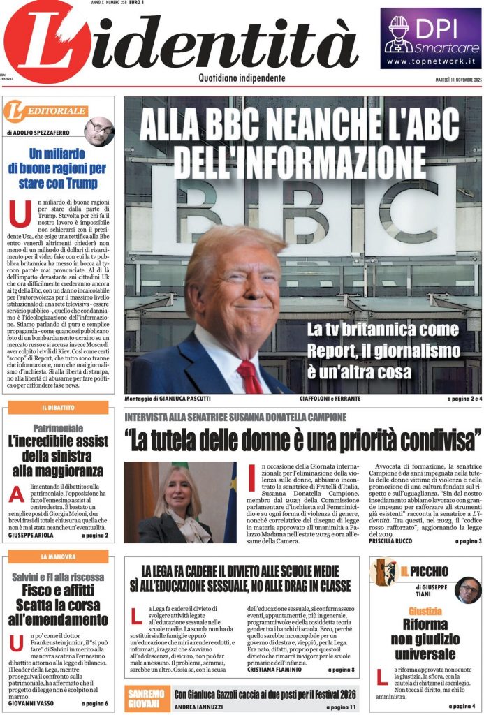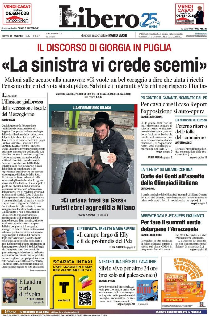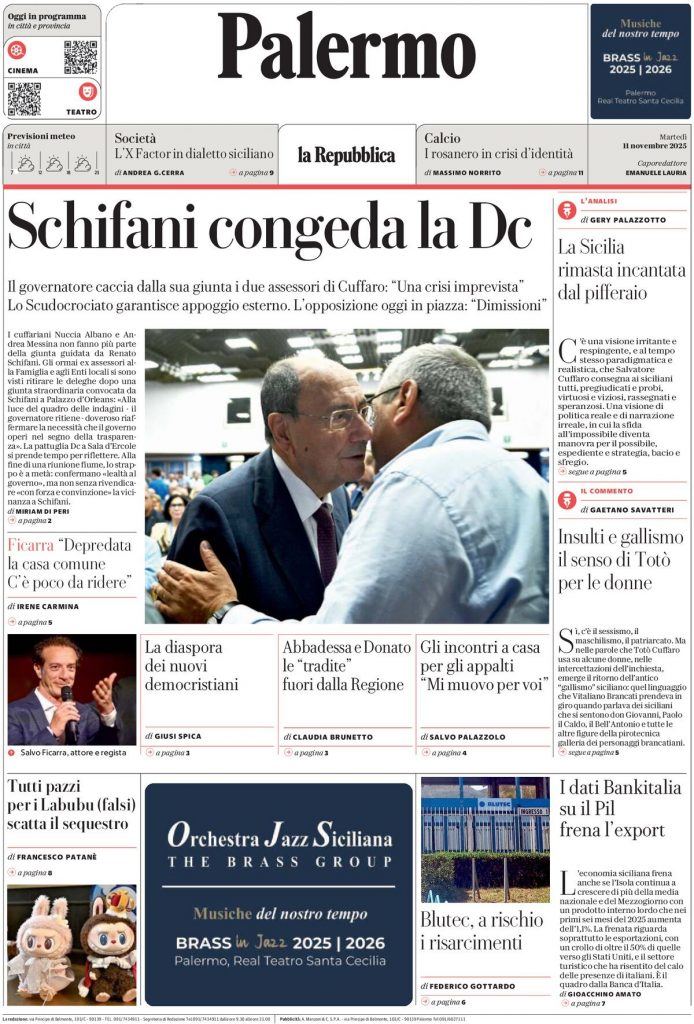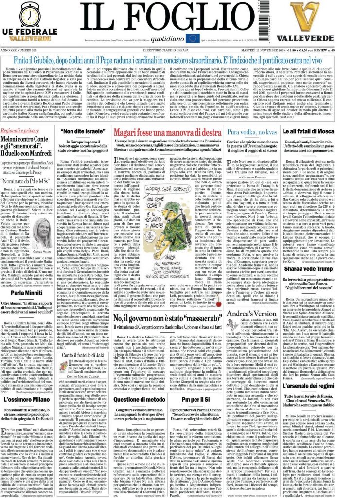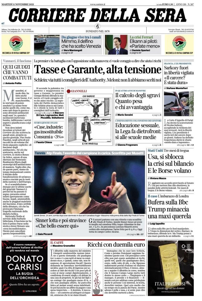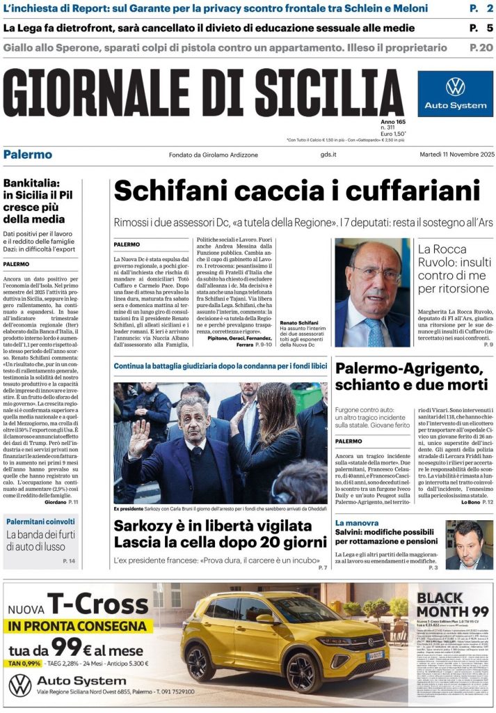 Reading: Le prime pagine delle maggiori testate giornalistiche siciliane, nazionali, economiche, sportive e straniere in Italia di Martedì 11 Novembre 2025