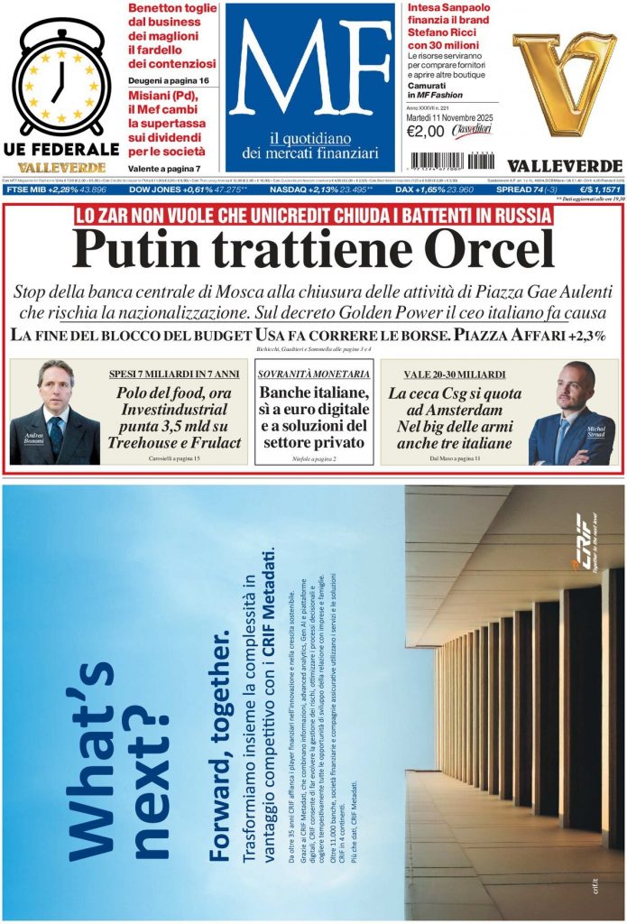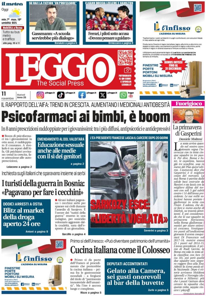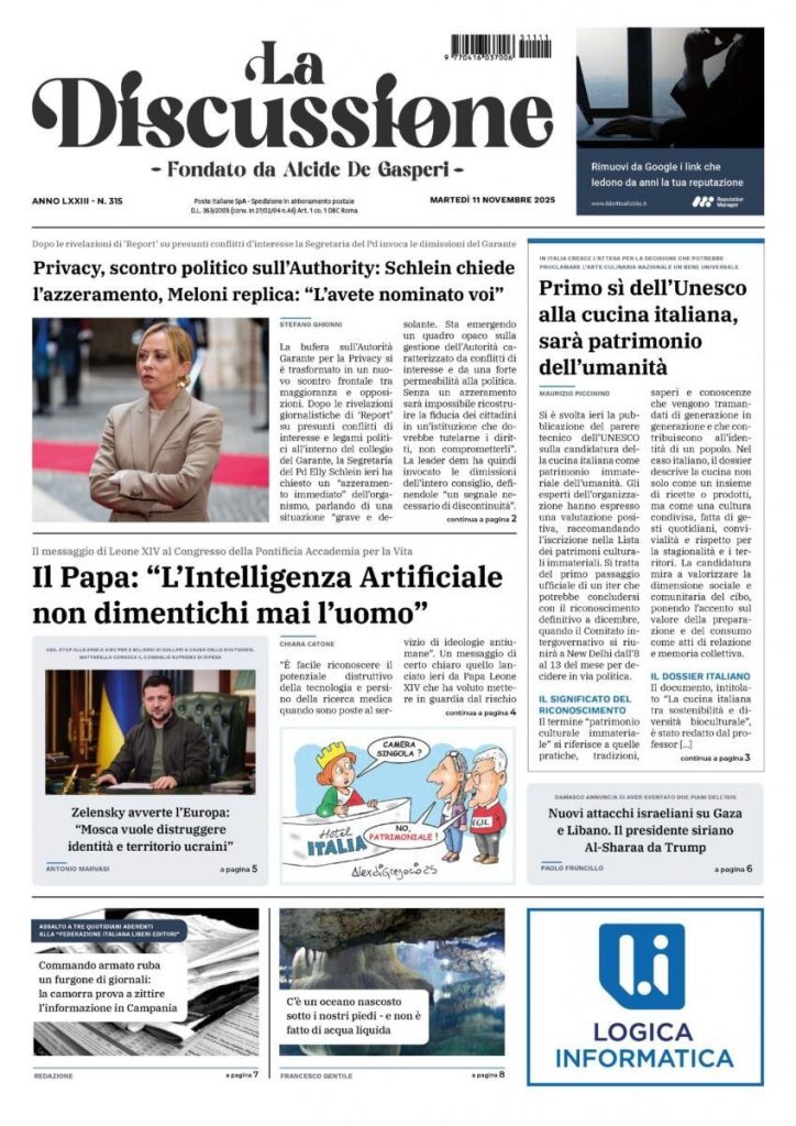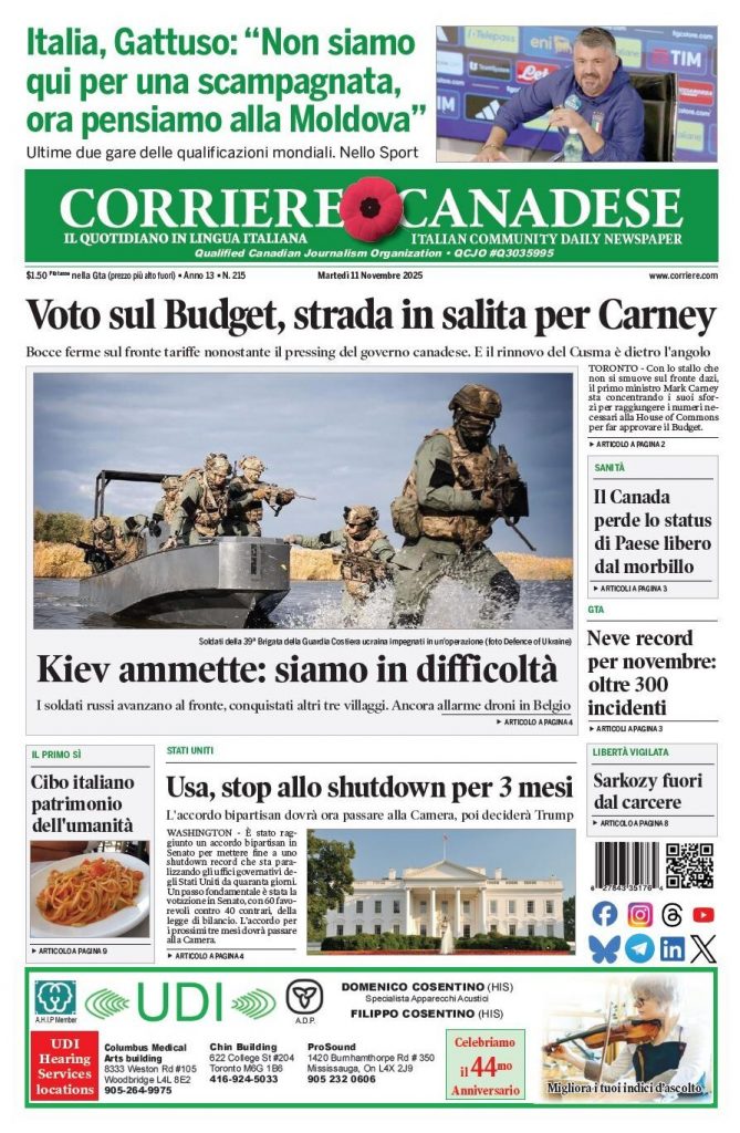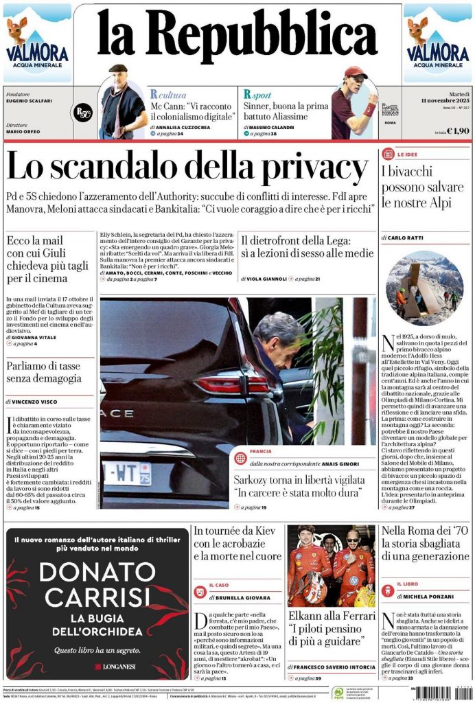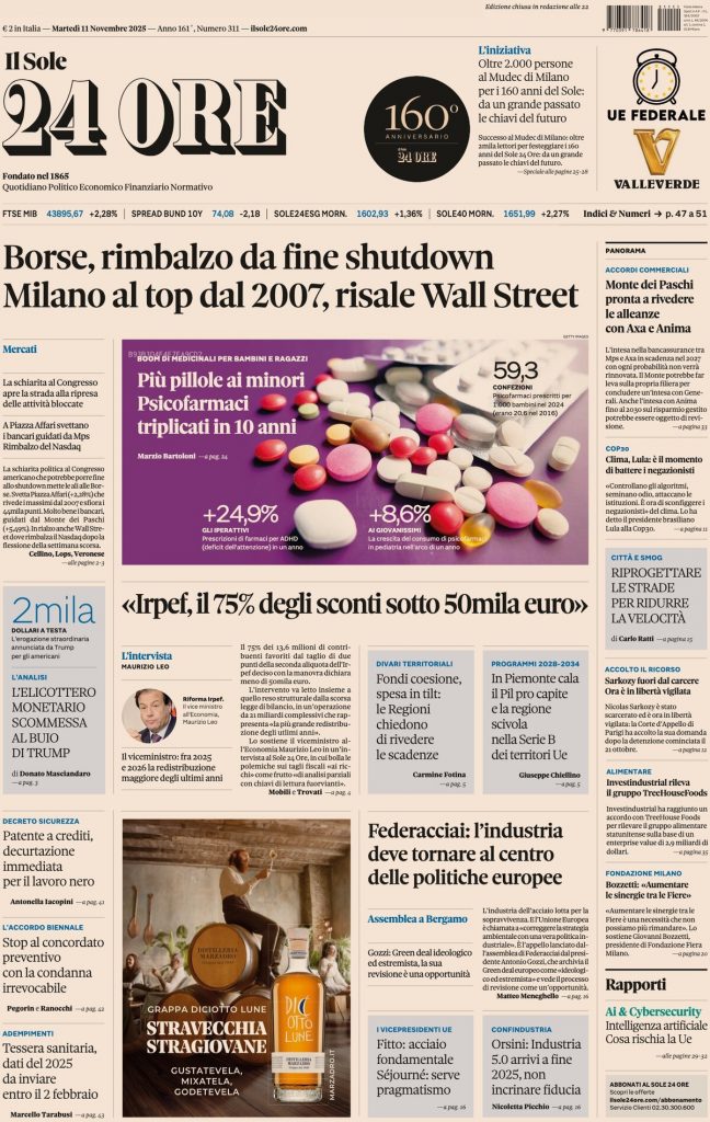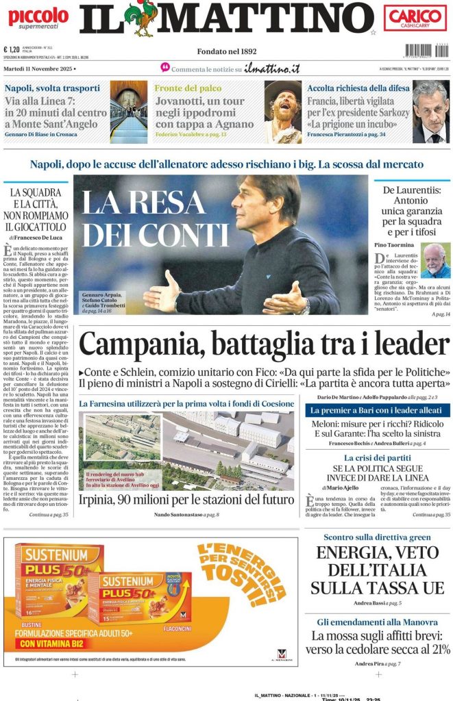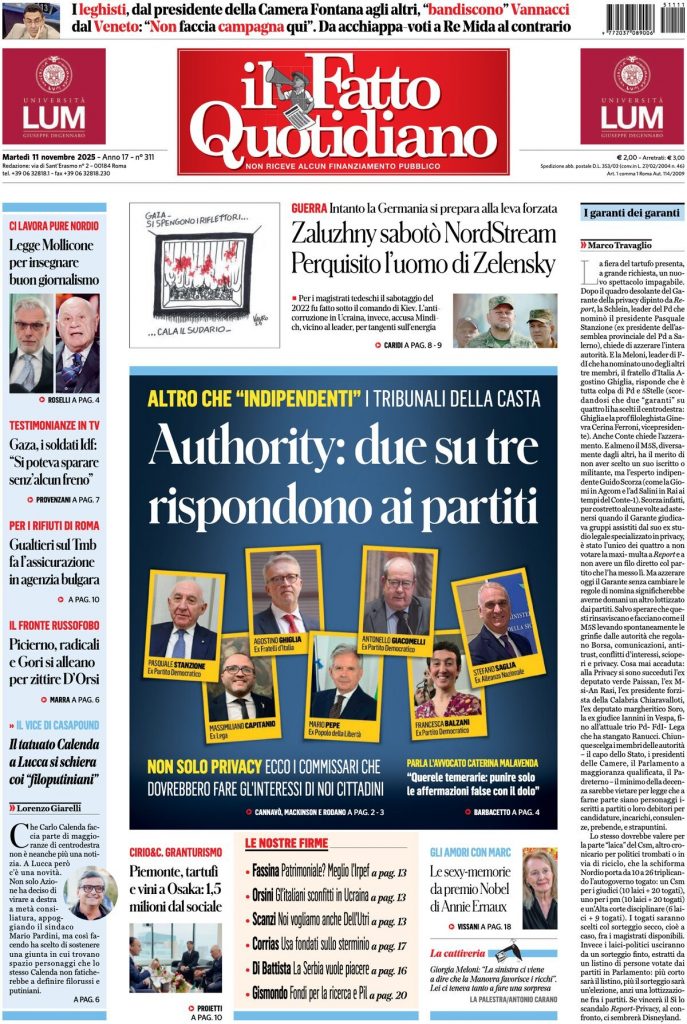 Reading: Le prime pagine delle maggiori testate giornalistiche siciliane, nazionali, economiche, sportive e straniere in Italia di Martedì 11 Novembre 2025