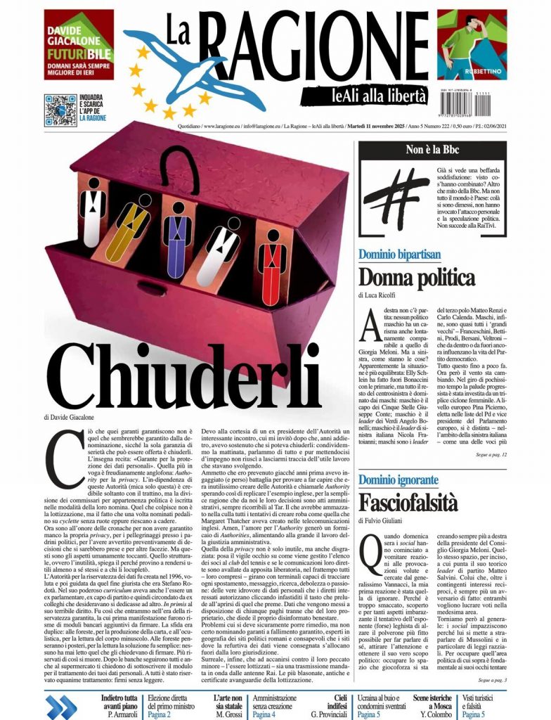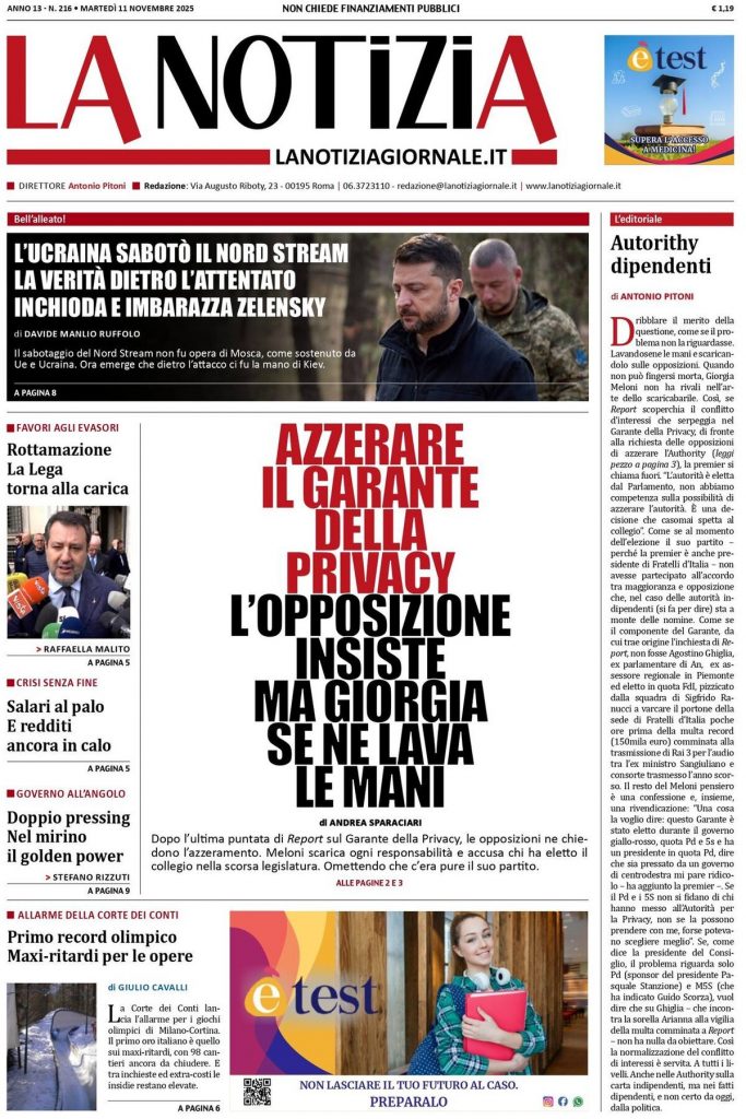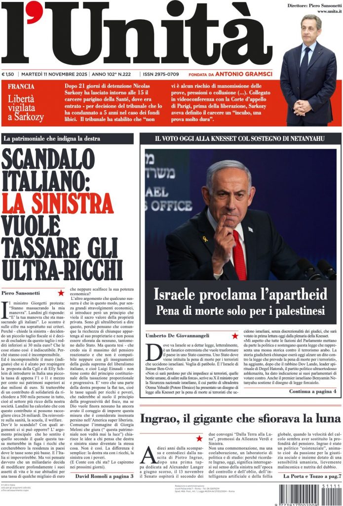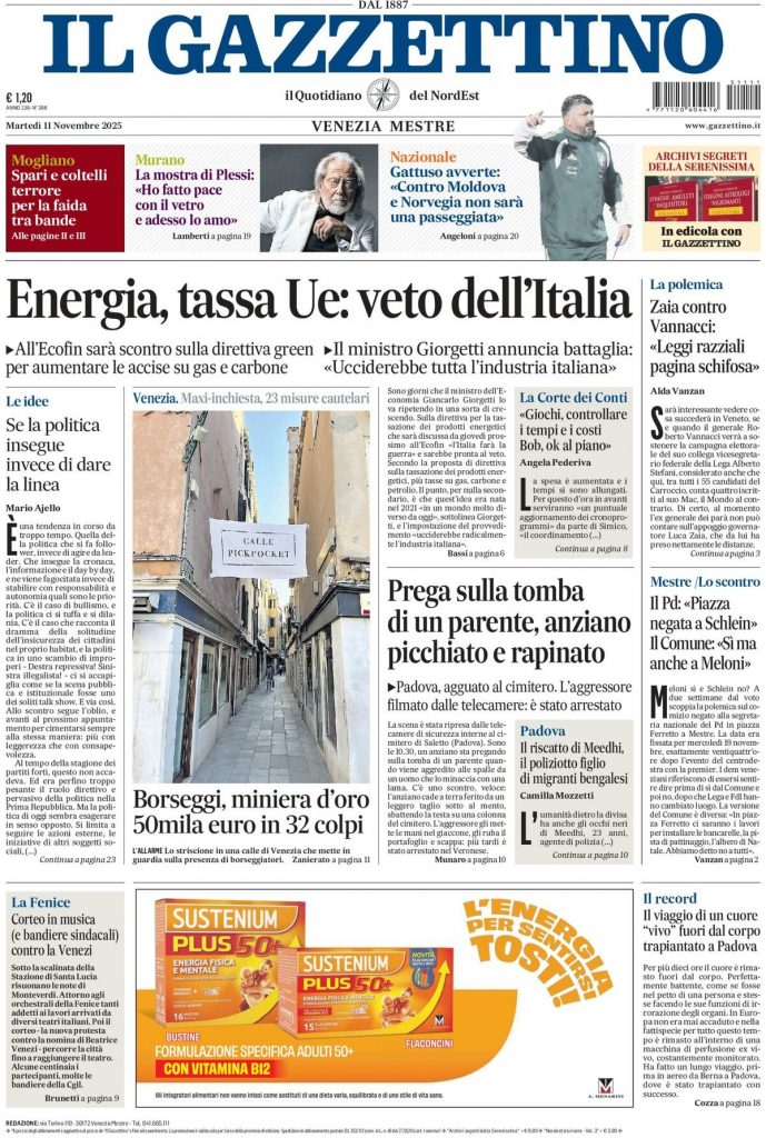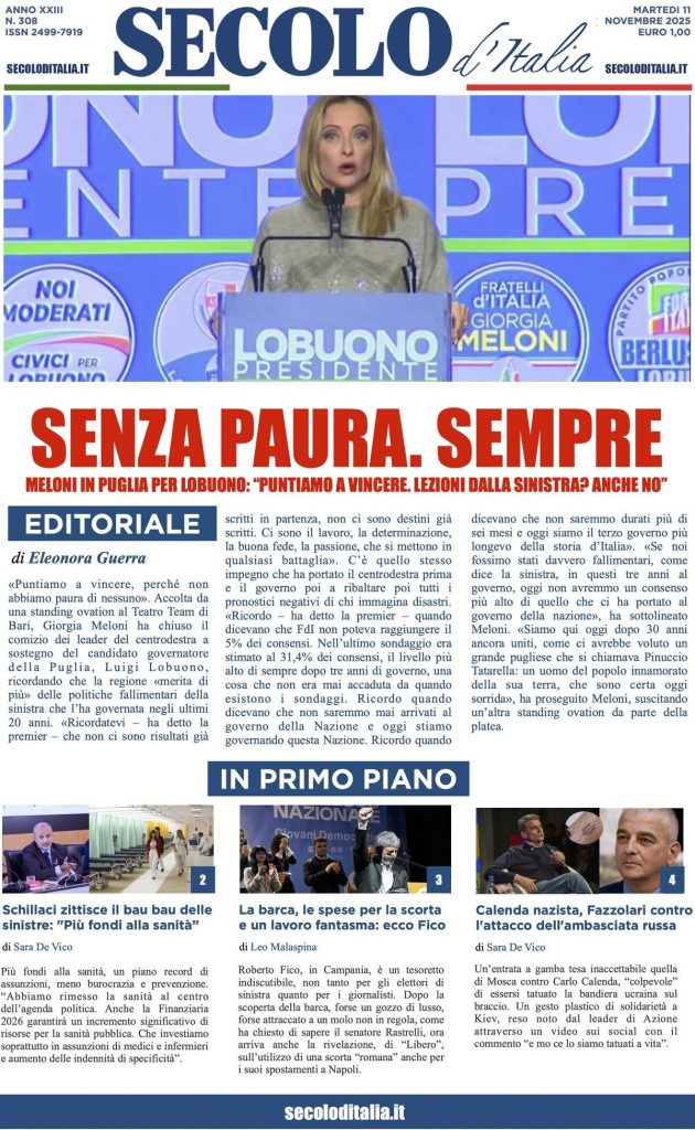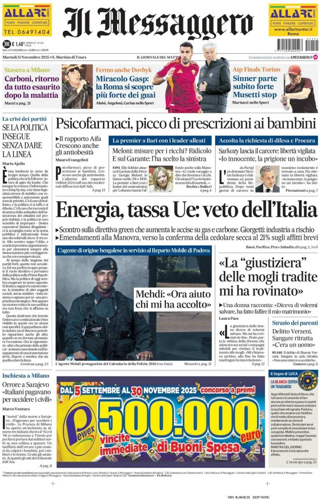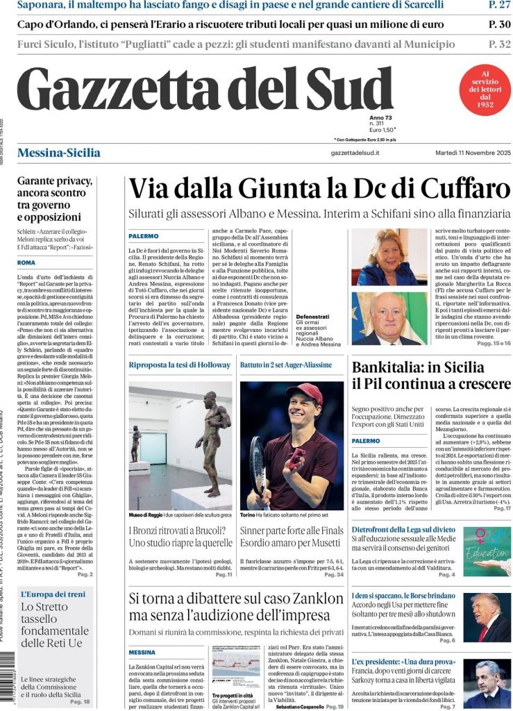 Caltanissetta 401 > News > Rassegna stampa > Le prime pagine delle maggiori testate giornalistiche siciliane, nazionali, economiche, sportive e straniere in Italia di Martedì 11 Novembre 2025