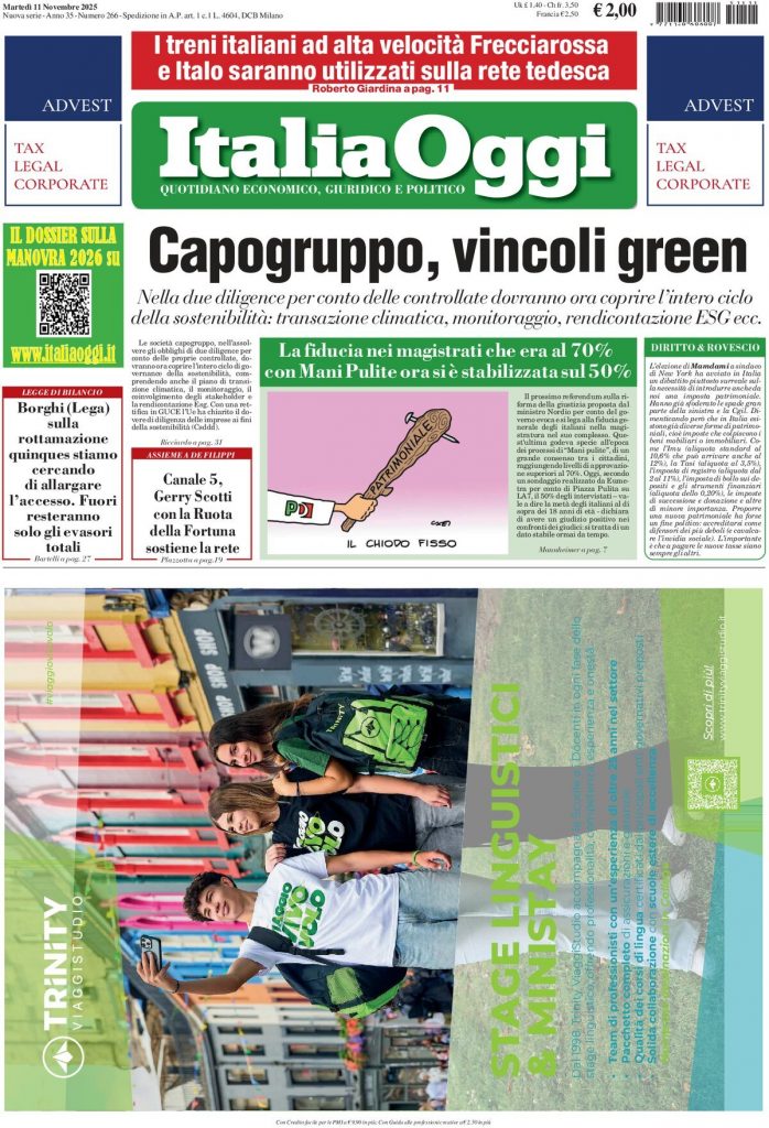 Le prime pagine delle maggiori testate giornalistiche siciliane, nazionali, economiche, sportive e straniere in Italia di Martedì 11 Novembre 2025