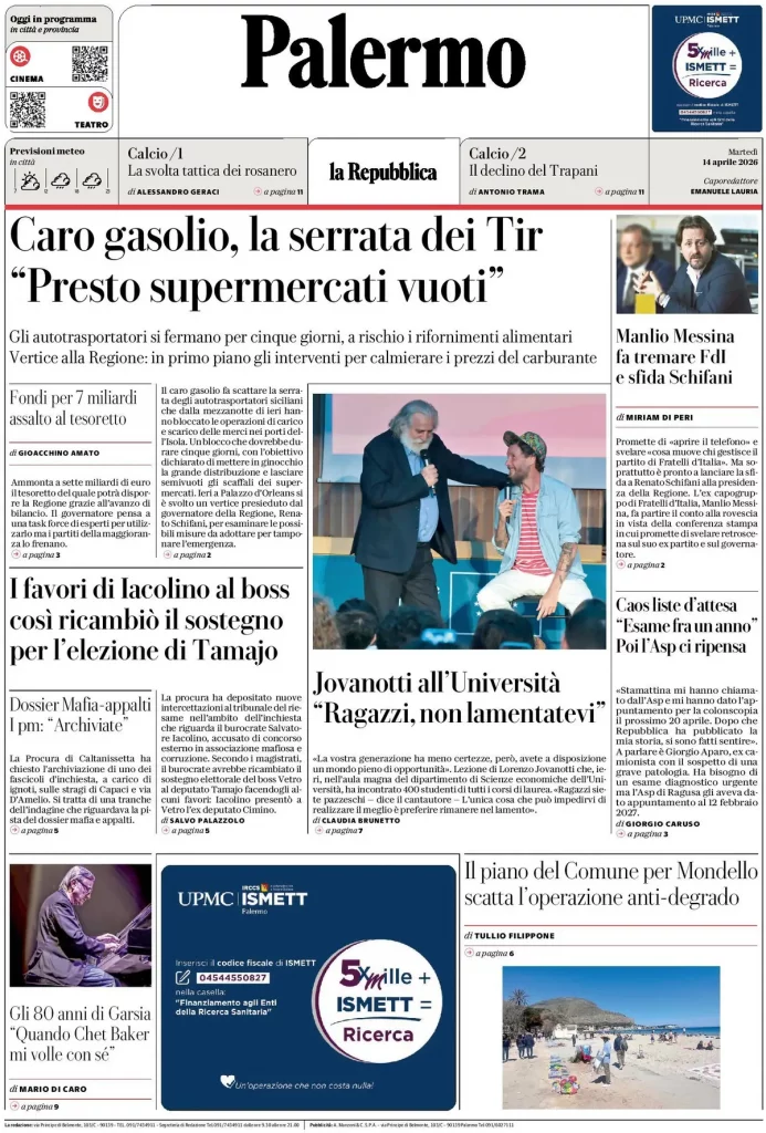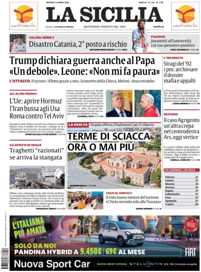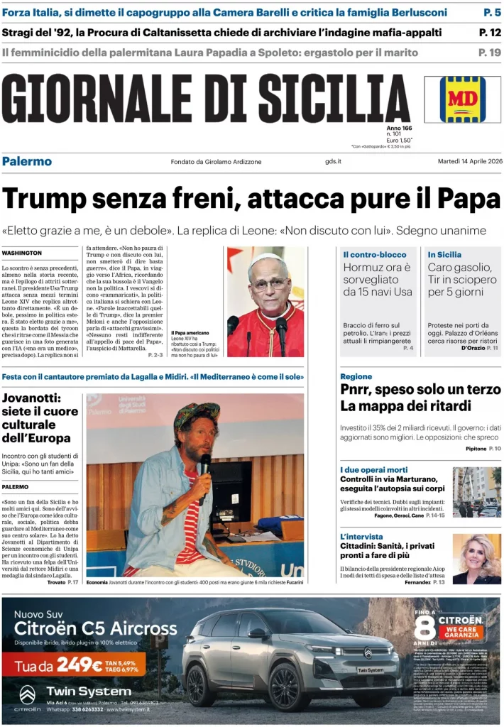 Le prime pagine delle maggiori testate giornalistiche siciliane, nazionali, economiche, sportive e straniere in Italia