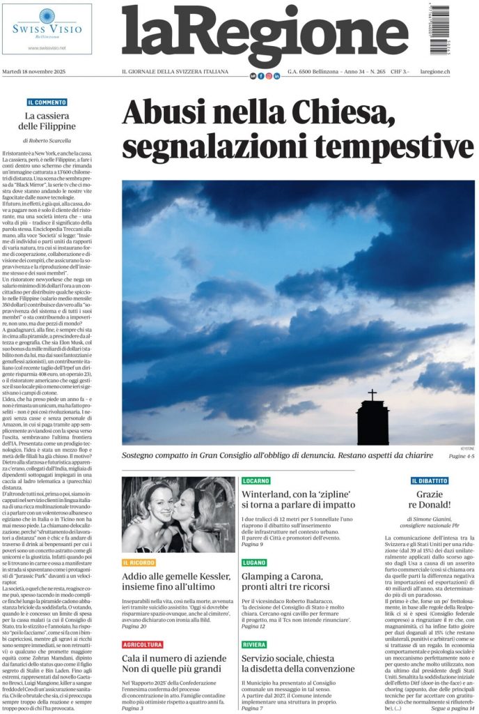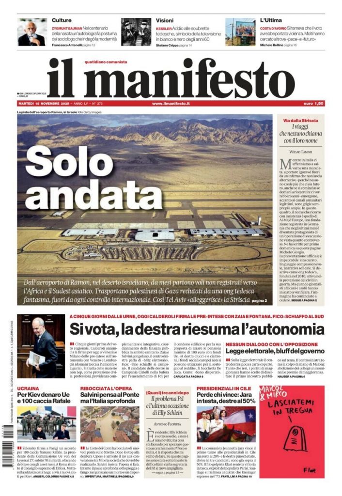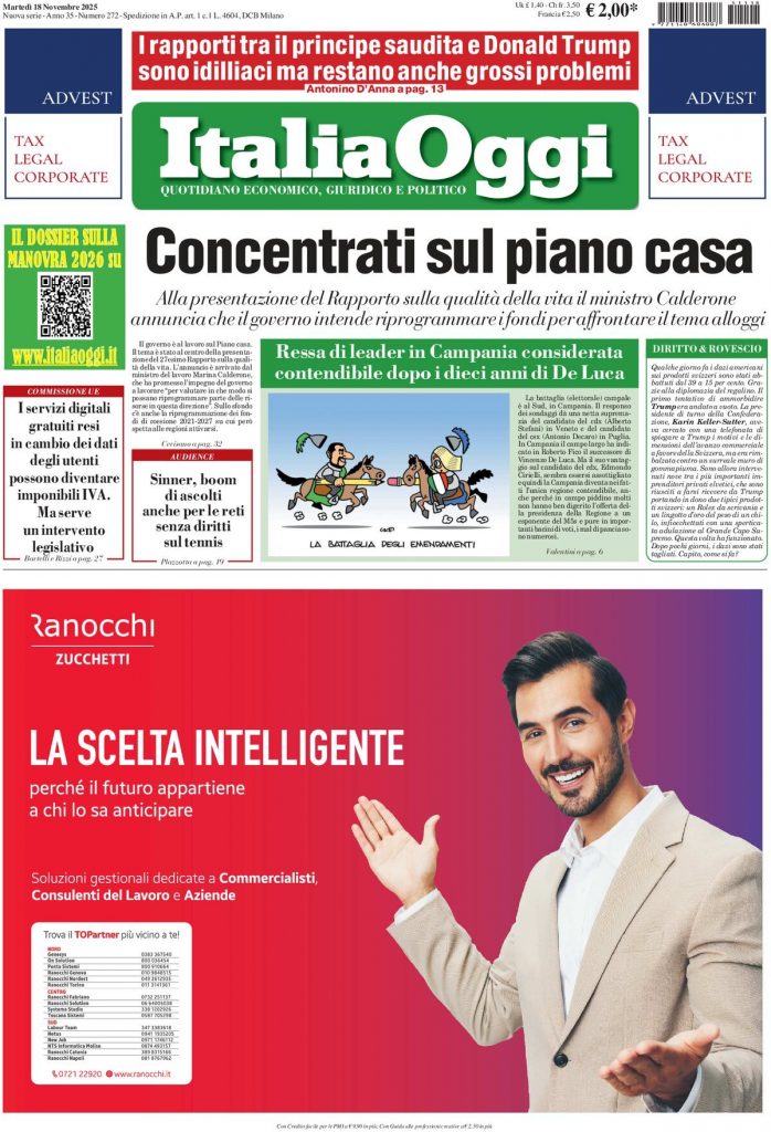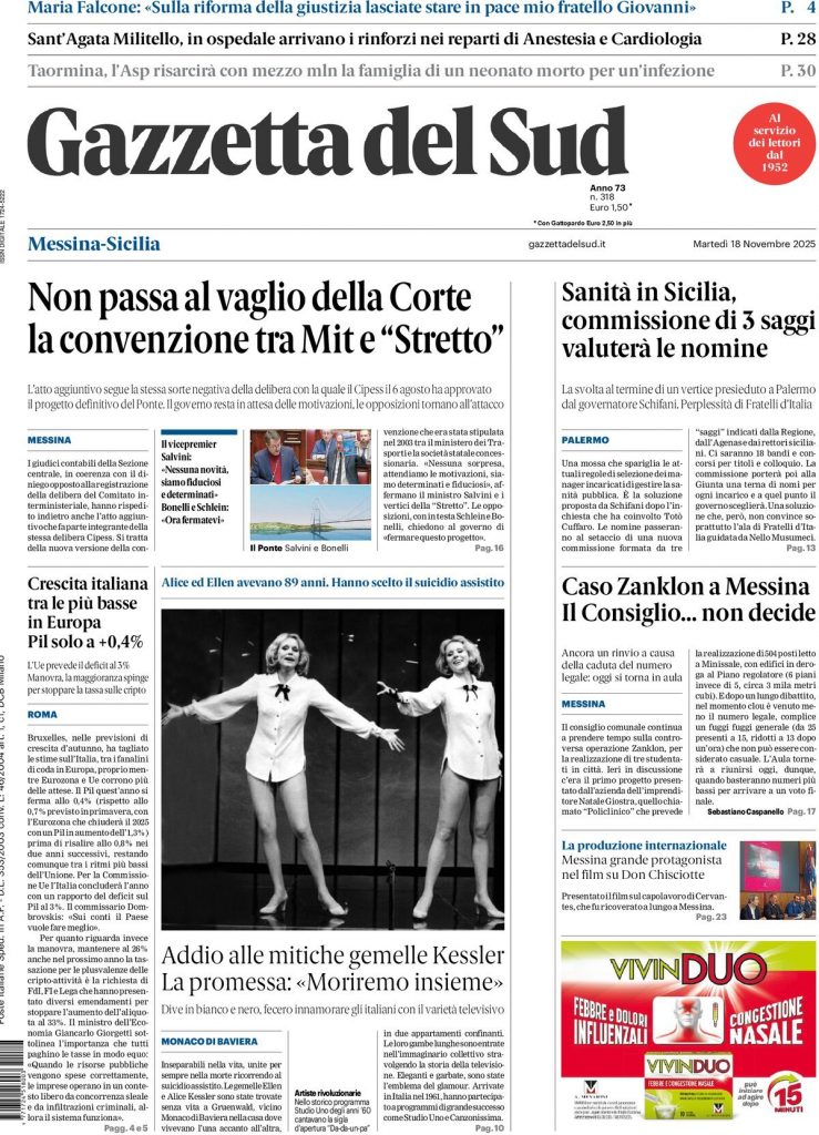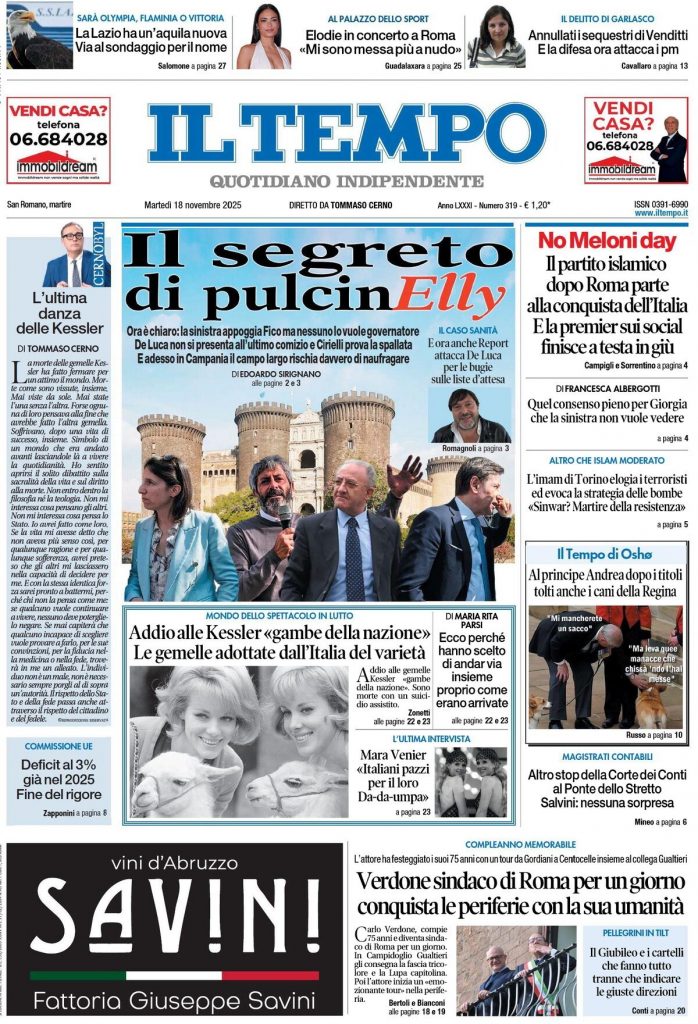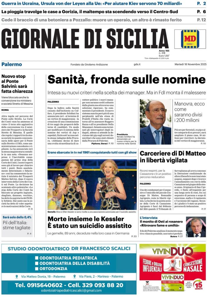 Reading: Le prime pagine delle maggiori testate giornalistiche siciliane, nazionali, economiche, sportive e straniere in Italia di Martedì 18 Novembre 2025