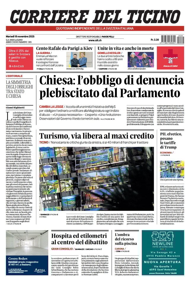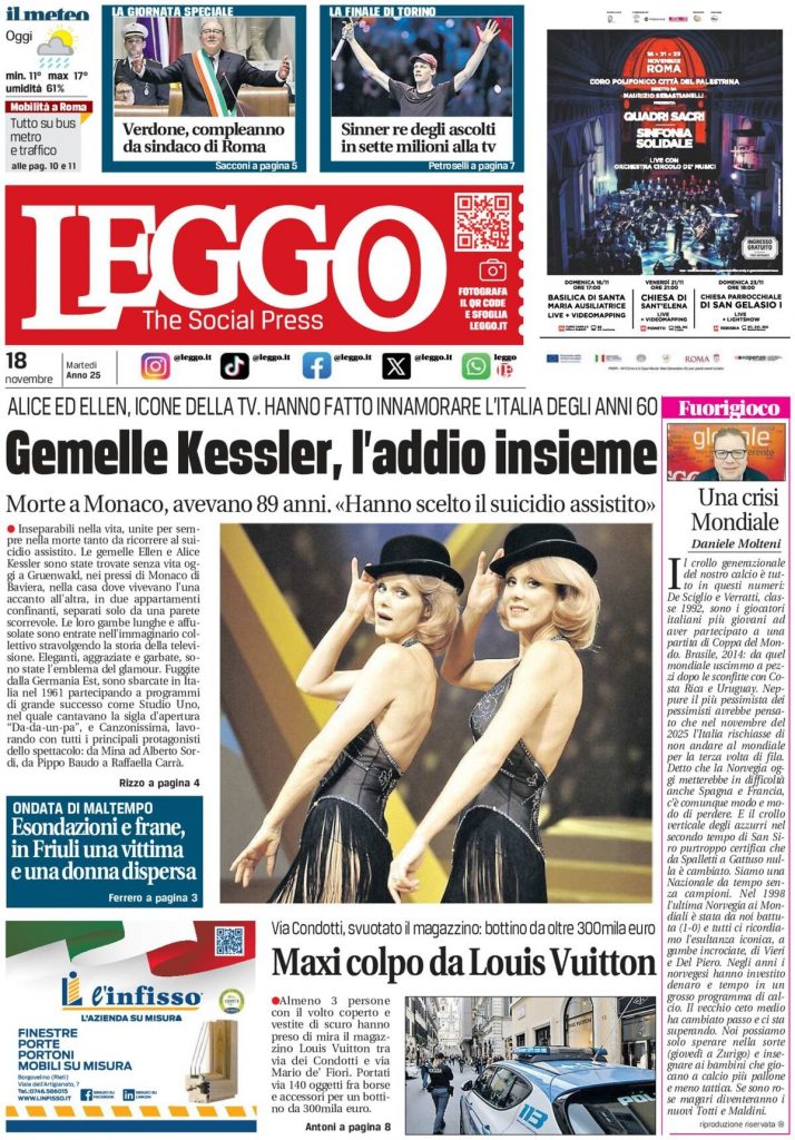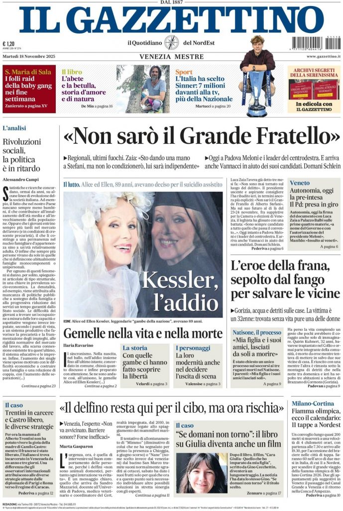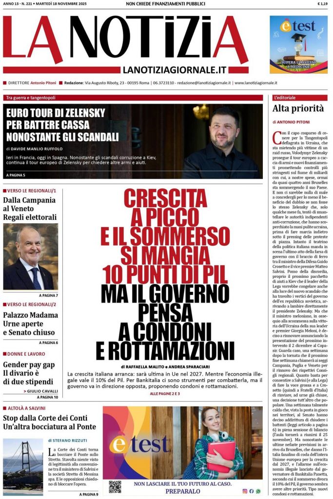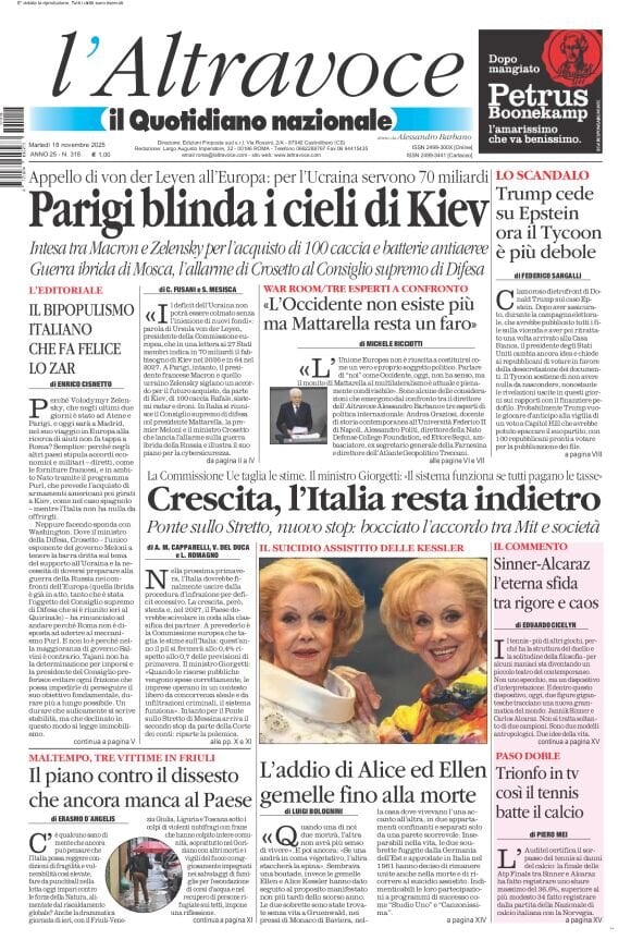 Caltanissetta 401 > News > Rassegna stampa > Le prime pagine delle maggiori testate giornalistiche siciliane, nazionali, economiche, sportive e straniere in Italia di Martedì 18 Novembre 2025