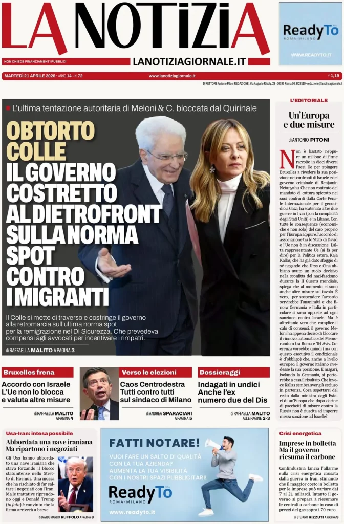Le prime pagine delle maggiori testate giornalistiche siciliane, nazionali, economiche, sportive e straniere in Italia
