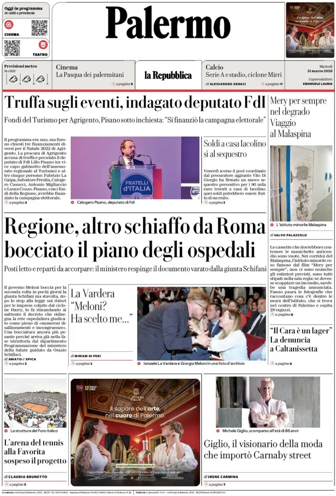 Le prime pagine delle maggiori testate giornalistiche siciliane, nazionali, economiche, sportive e straniere in Italia