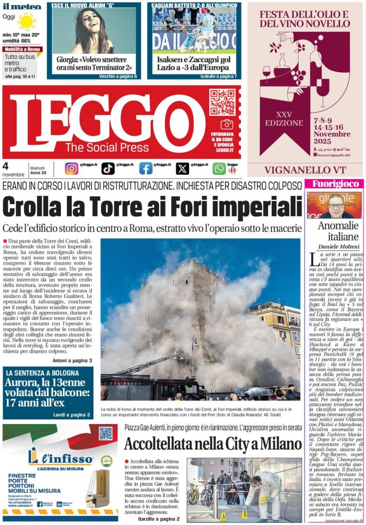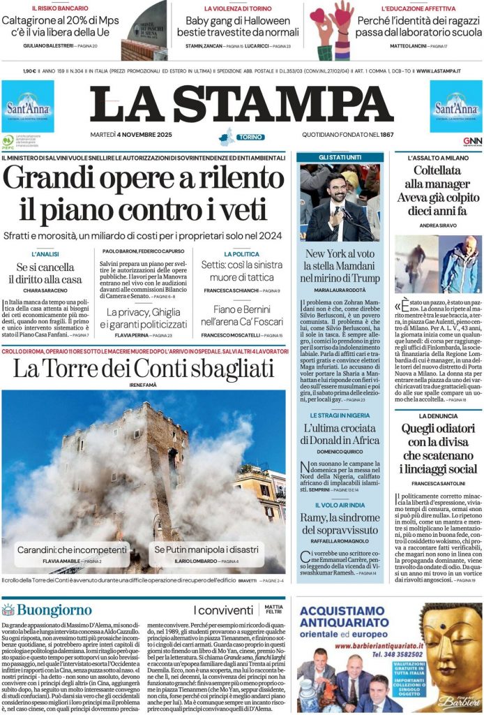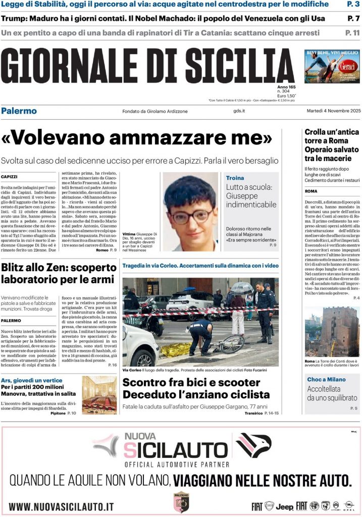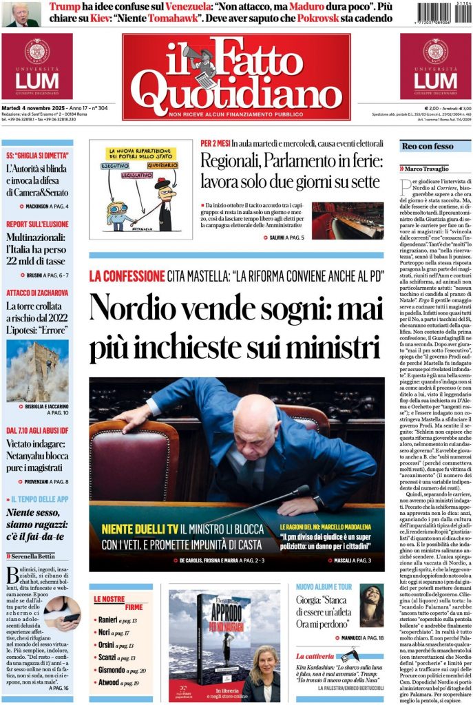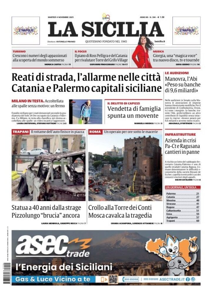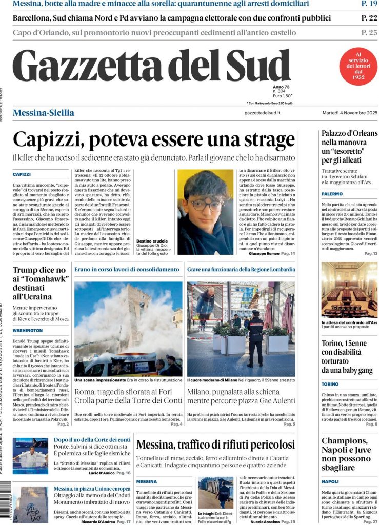 Reading: Le prime pagine delle maggiori testate giornalistiche siciliane, nazionali, economiche, sportive e straniere in Italia di Martedì 4 Novembre 2025
