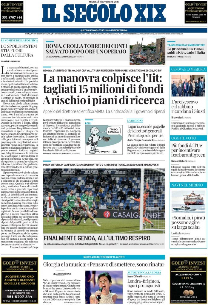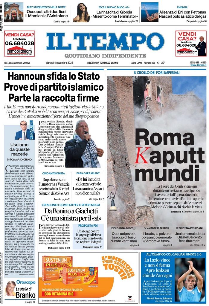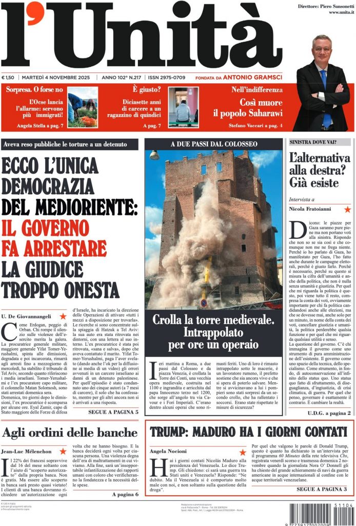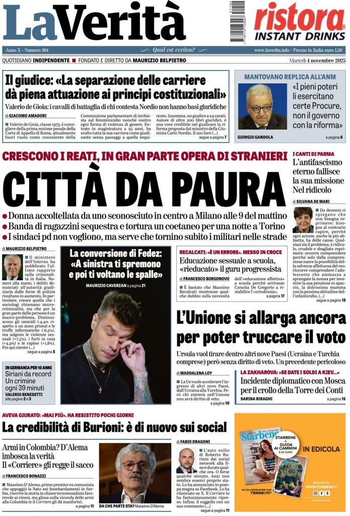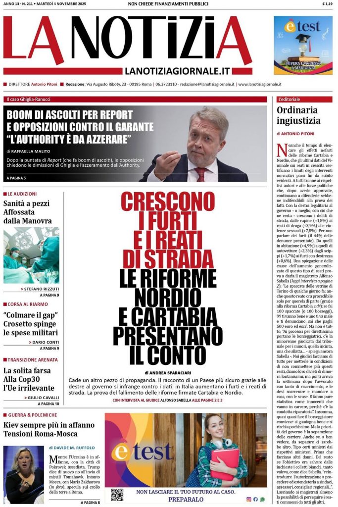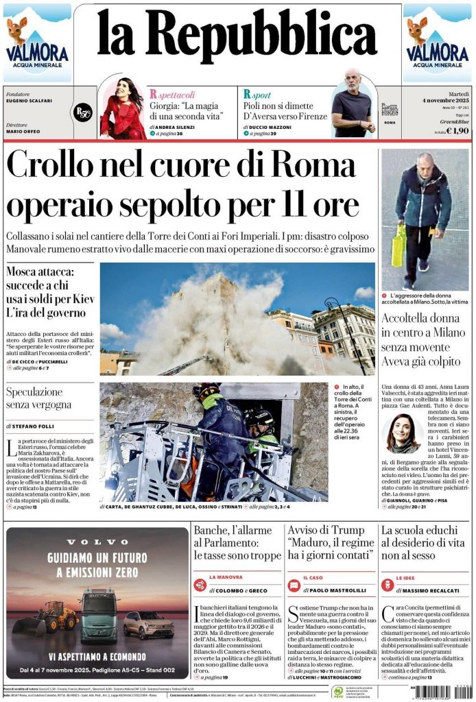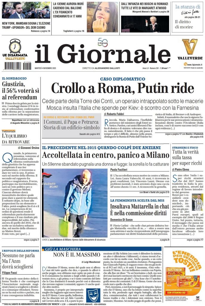 Reading: Le prime pagine delle maggiori testate giornalistiche siciliane, nazionali, economiche, sportive e straniere in Italia di Martedì 4 Novembre 2025