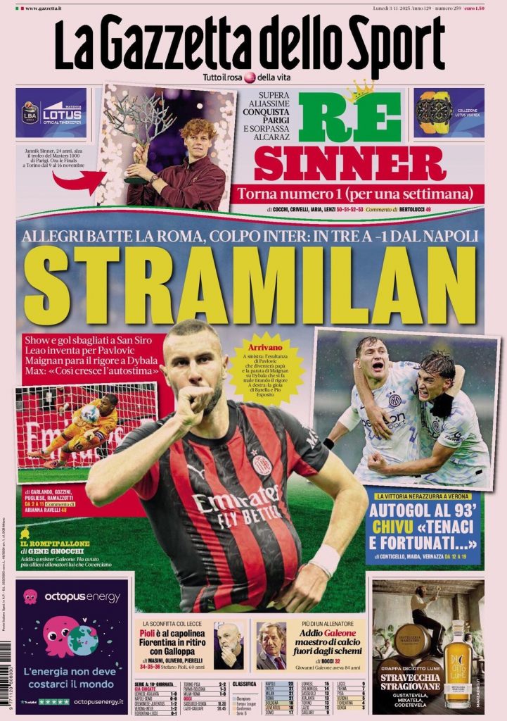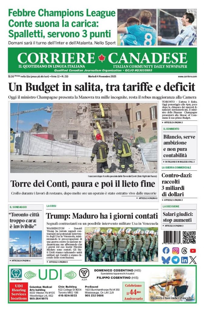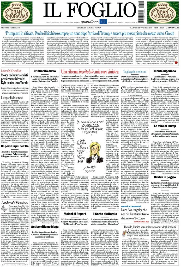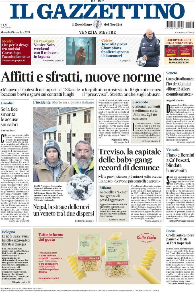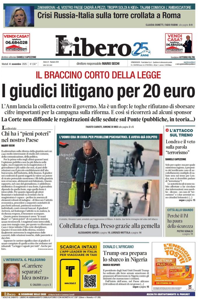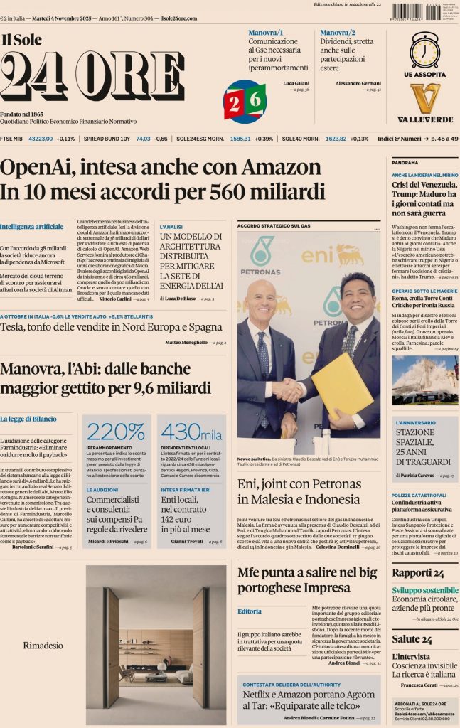 Reading: Le prime pagine delle maggiori testate giornalistiche siciliane, nazionali, economiche, sportive e straniere in Italia di Martedì 4 Novembre 2025