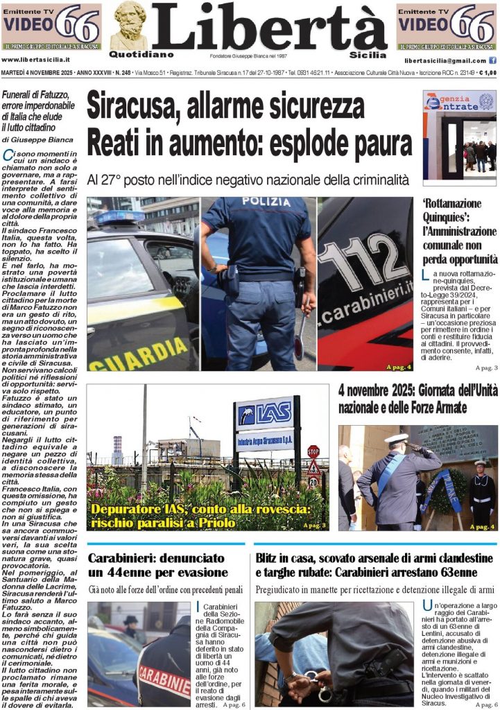 Caltanissetta 401 > News > Rassegna stampa > Le prime pagine delle maggiori testate giornalistiche siciliane, nazionali, economiche, sportive e straniere in Italia di Martedì 4 Novembre 2025