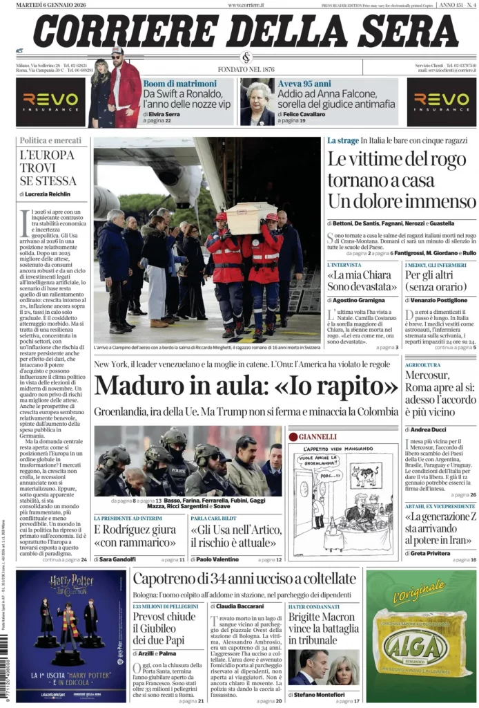 Le prime pagine delle maggiori testate giornalistiche siciliane, nazionali, economiche, sportive e straniere in Italia