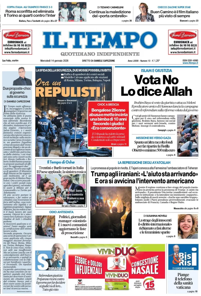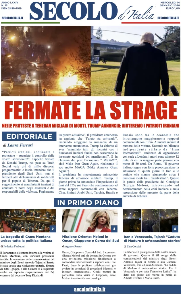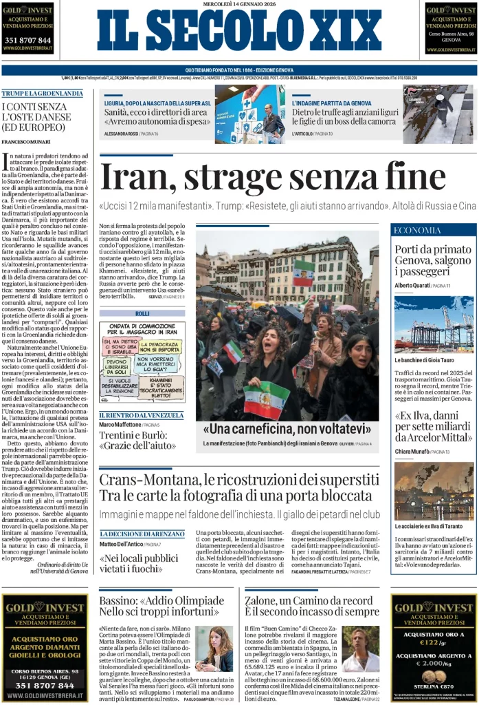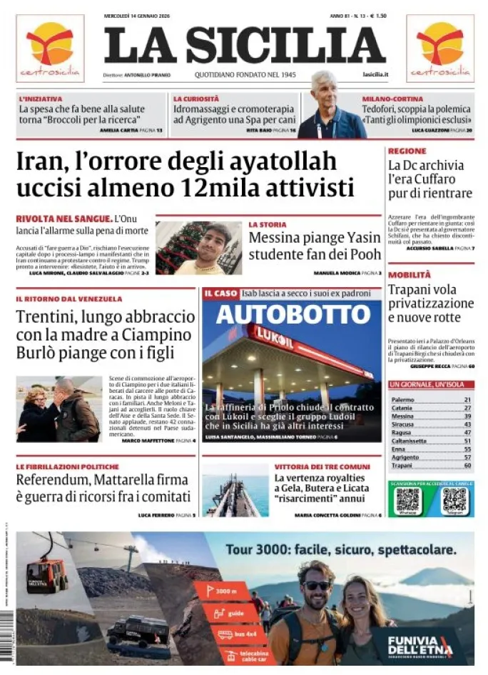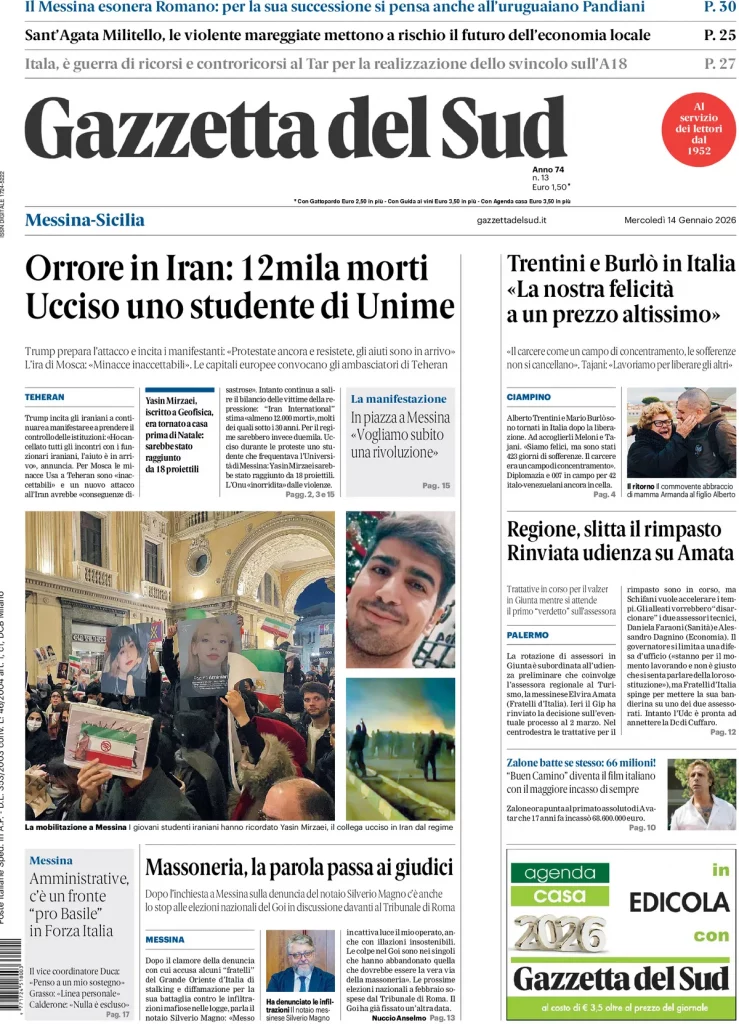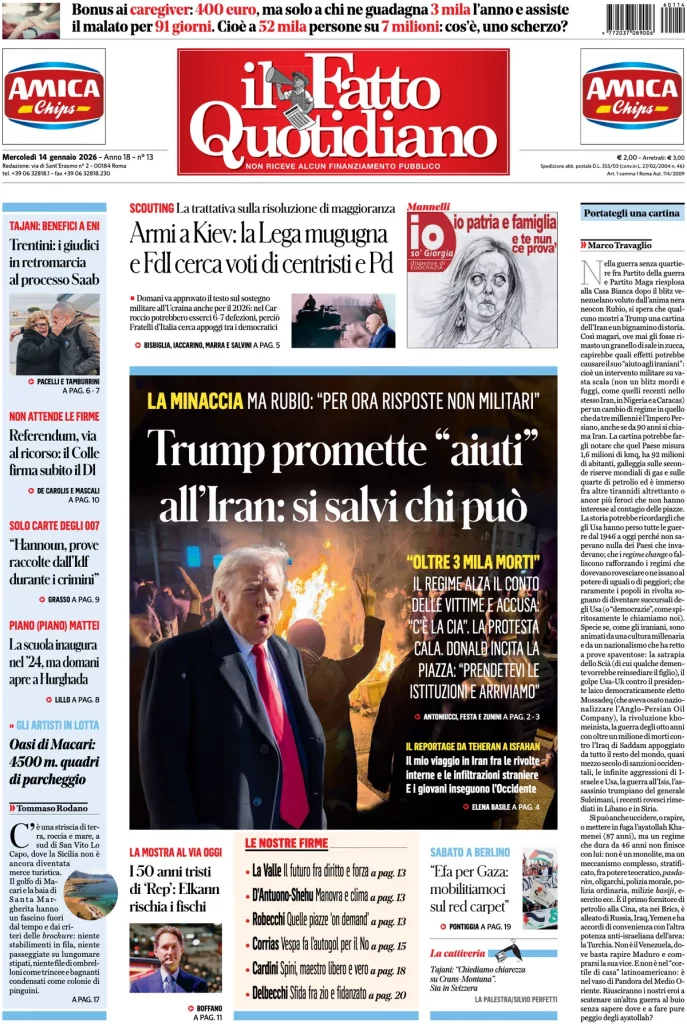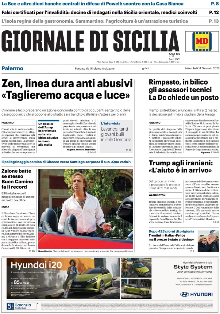 Caltanissetta 401 > News > Rassegna stampa > Le prime pagine delle maggiori testate giornalistiche siciliane, nazionali, economiche, sportive e straniere in Italia di Mercoledì 14 Gennaio 2026