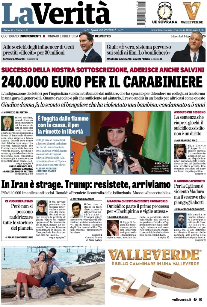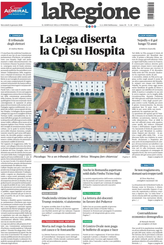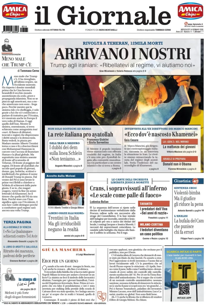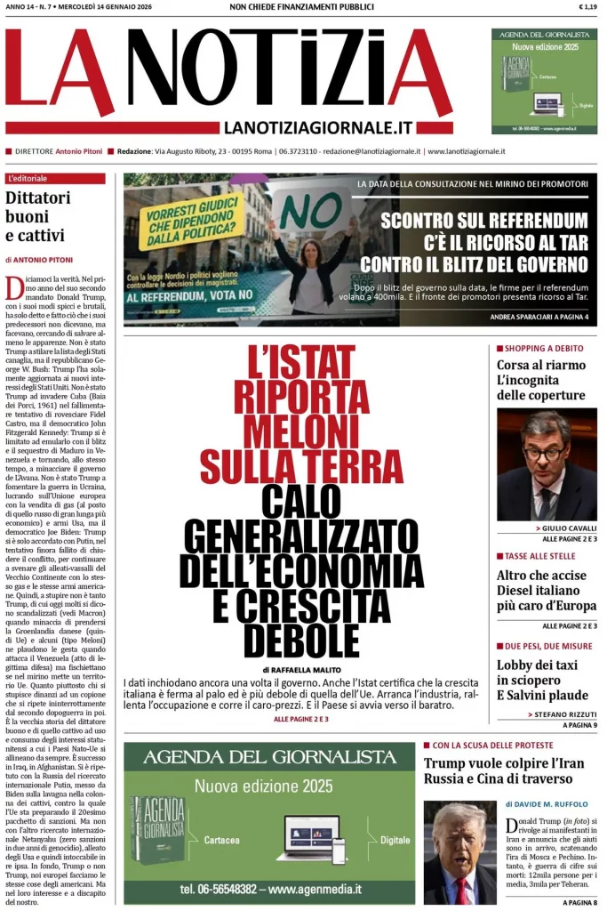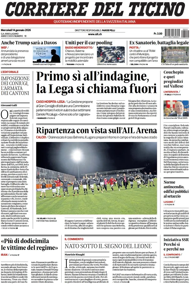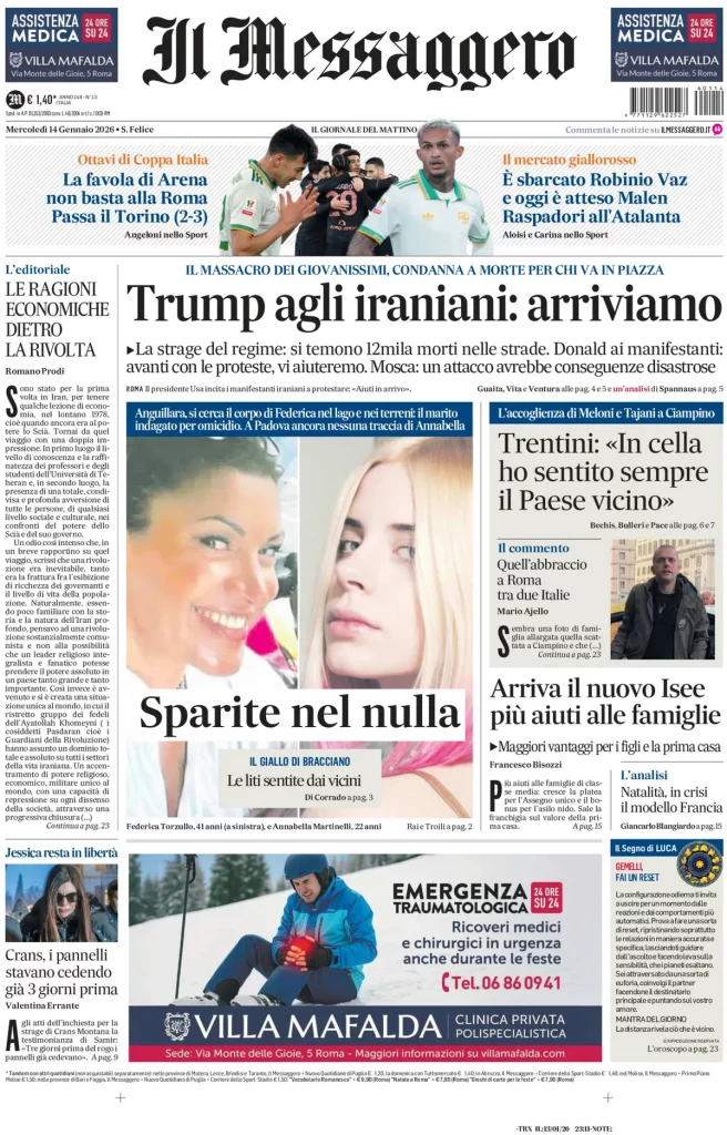 Caltanissetta 401 > News > Rassegna stampa > Le prime pagine delle maggiori testate giornalistiche siciliane, nazionali, economiche, sportive e straniere in Italia di Mercoledì 14 Gennaio 2026