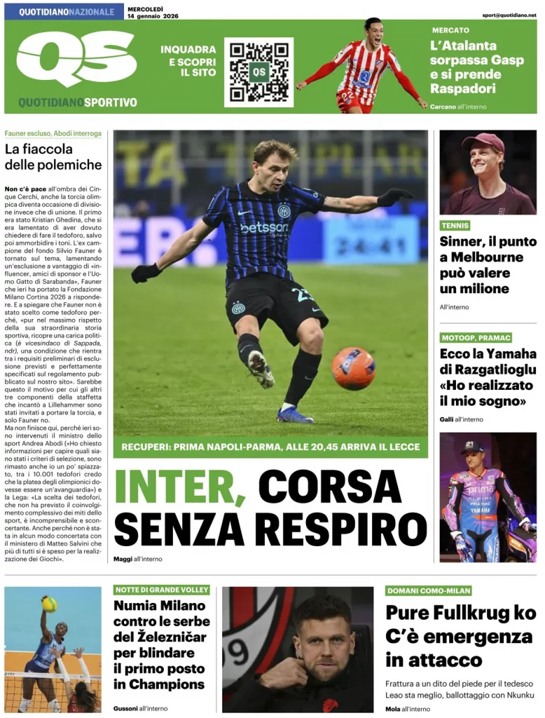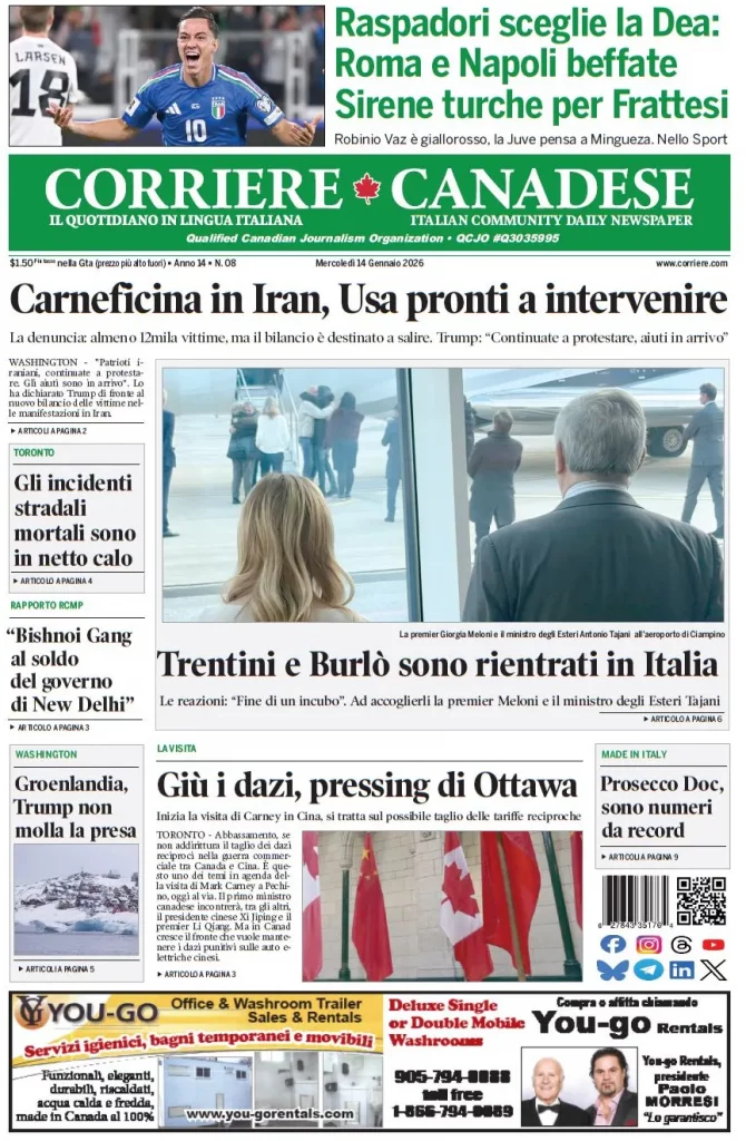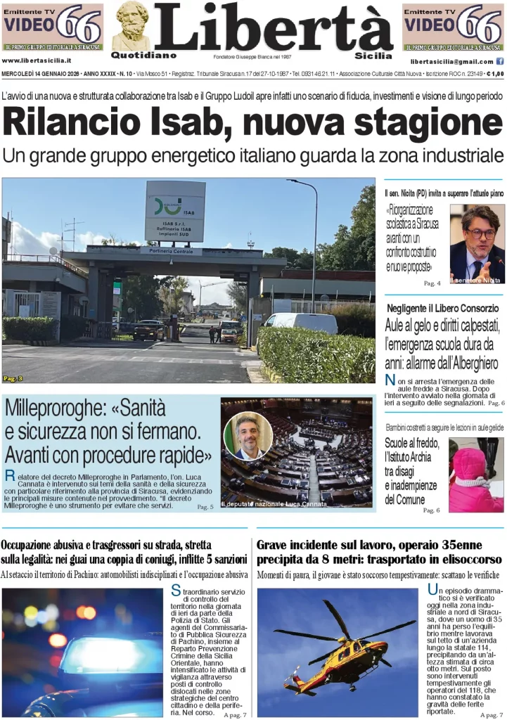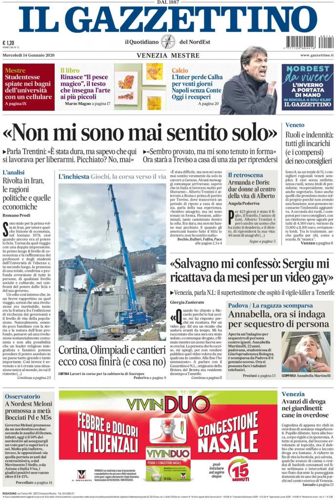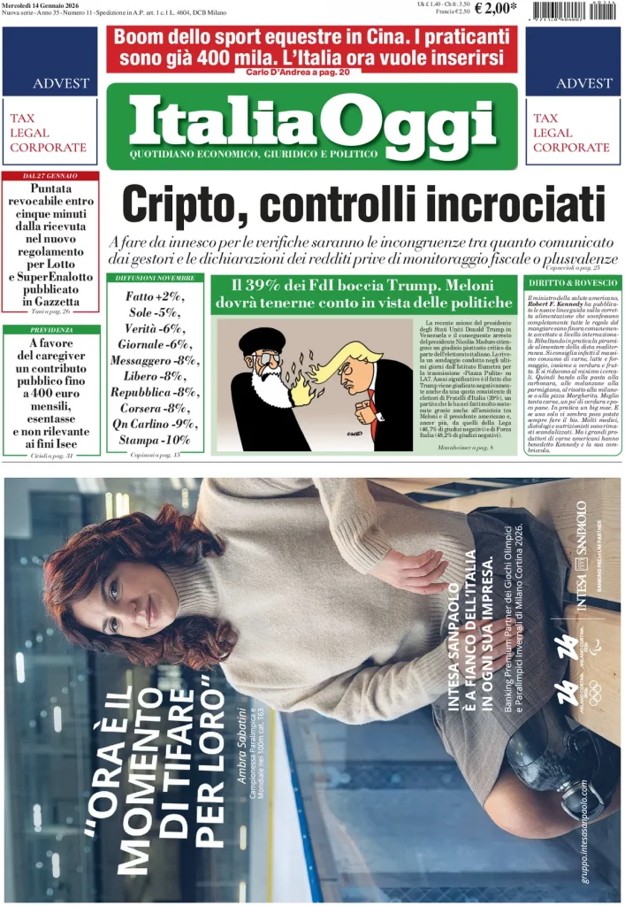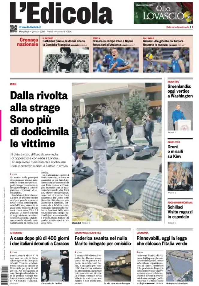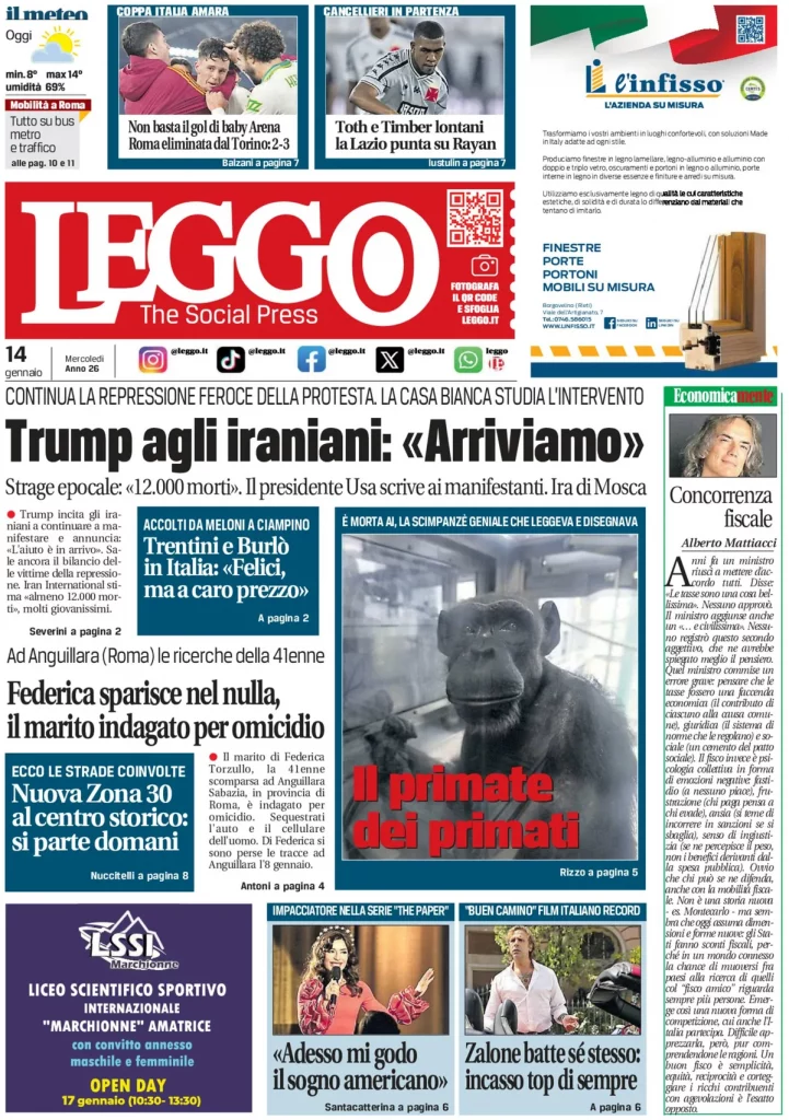 Caltanissetta 401 > News > Rassegna stampa > Le prime pagine delle maggiori testate giornalistiche siciliane, nazionali, economiche, sportive e straniere in Italia di Mercoledì 14 Gennaio 2026