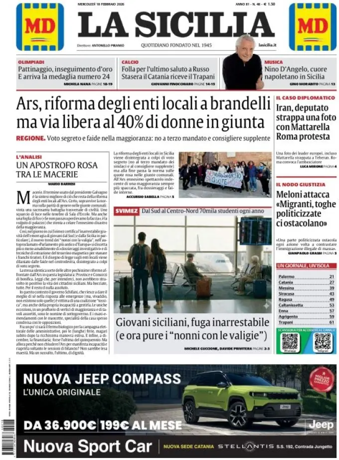 Le prime pagine delle maggiori testate giornalistiche siciliane, nazionali, economiche, sportive e straniere in Italia