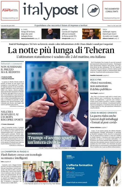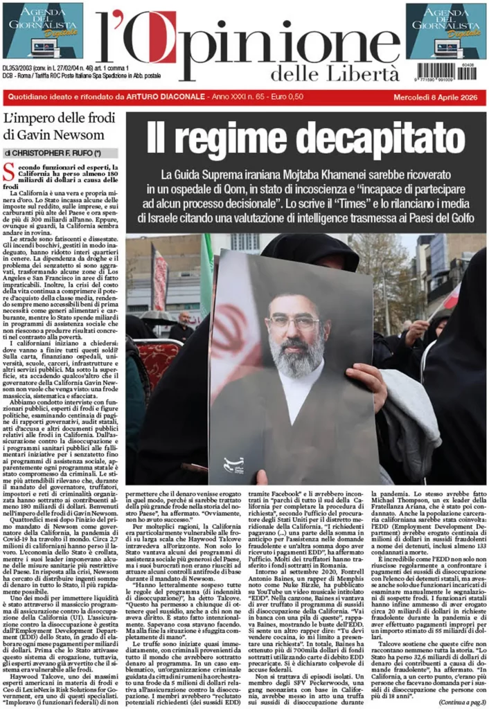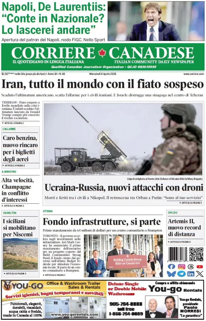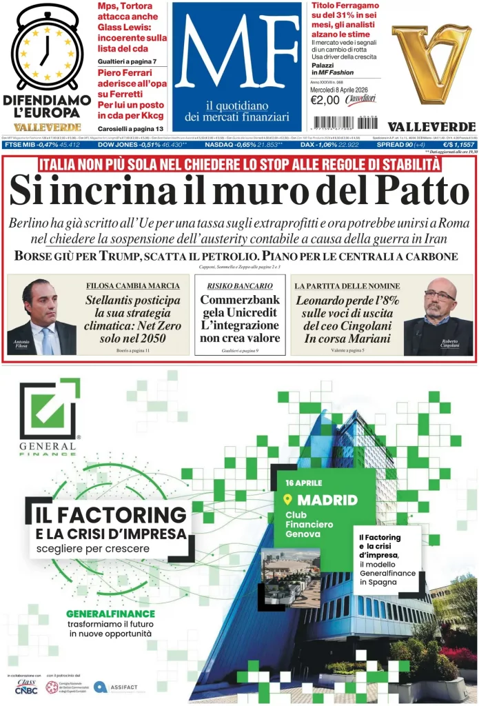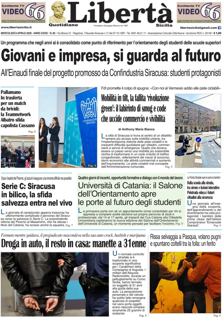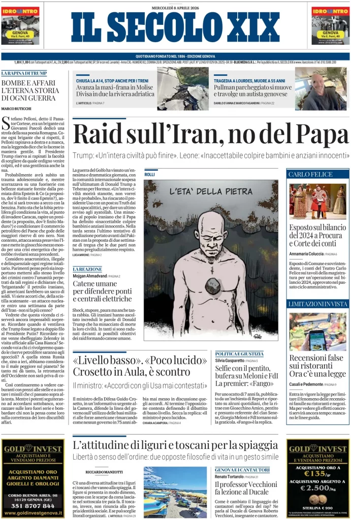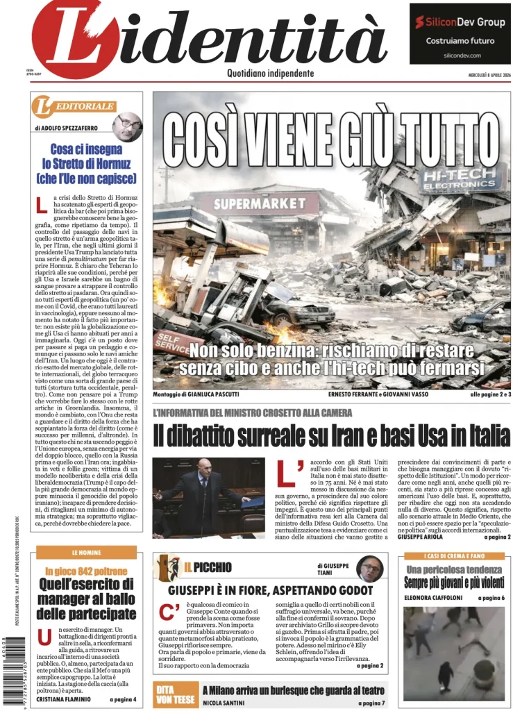 Caltanissetta 401 > News > Rassegna stampa > Le prime pagine delle maggiori testate giornalistiche siciliane, nazionali, economiche, sportive e straniere in Italia di Mercoledì 8 Aprile 2026