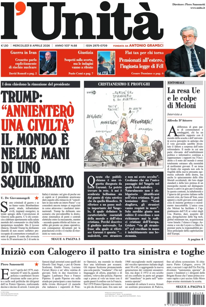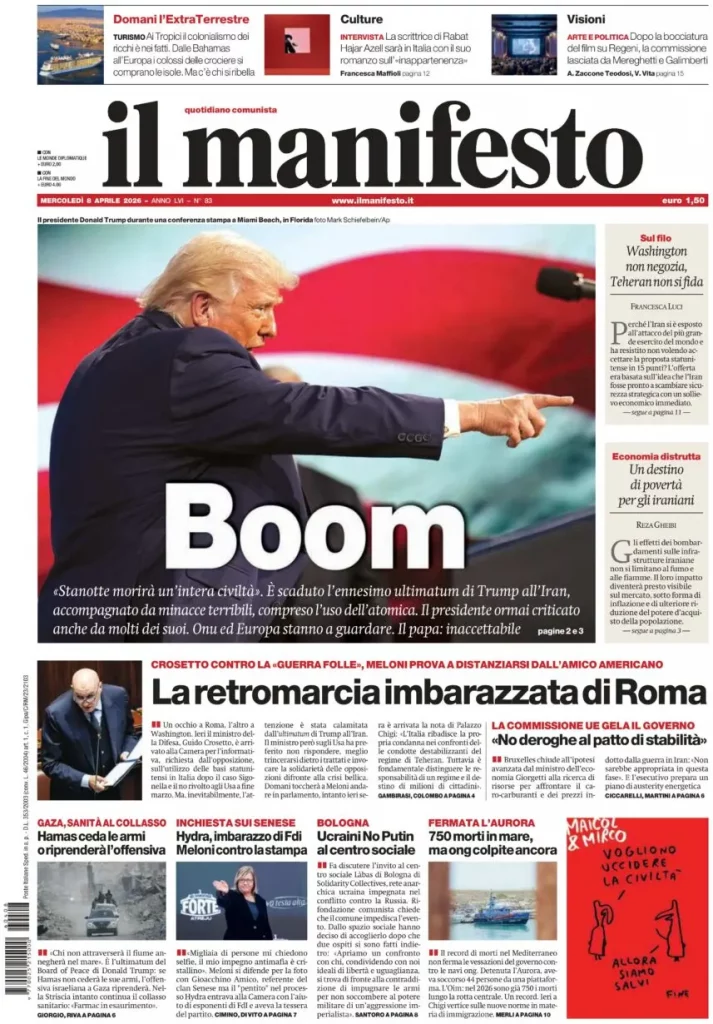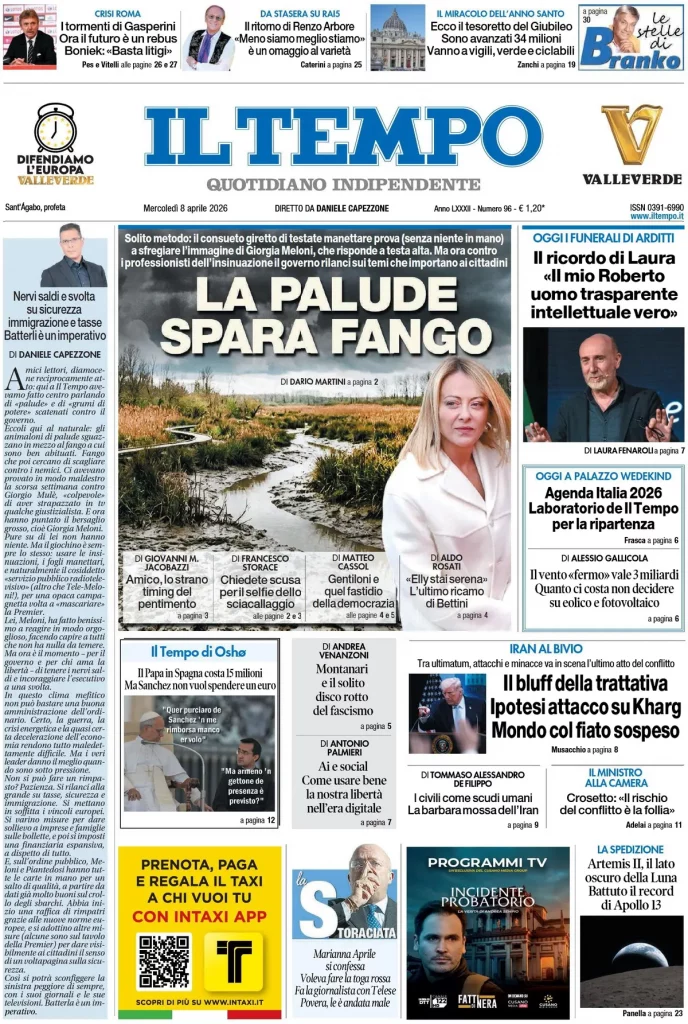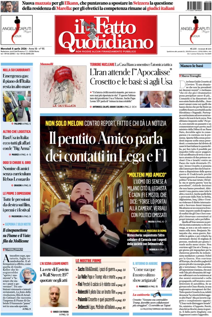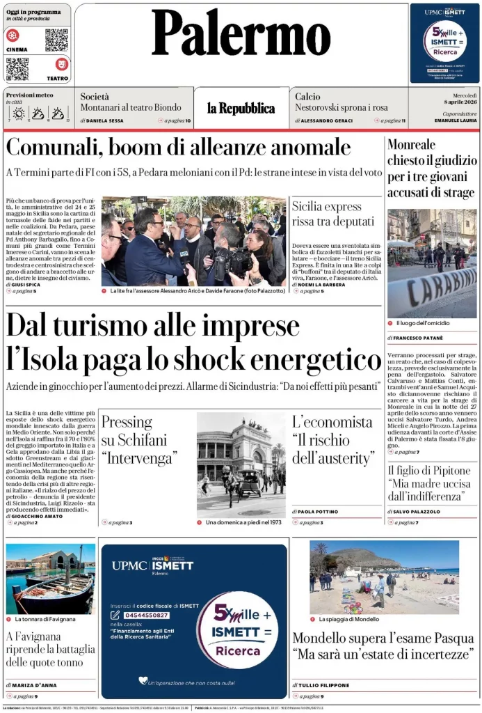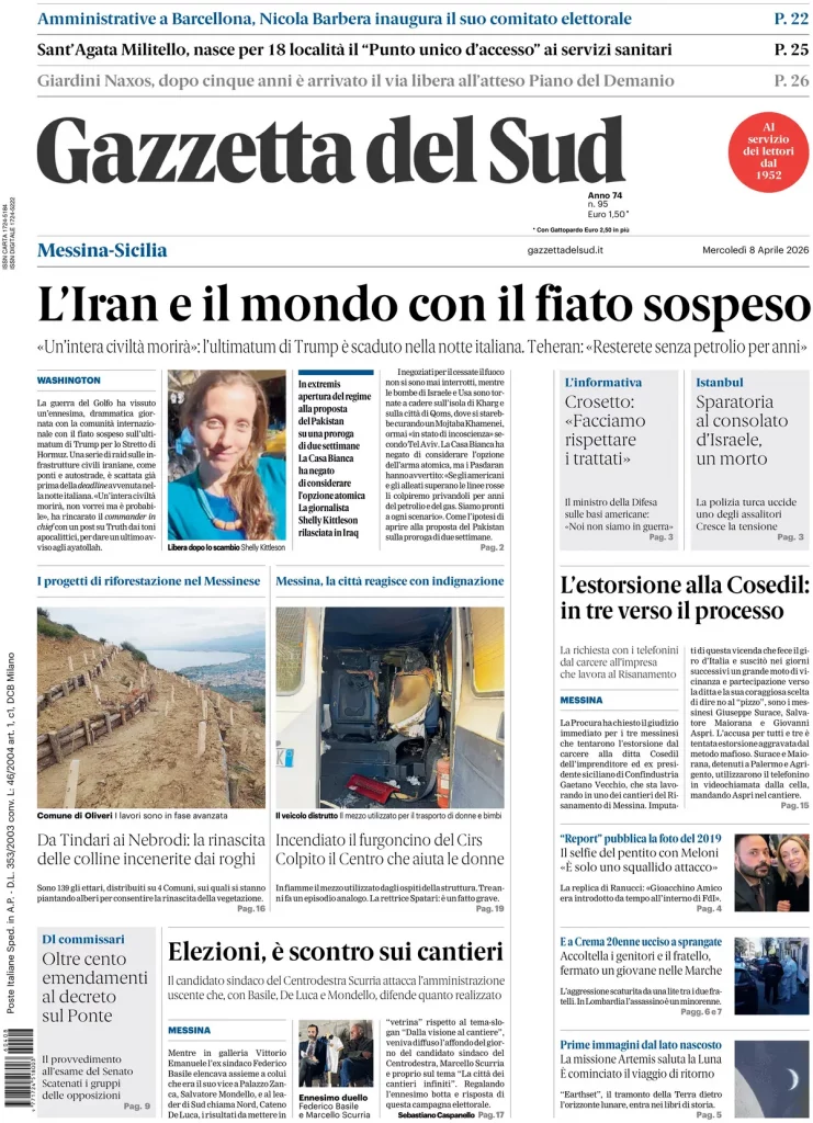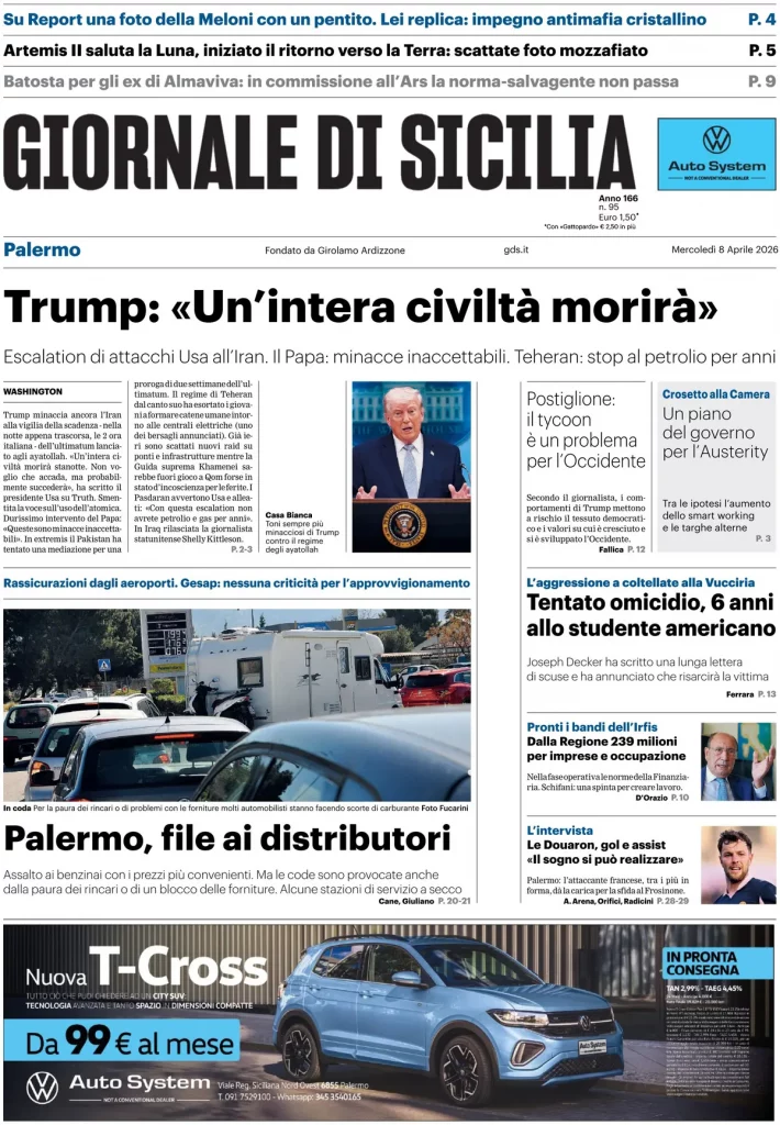 Reading: Le prime pagine delle maggiori testate giornalistiche siciliane, nazionali, economiche, sportive e straniere in Italia di Mercoledì 8 Aprile 2026