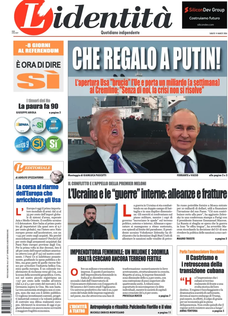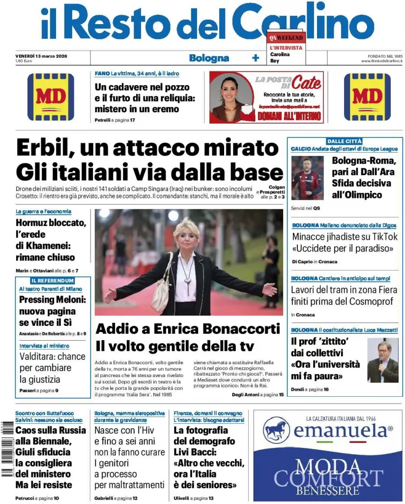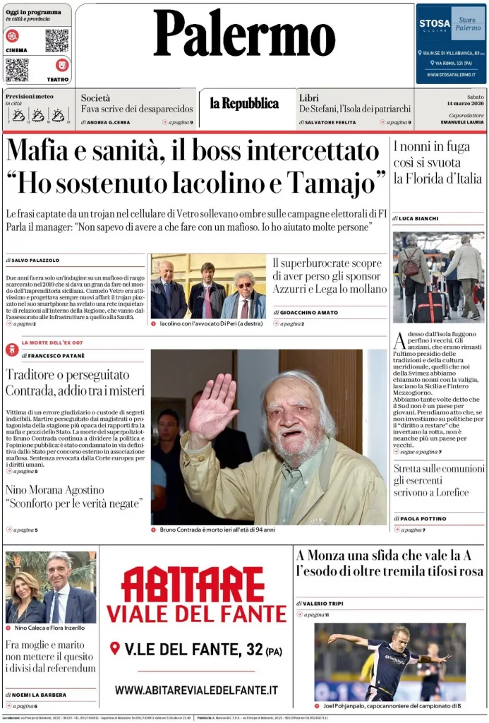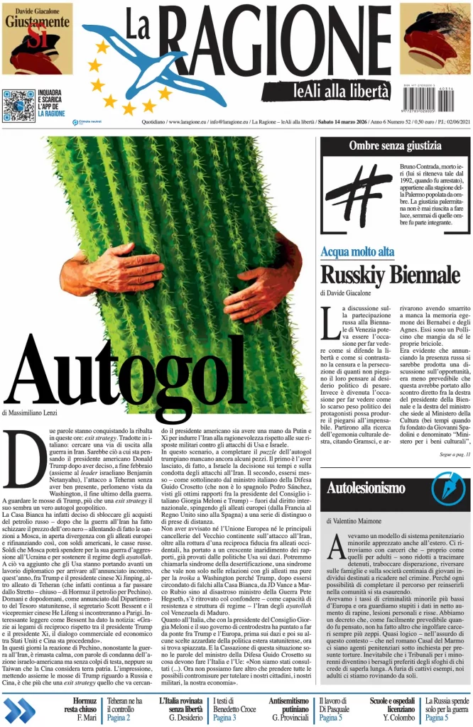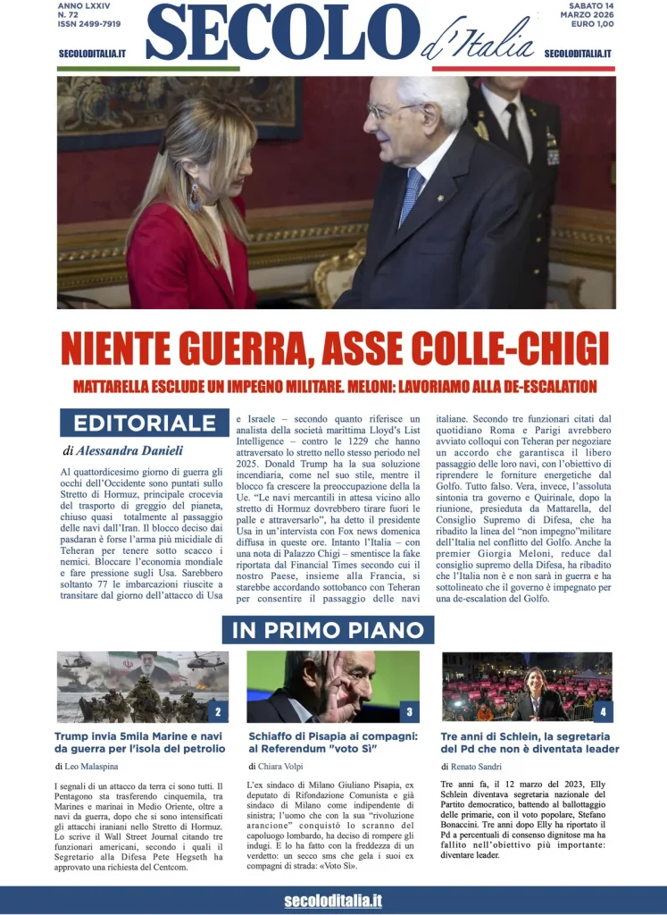 Caltanissetta 401 > News > Rassegna stampa > Le prime pagine delle maggiori testate giornalistiche siciliane, nazionali, economiche, sportive e straniere in Italia di Sabato 14 Marzo 2026