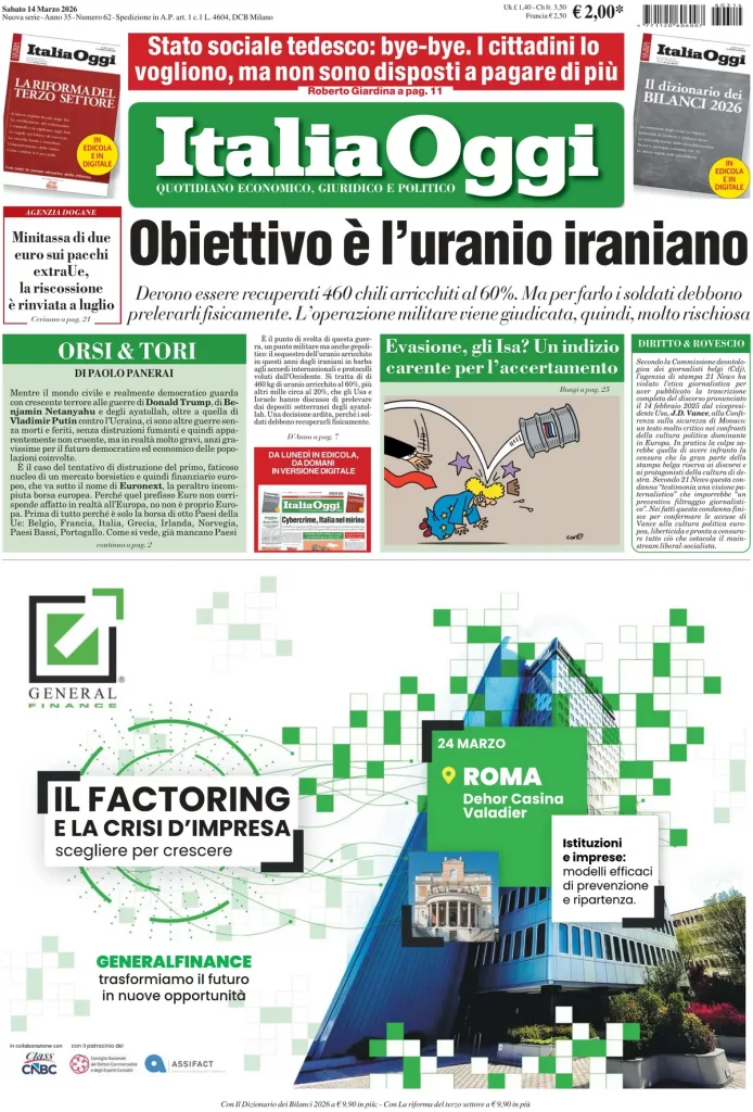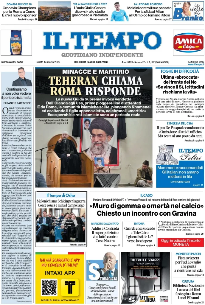 Reading: Le prime pagine delle maggiori testate giornalistiche siciliane, nazionali, economiche, sportive e straniere in Italia di Sabato 14 Marzo 2026