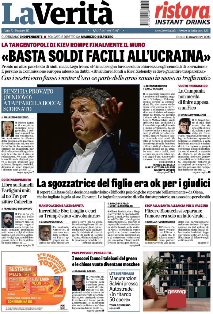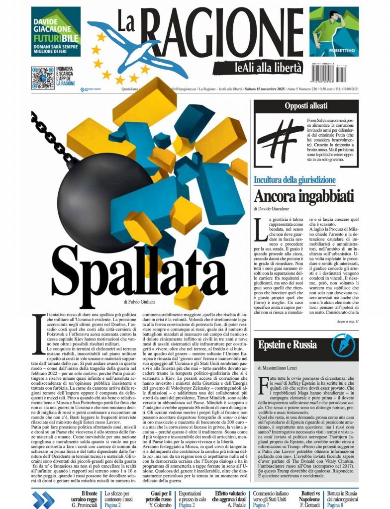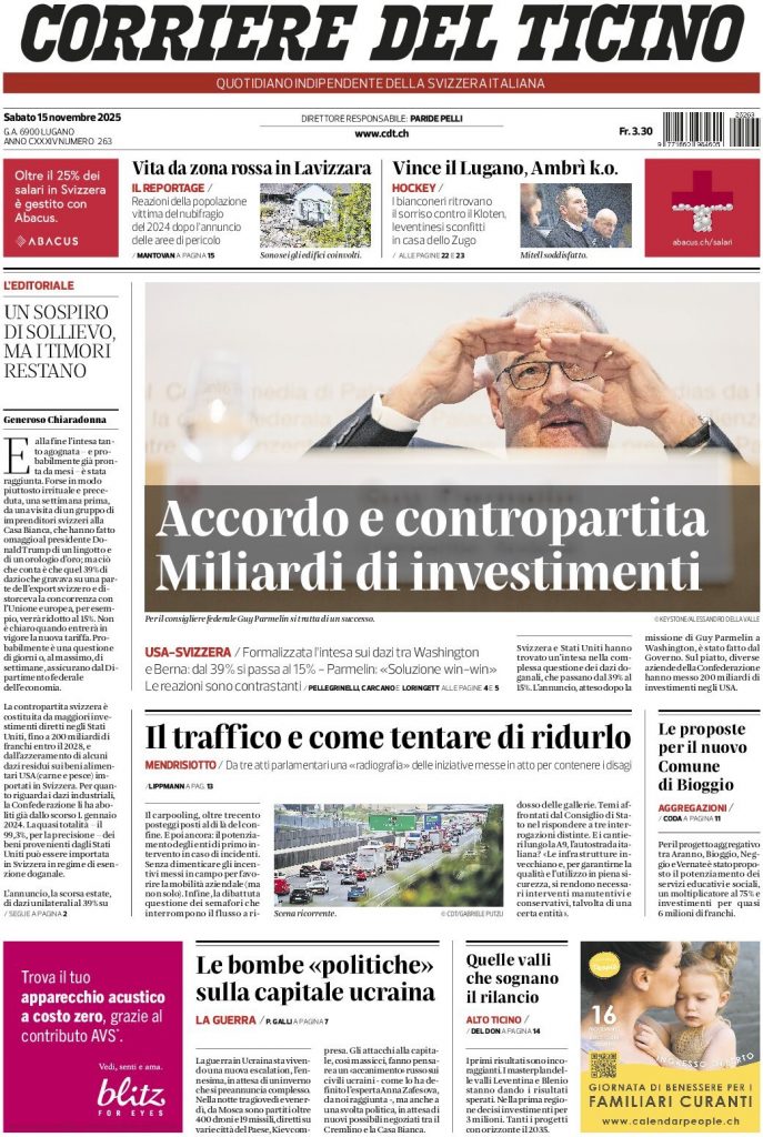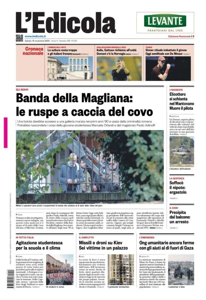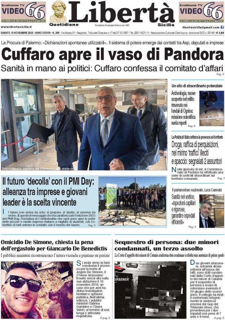 Caltanissetta 401 > News > Rassegna stampa > Le prime pagine delle maggiori testate giornalistiche siciliane, nazionali, economiche, sportive e straniere in Italia di Sabato 15 Novembre 2025
