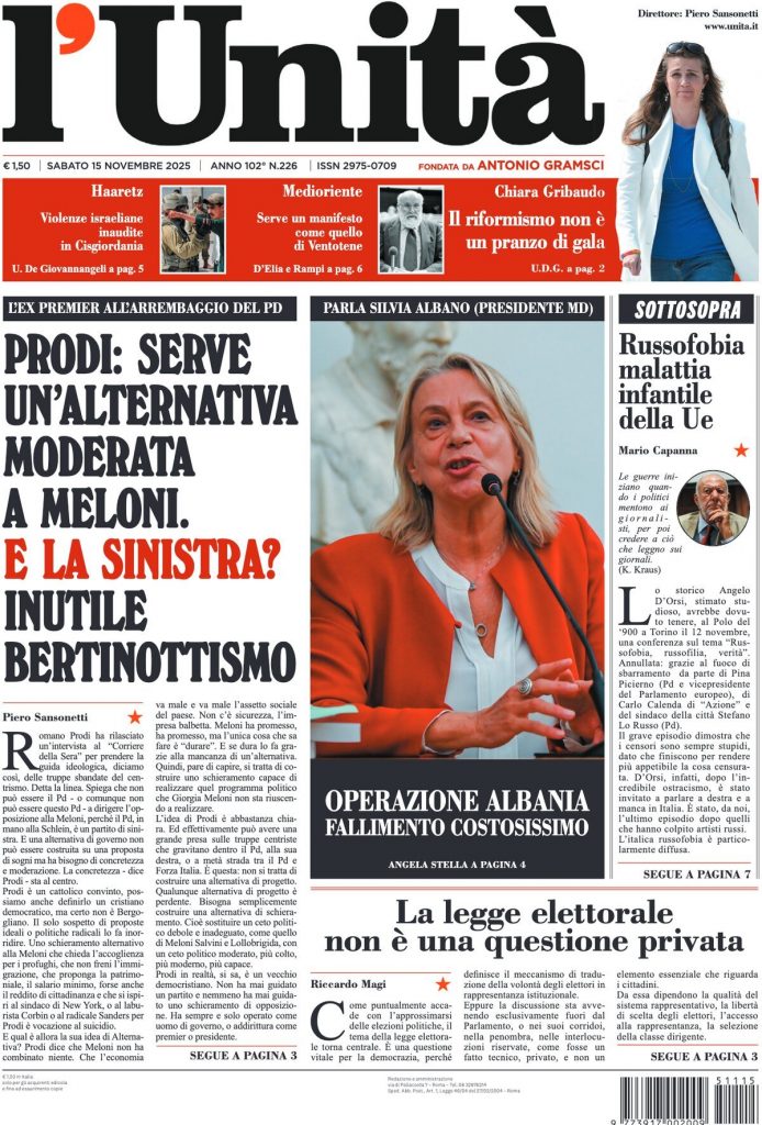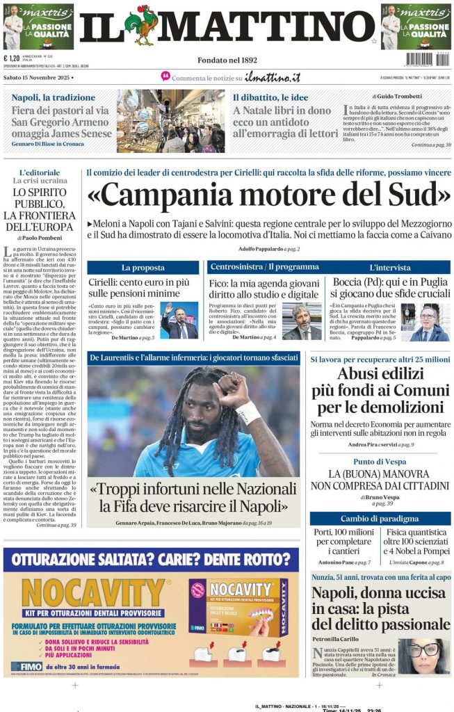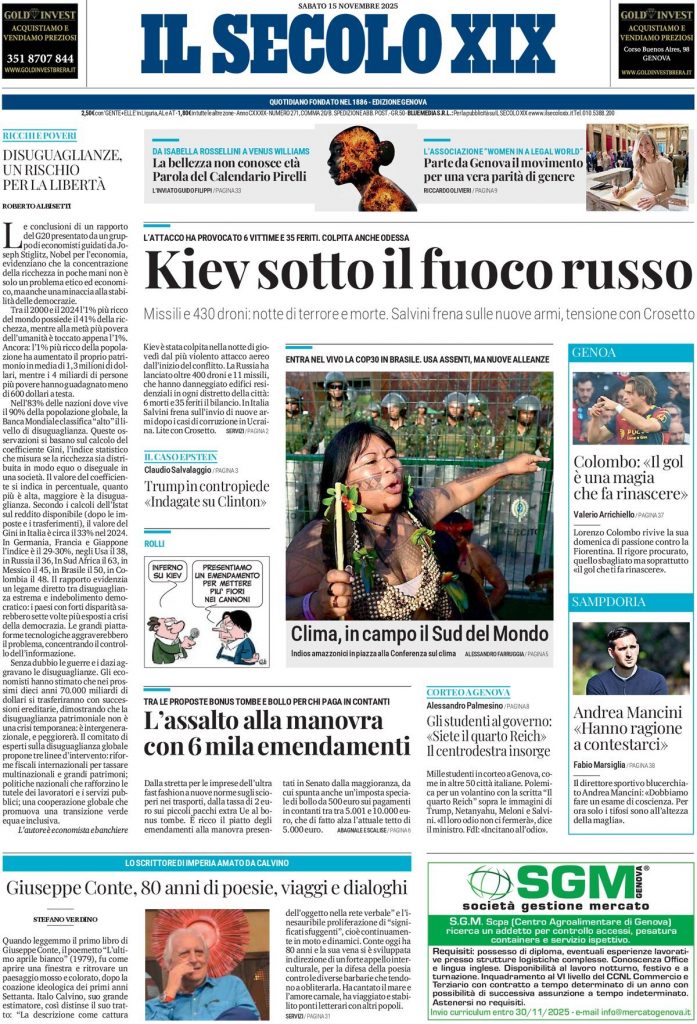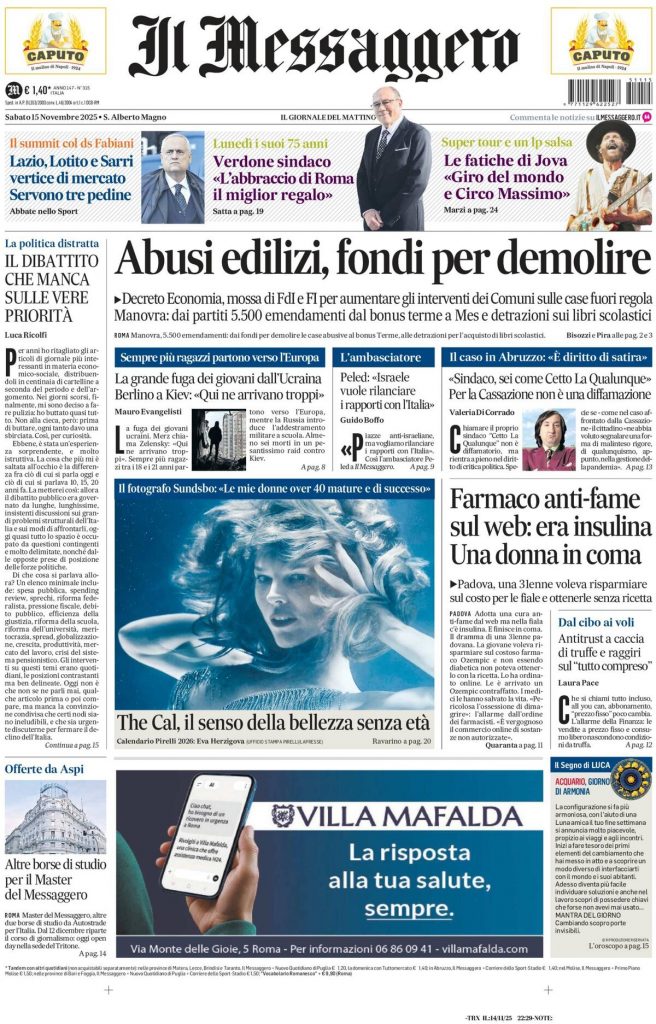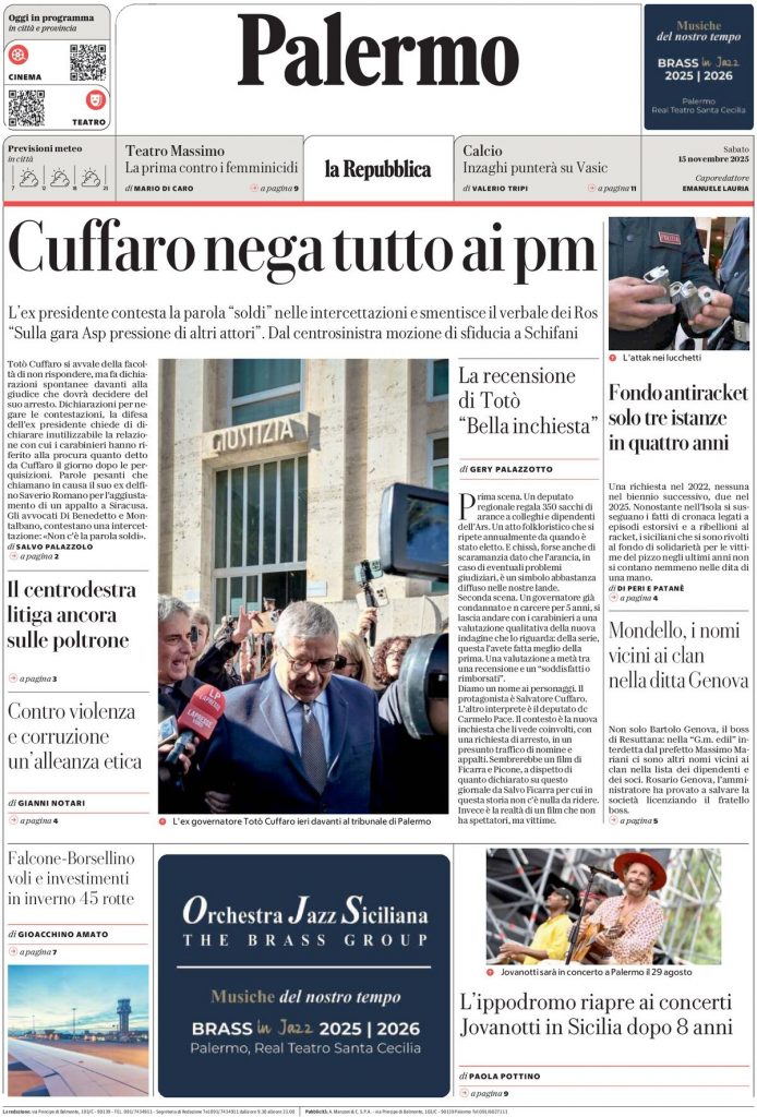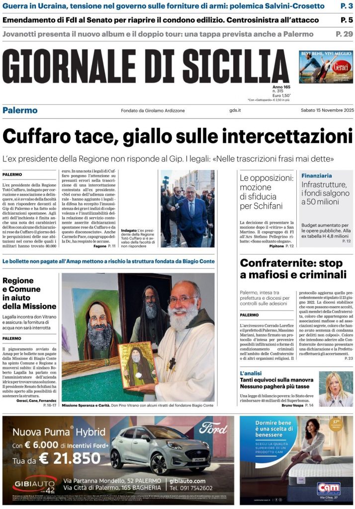 Reading: Le prime pagine delle maggiori testate giornalistiche siciliane, nazionali, economiche, sportive e straniere in Italia di Sabato 15 Novembre 2025