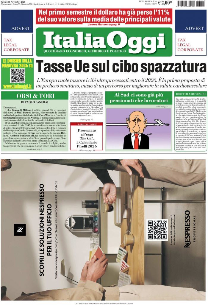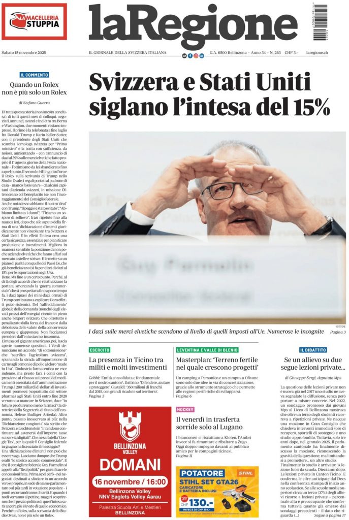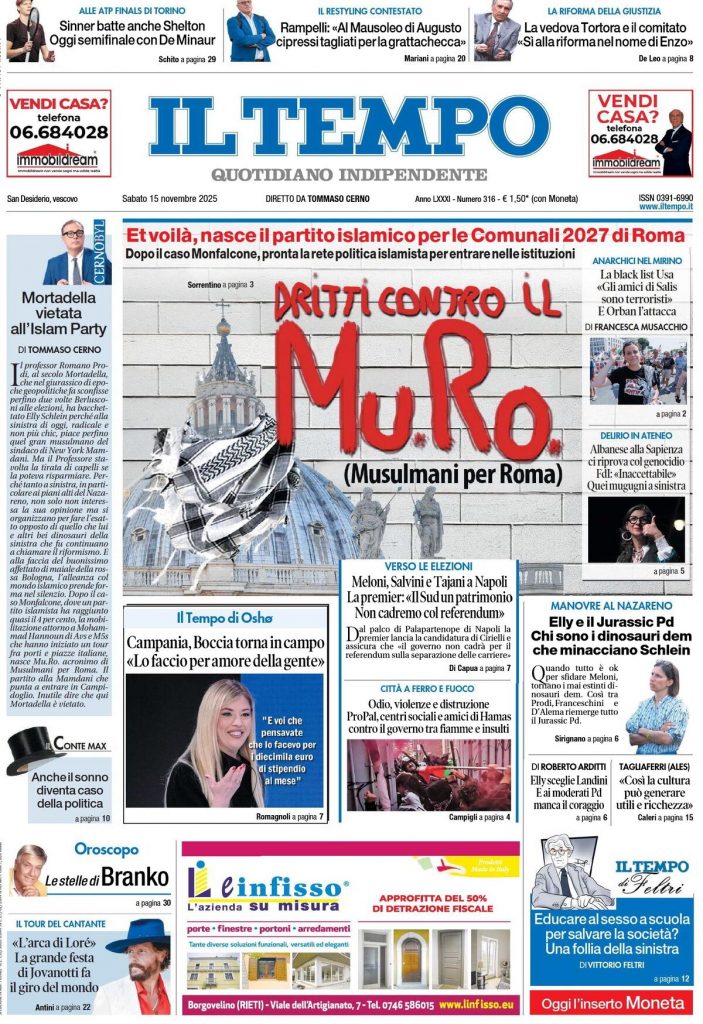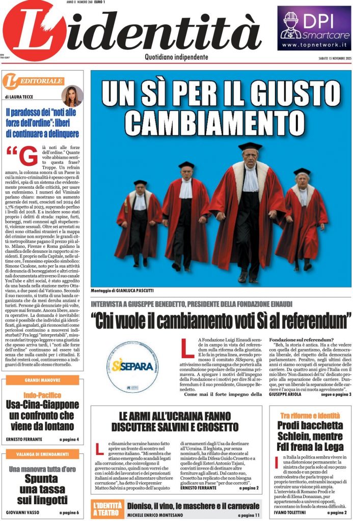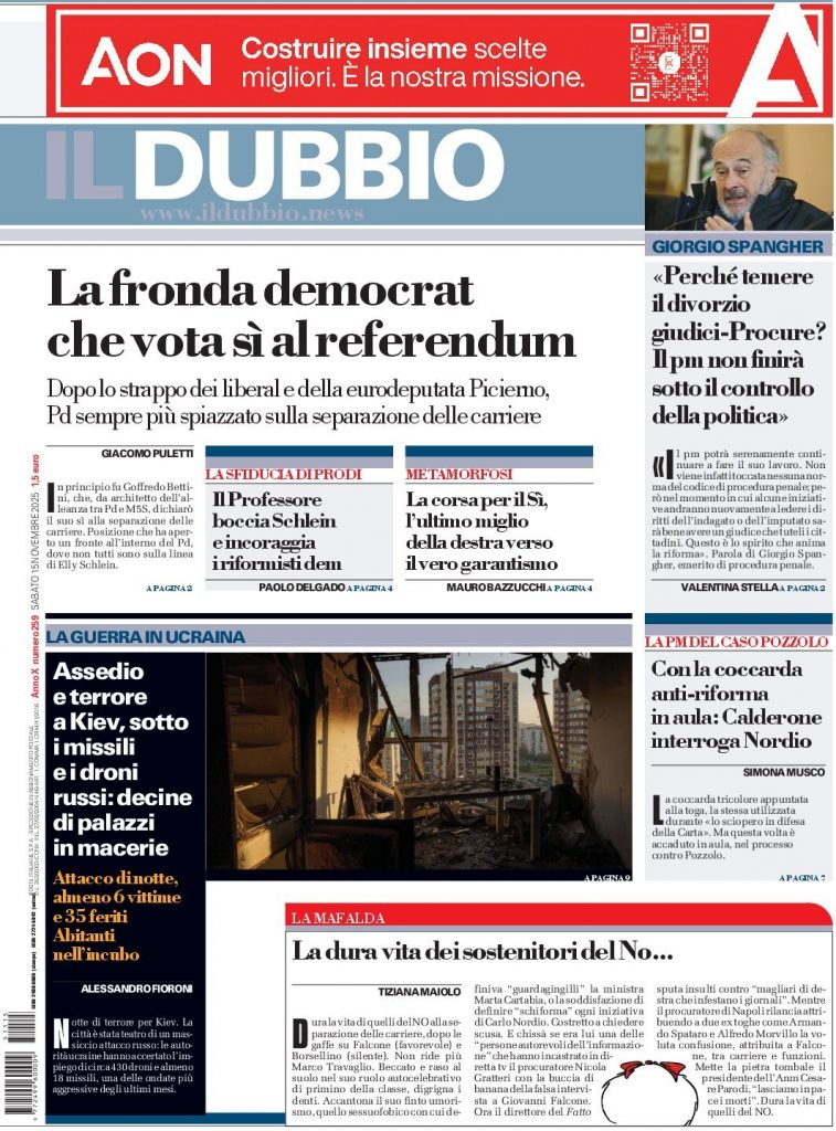 Reading: Le prime pagine delle maggiori testate giornalistiche siciliane, nazionali, economiche, sportive e straniere in Italia di Sabato 15 Novembre 2025