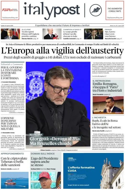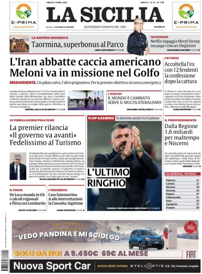 Le prime pagine delle maggiori testate giornalistiche siciliane, nazionali, economiche, sportive e straniere in Italia