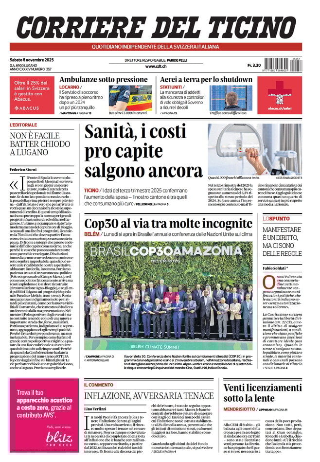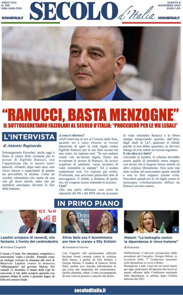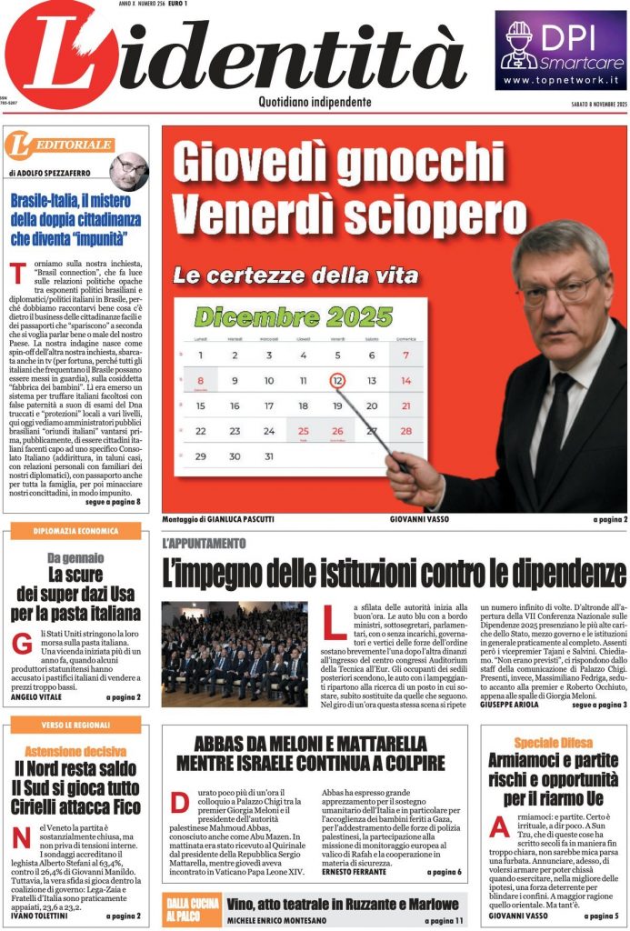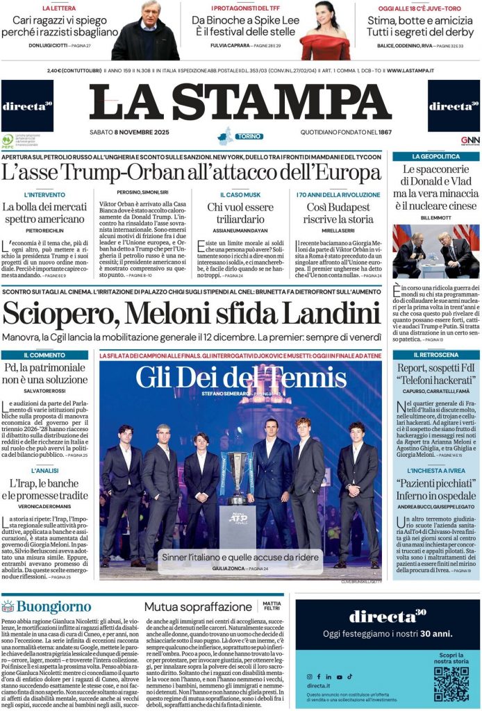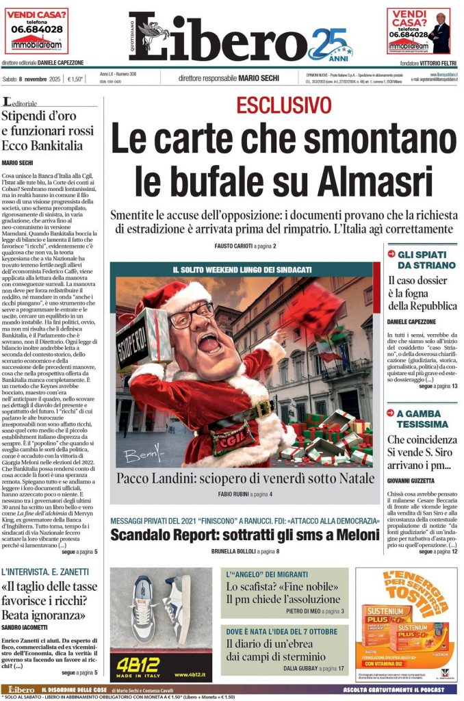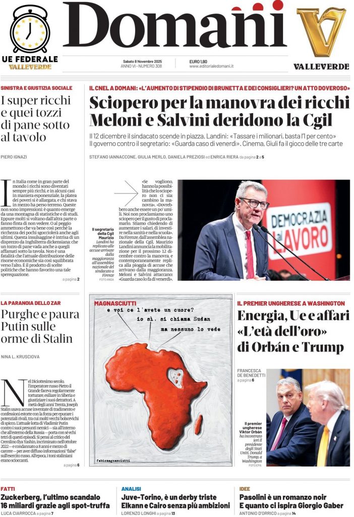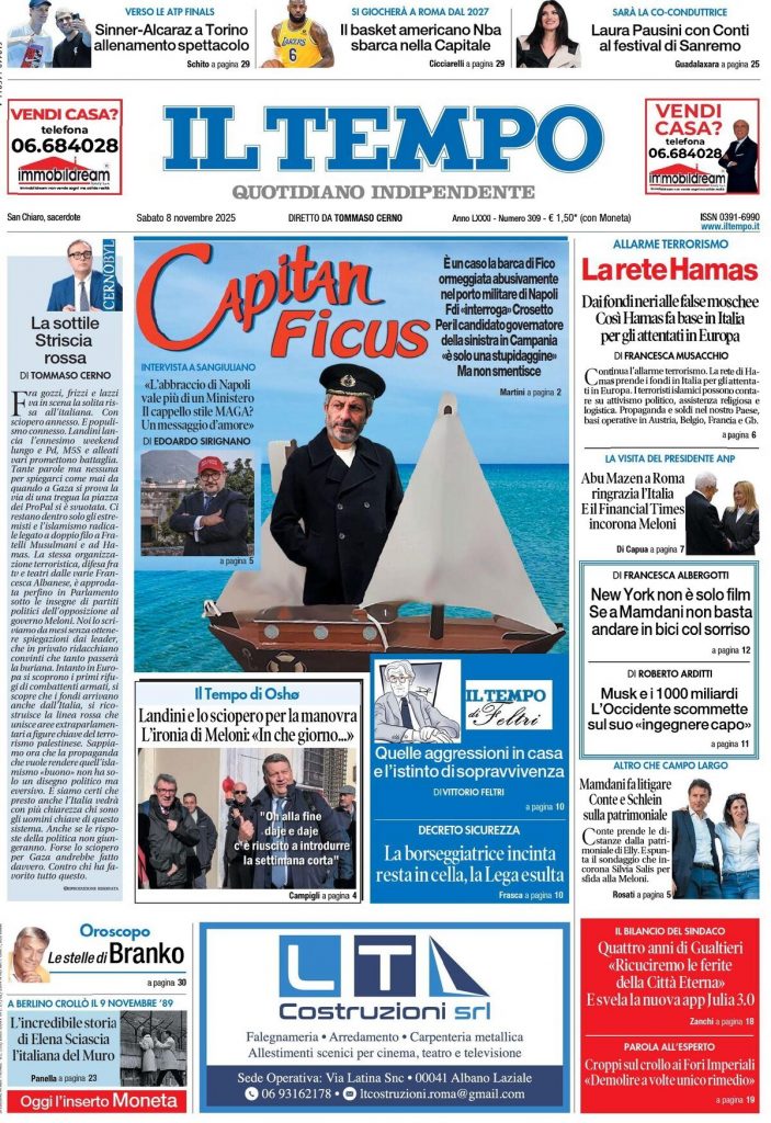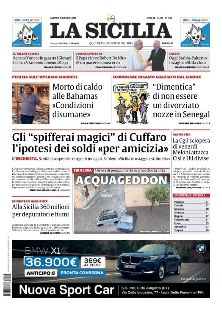 Caltanissetta 401 > News > Rassegna stampa > Le prime pagine delle maggiori testate giornalistiche siciliane, nazionali, economiche, sportive e straniere in Italia di Sabato 8 Novembre 2025