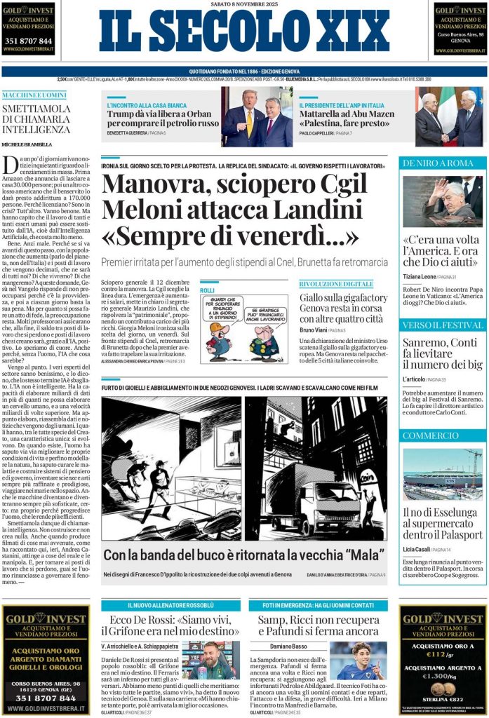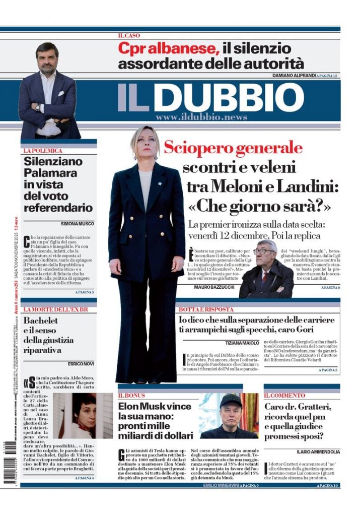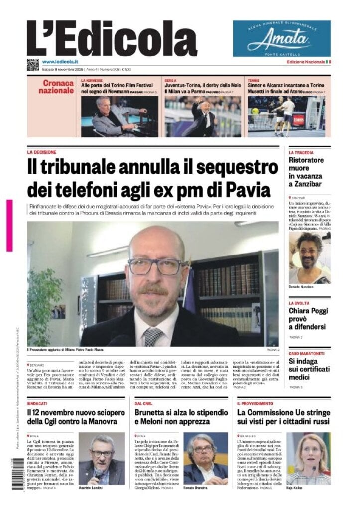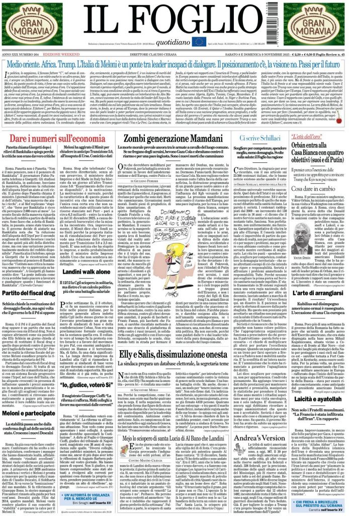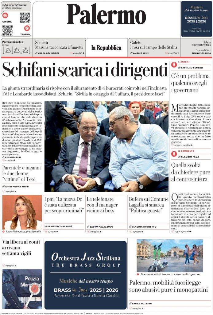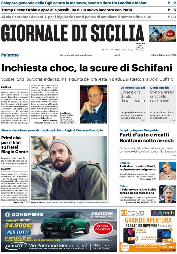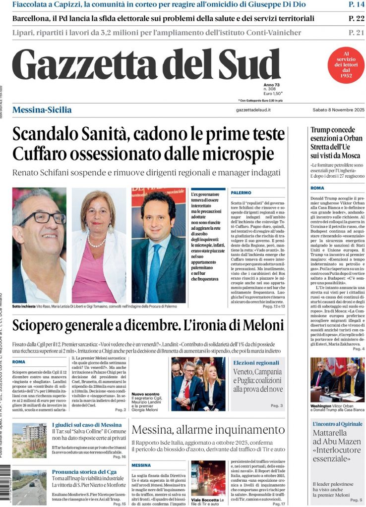 Reading: Le prime pagine delle maggiori testate giornalistiche siciliane, nazionali, economiche, sportive e straniere in Italia di Sabato 8 Novembre 2025