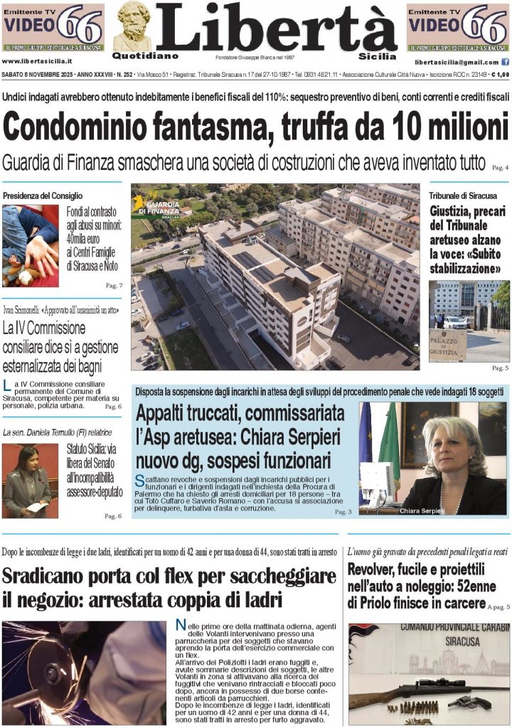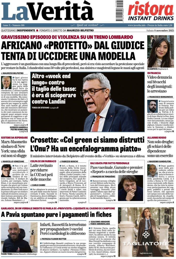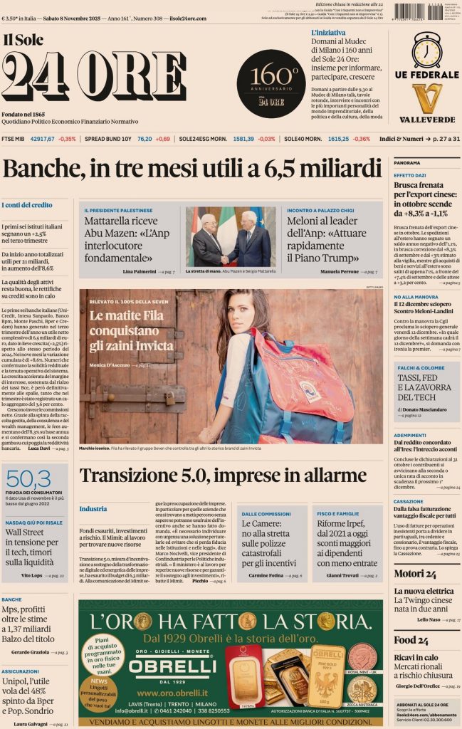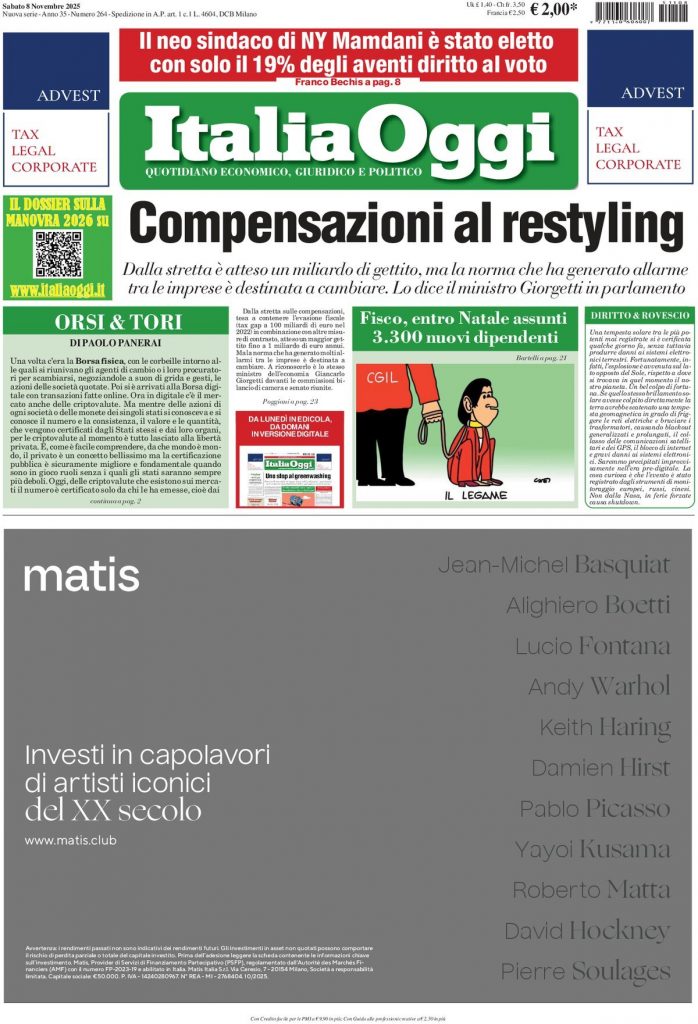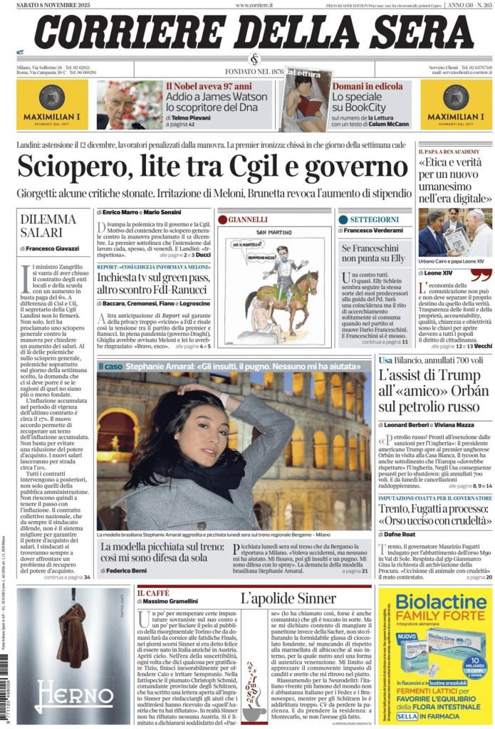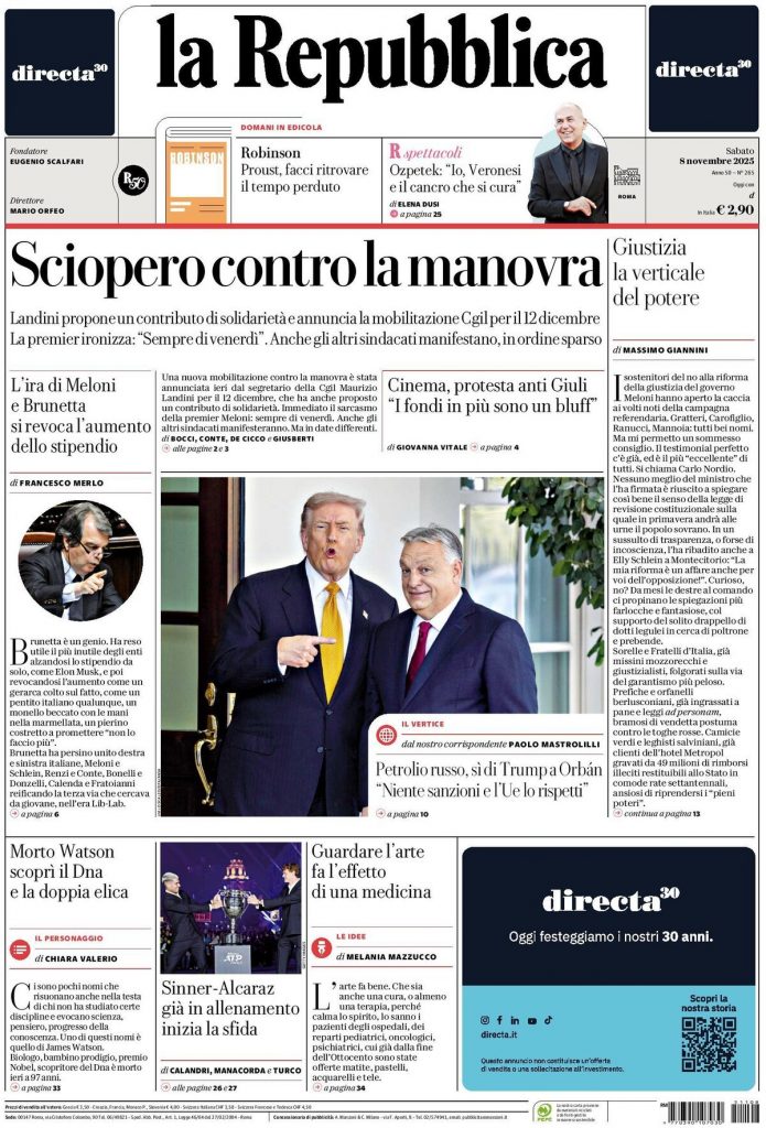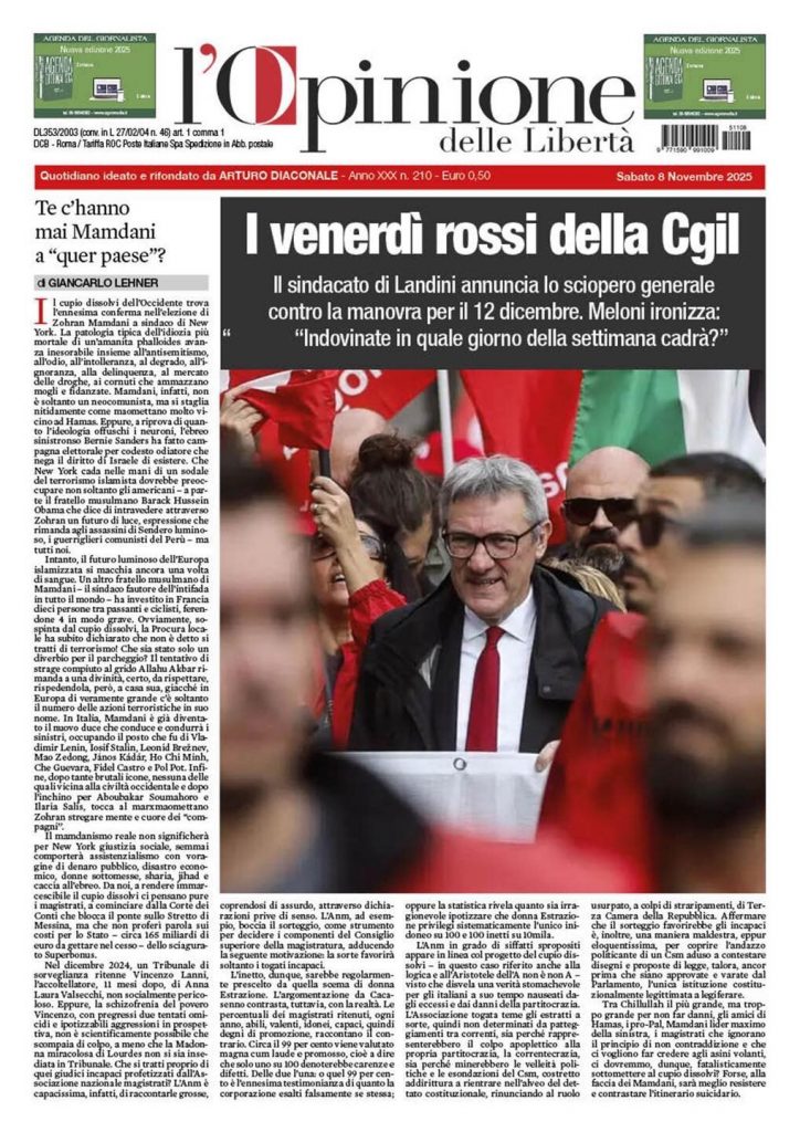 Reading: Le prime pagine delle maggiori testate giornalistiche siciliane, nazionali, economiche, sportive e straniere in Italia di Sabato 8 Novembre 2025