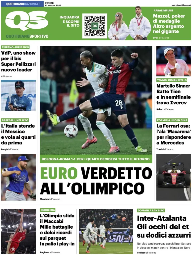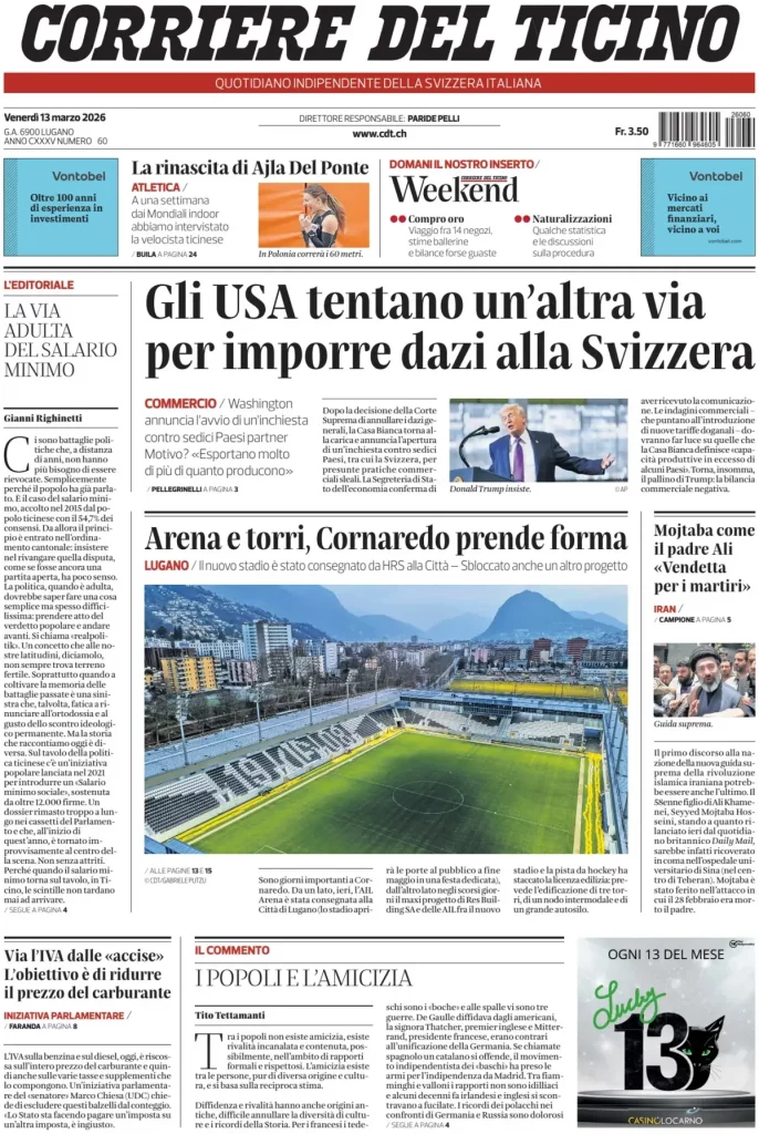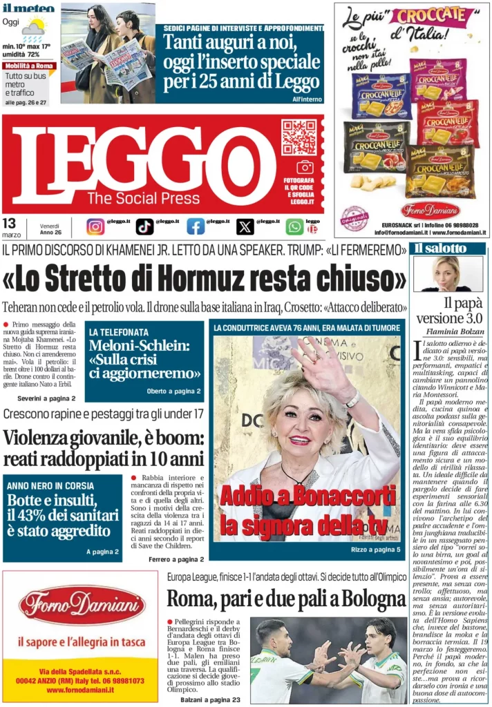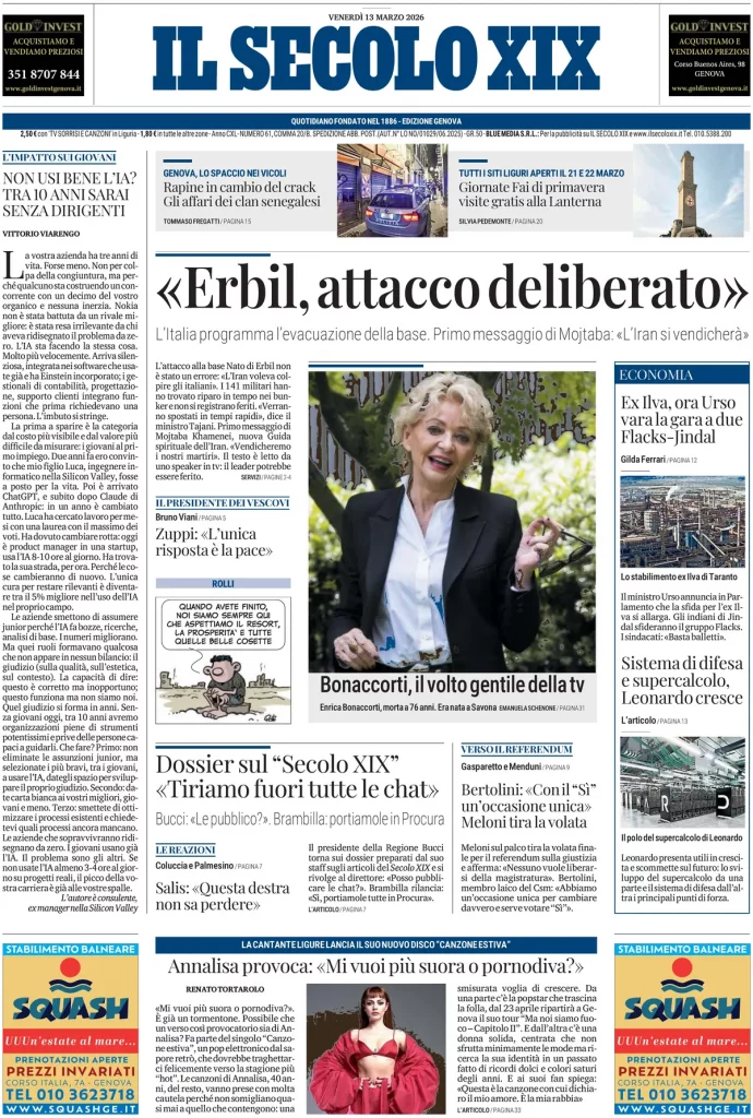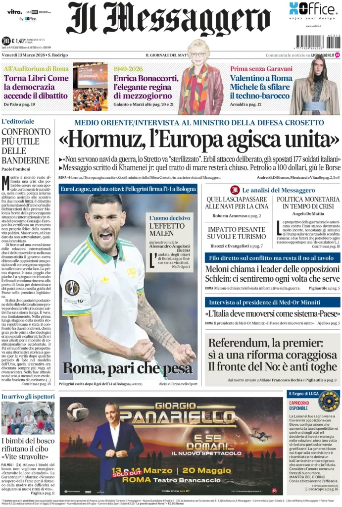 Reading: Le prime pagine delle maggiori testate giornalistiche siciliane, nazionali, economiche, sportive e straniere in Italia di Venerdì 13 Marzo 2026