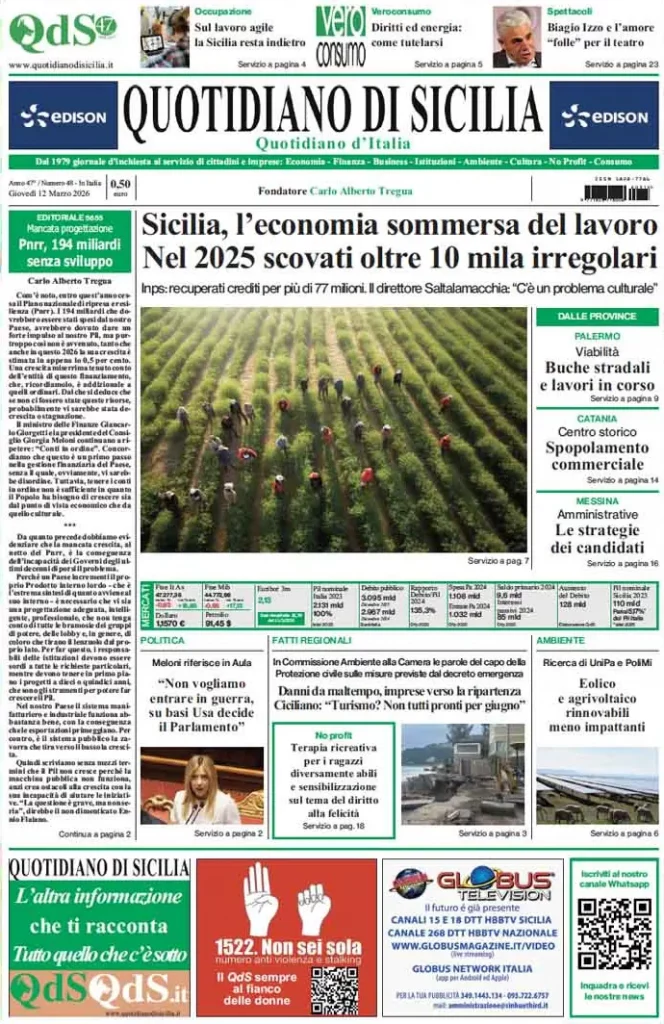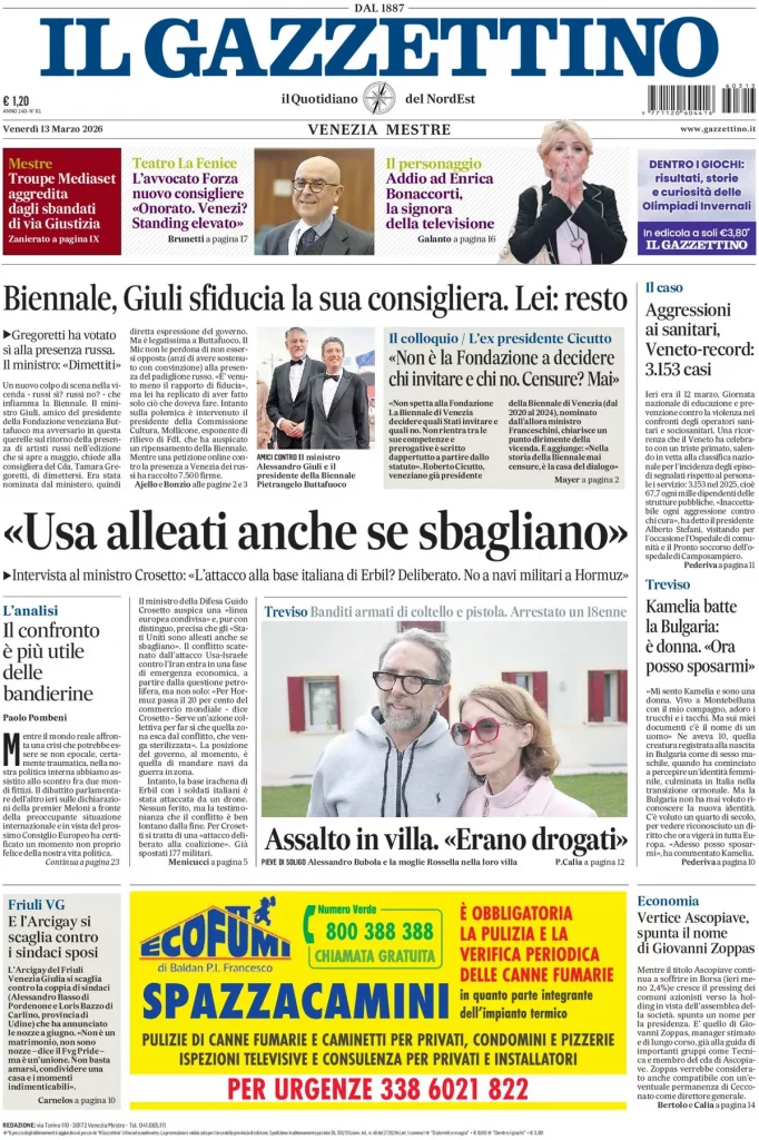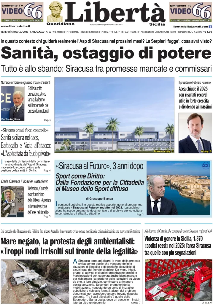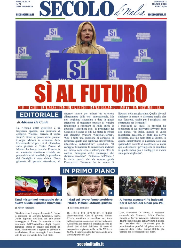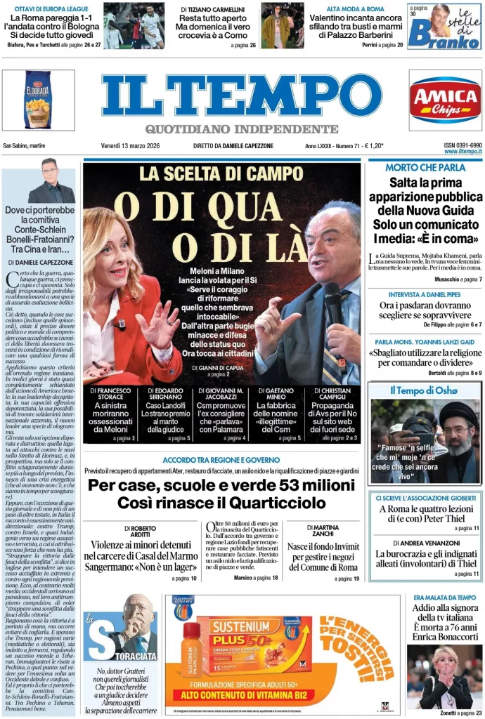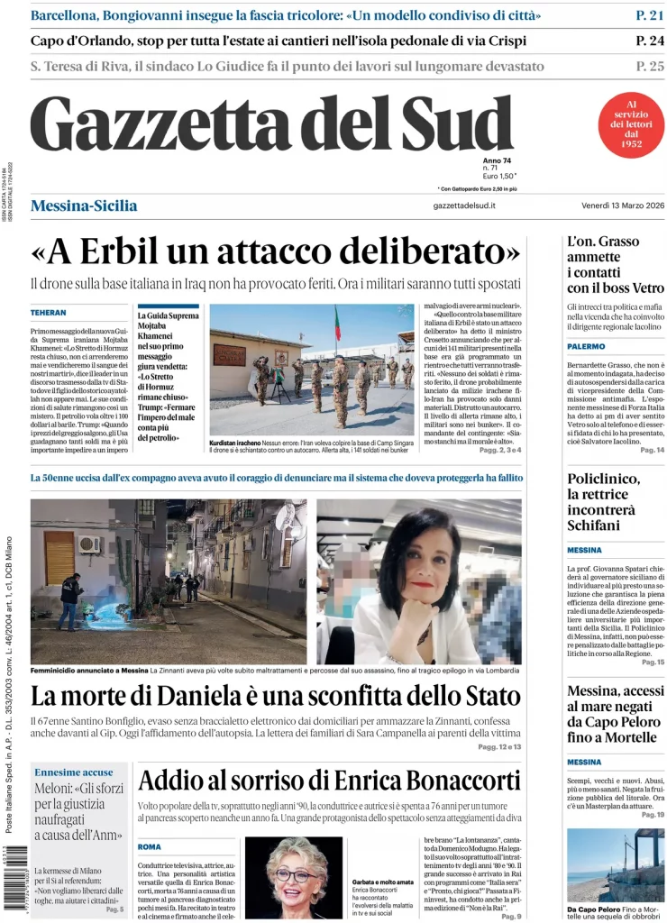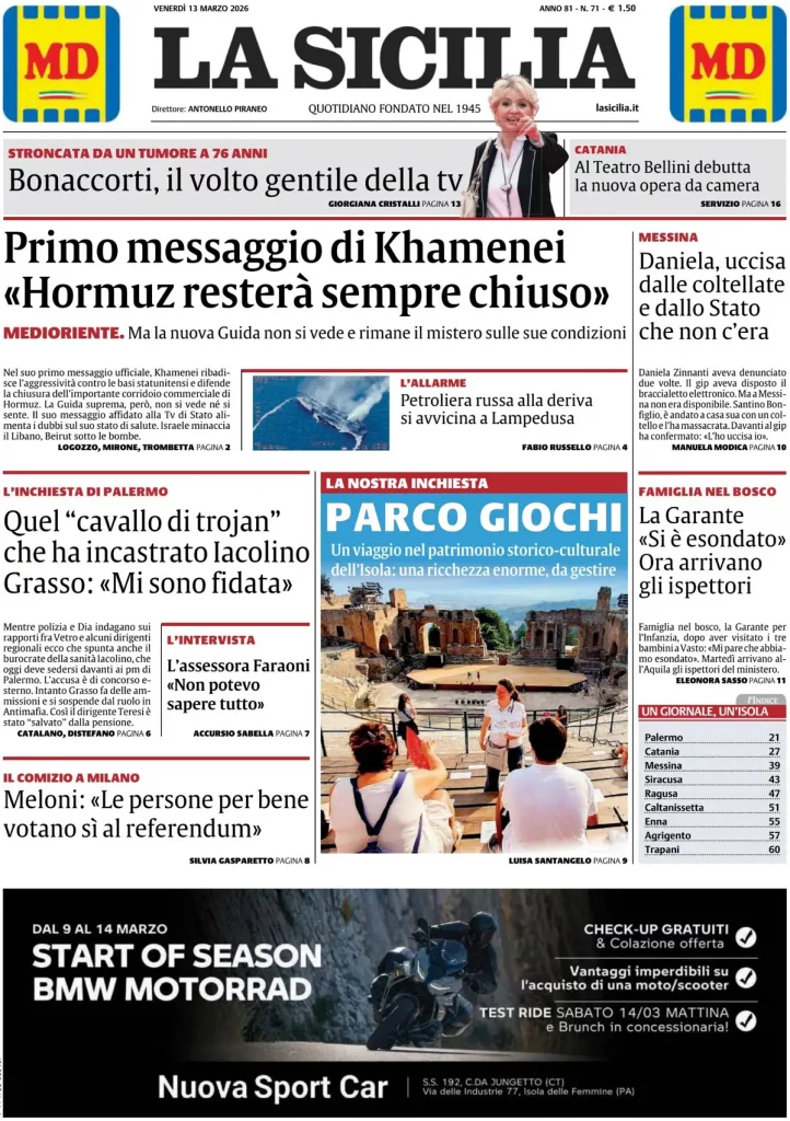 Caltanissetta 401 > News > Rassegna stampa > Le prime pagine delle maggiori testate giornalistiche siciliane, nazionali, economiche, sportive e straniere in Italia di Venerdì 13 Marzo 2026