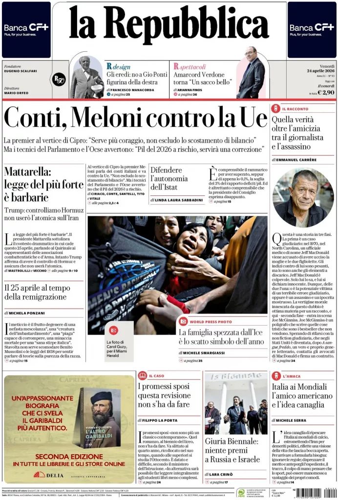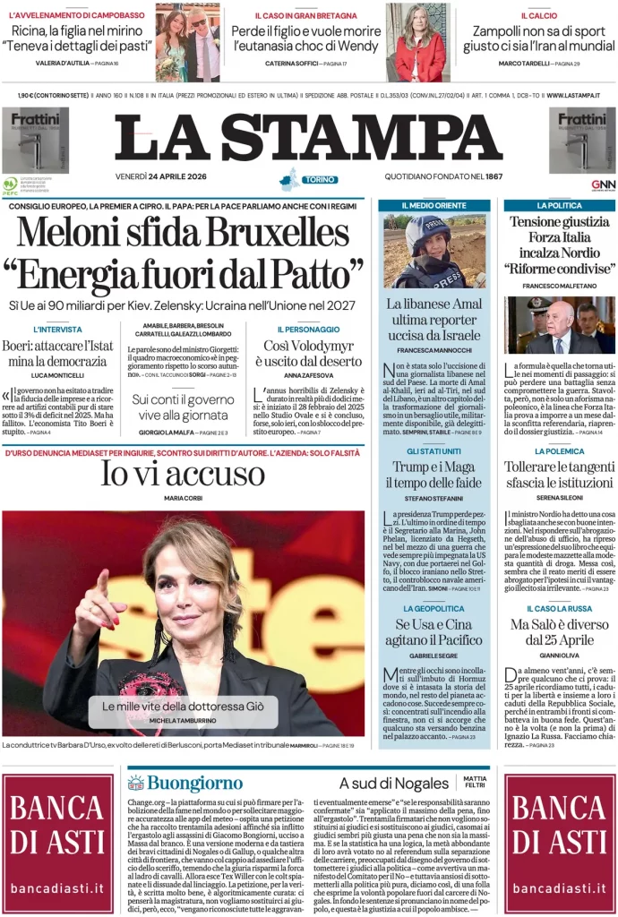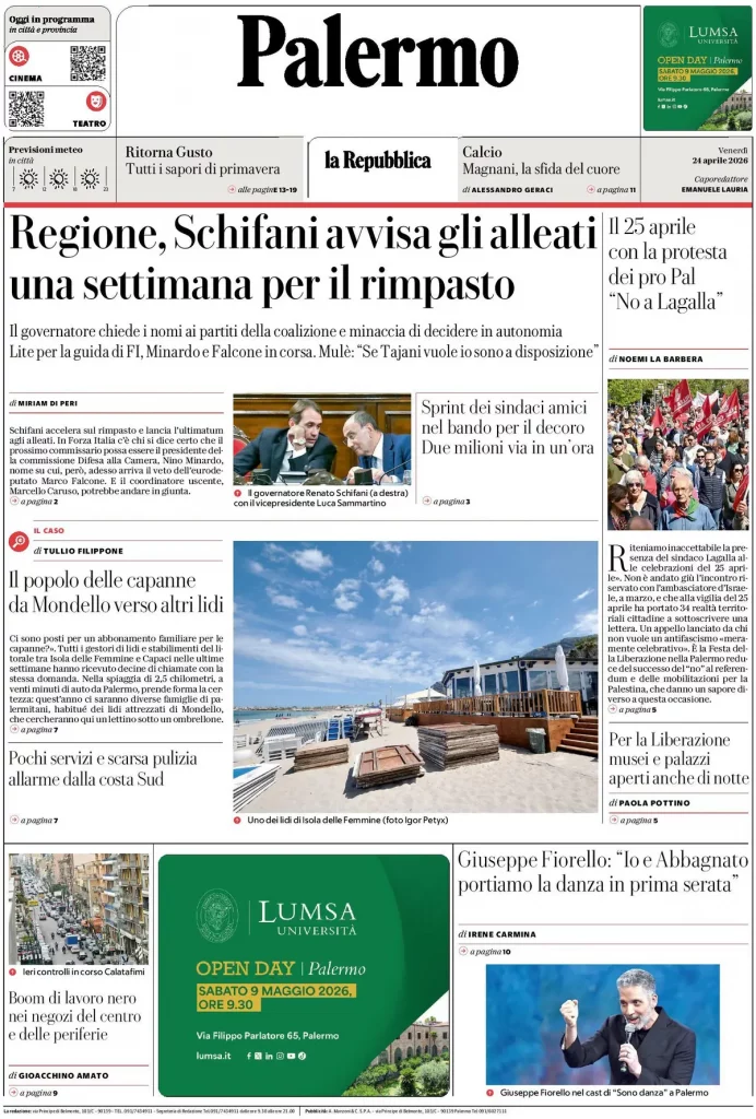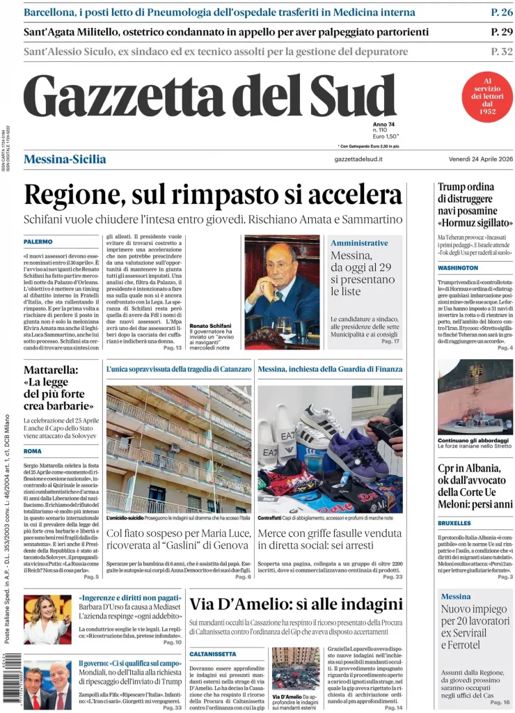 Le prime pagine delle maggiori testate giornalistiche siciliane, nazionali, economiche, sportive e straniere in Italia