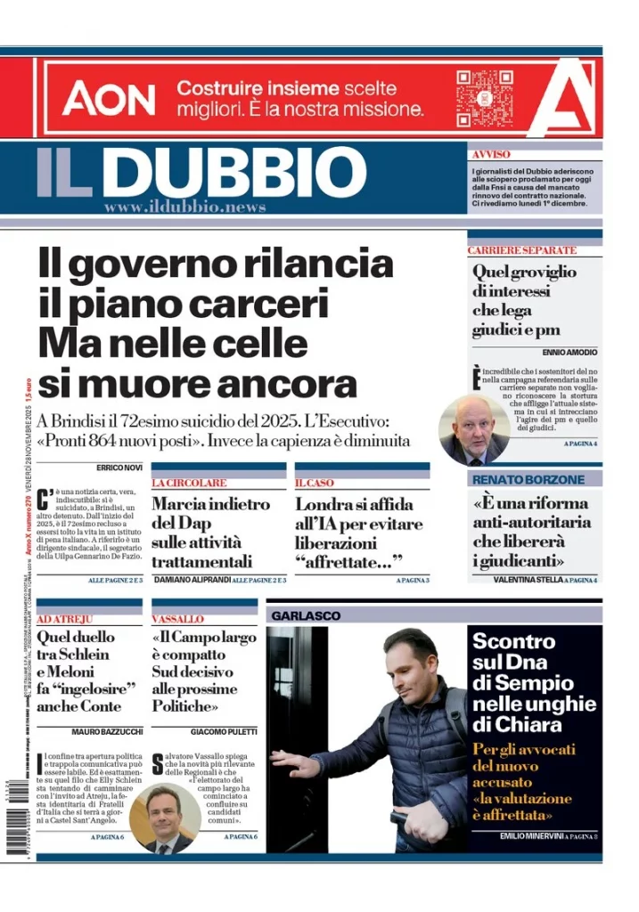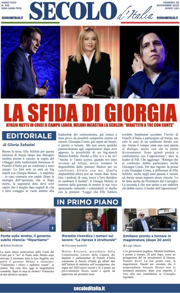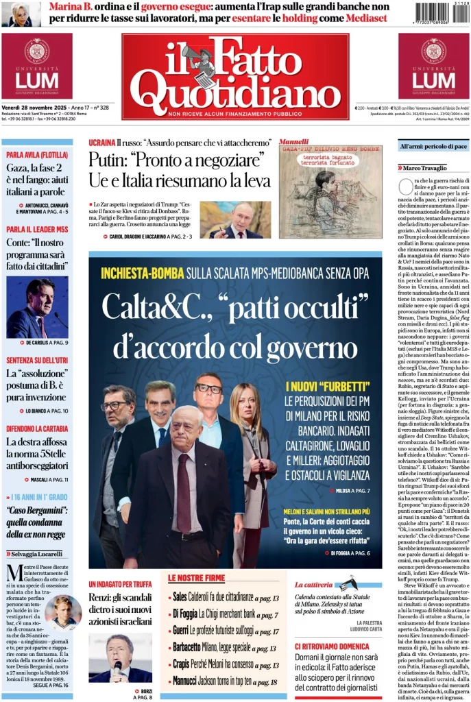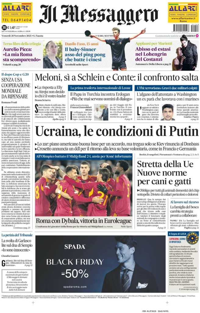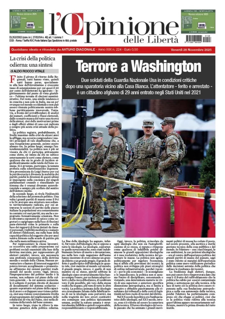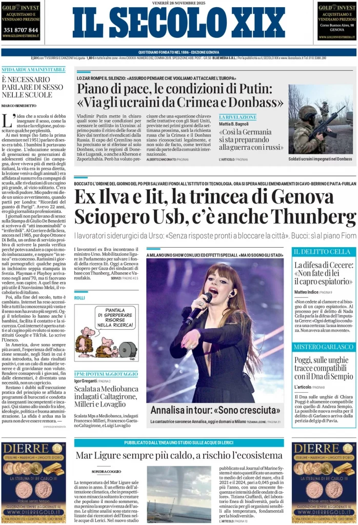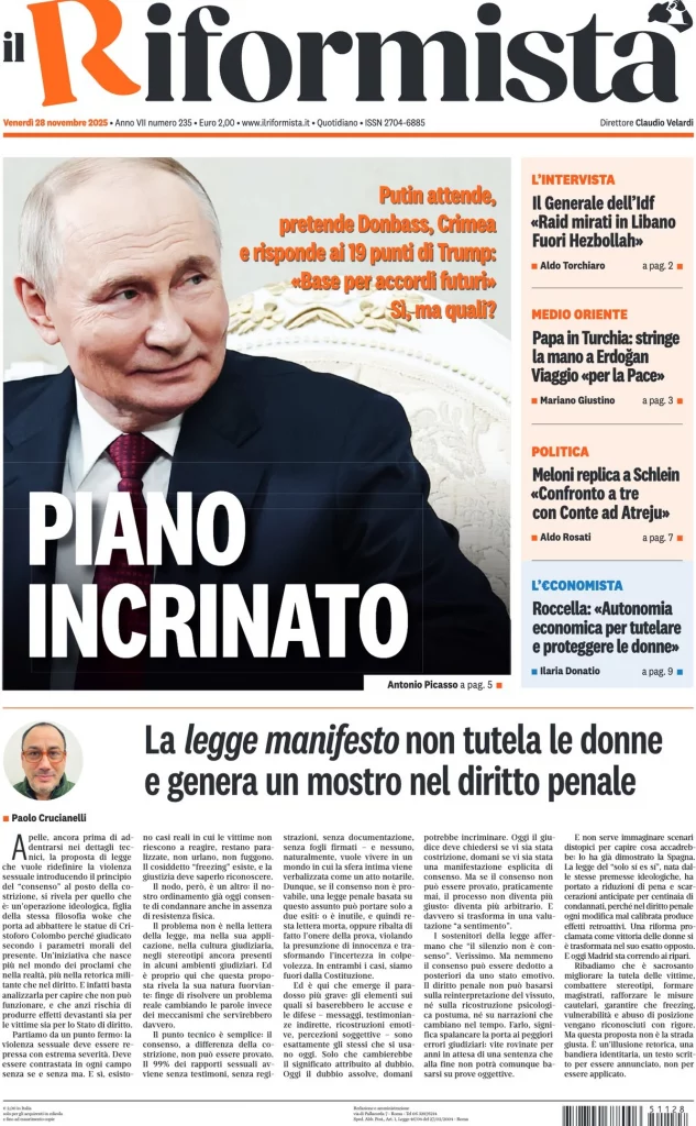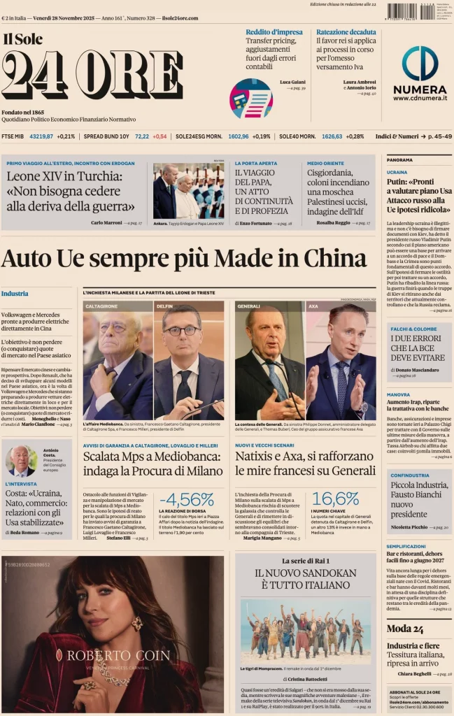 Reading: Le prime pagine delle maggiori testate giornalistiche siciliane, nazionali, economiche, sportive e straniere in Italia di Venerdì 28 Novembre 2025
