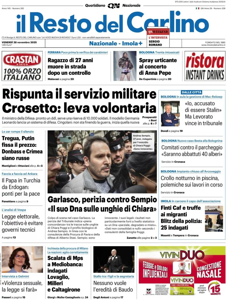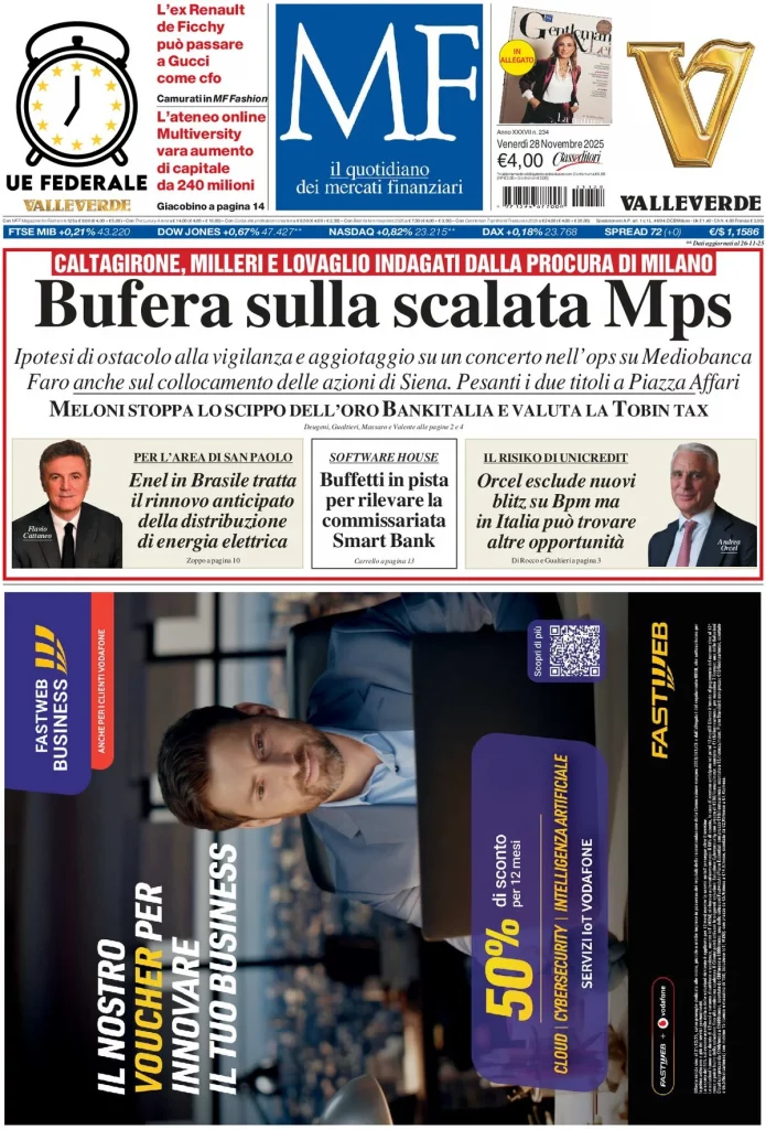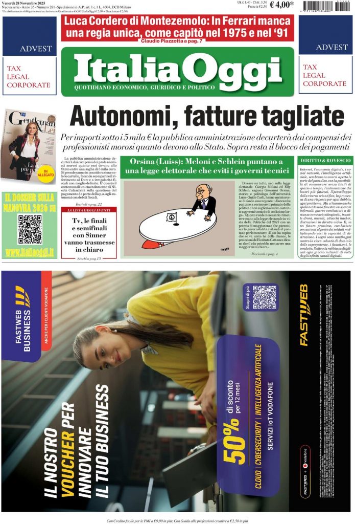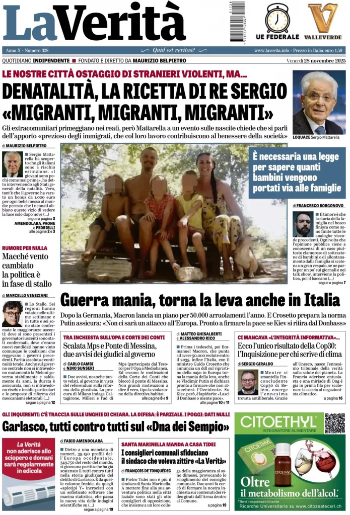 Caltanissetta 401 > News > Rassegna stampa > Le prime pagine delle maggiori testate giornalistiche siciliane, nazionali, economiche, sportive e straniere in Italia di Venerdì 28 Novembre 2025