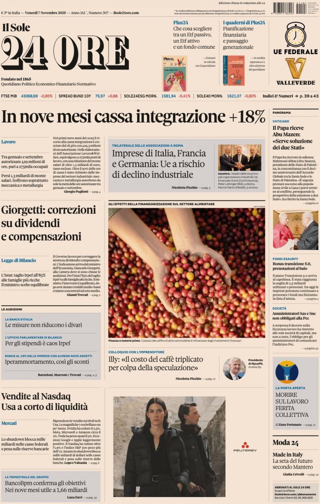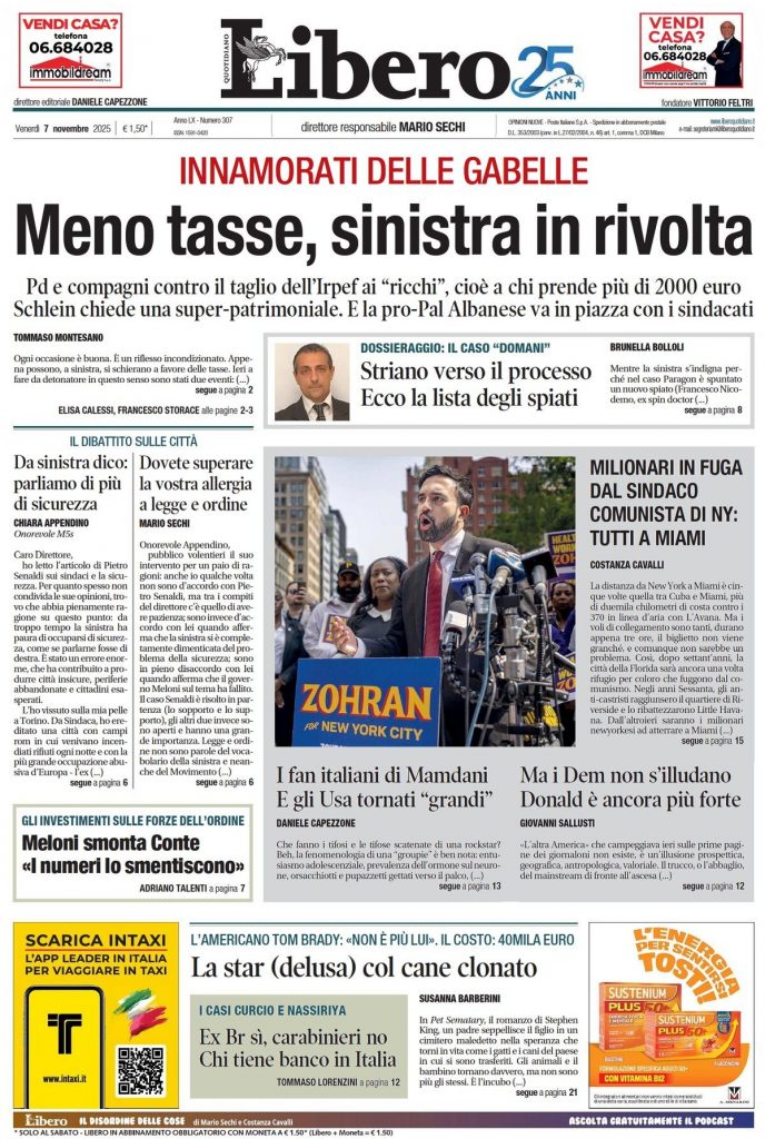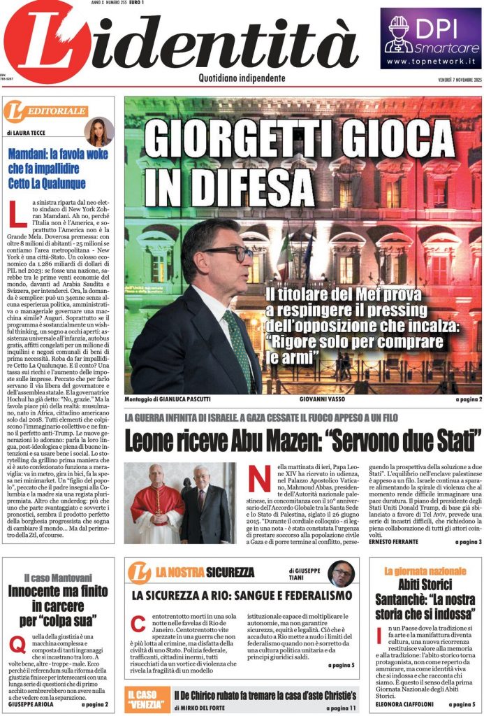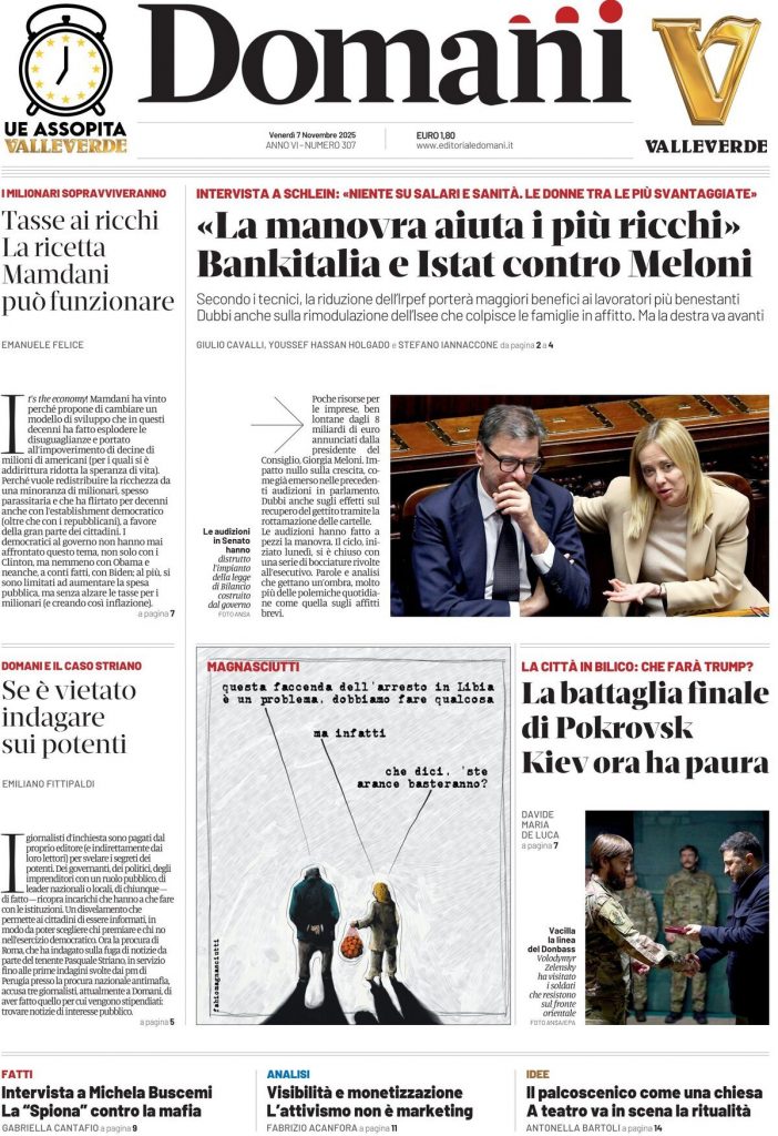 Reading: Le prime pagine delle maggiori testate giornalistiche siciliane, nazionali, economiche, sportive e straniere in Italia di Venerdì 7 Novembre 2025
