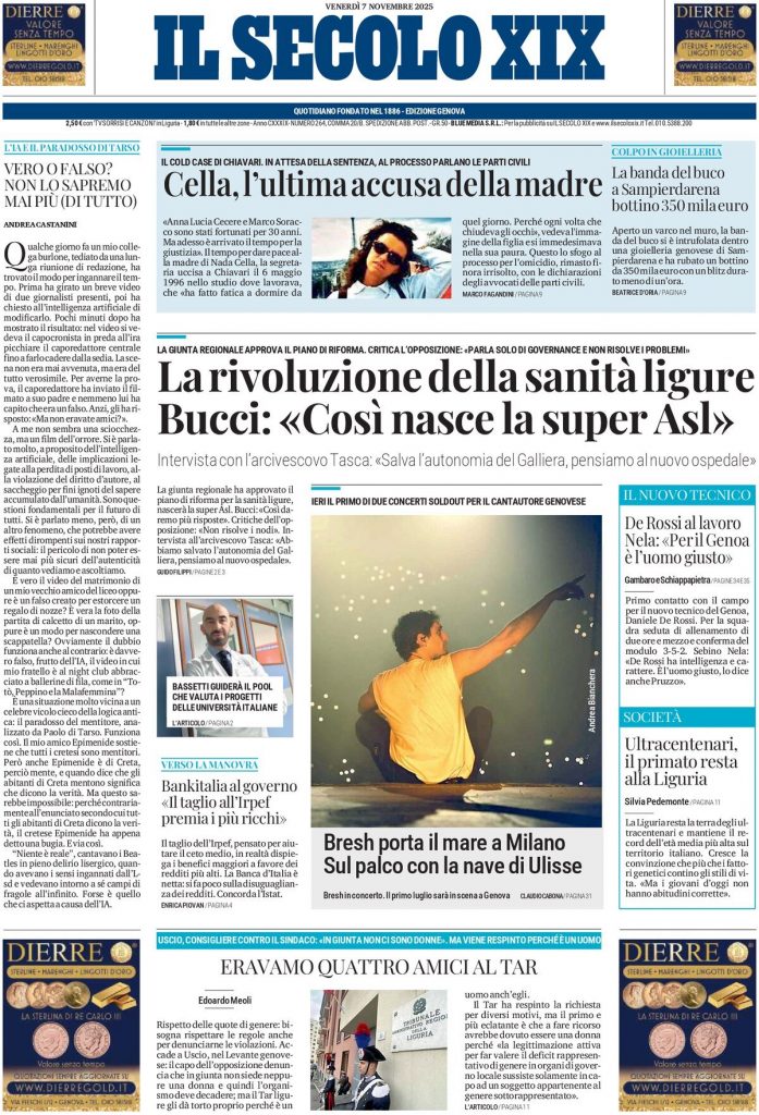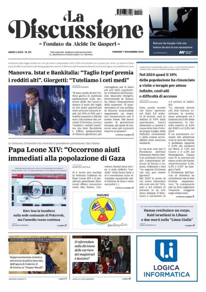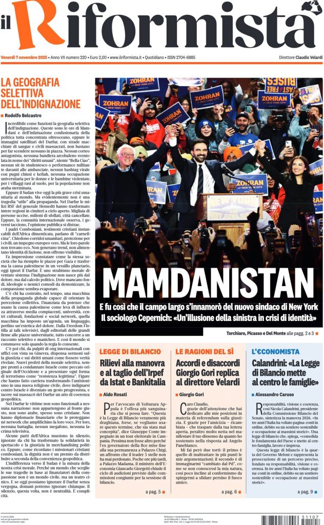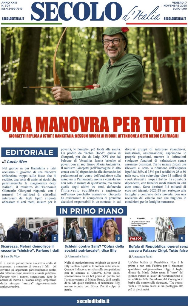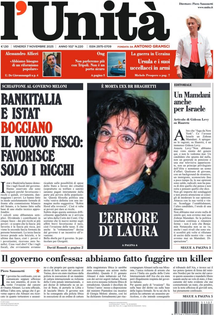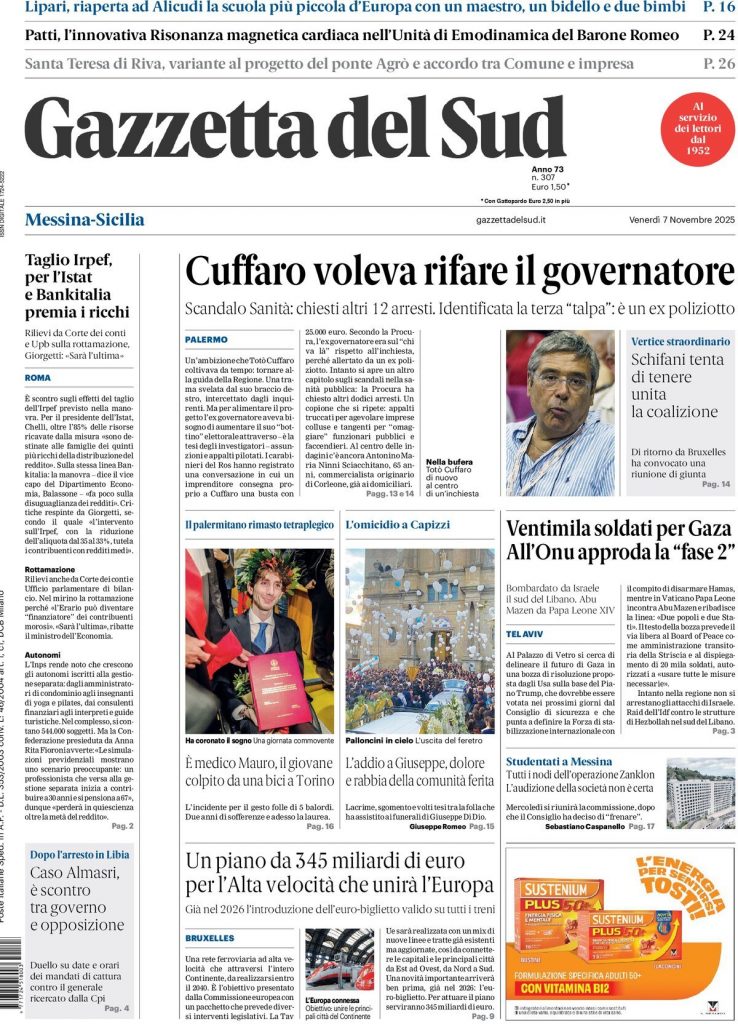 Caltanissetta 401 > News > Rassegna stampa > Le prime pagine delle maggiori testate giornalistiche siciliane, nazionali, economiche, sportive e straniere in Italia di Venerdì 7 Novembre 2025