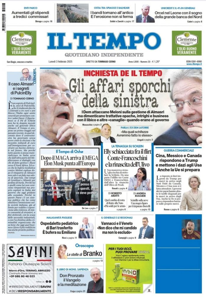 Rassegna stampa Le prime pagine di Lunedi 3 Febbraio 2025 Last updated: 03/02/2025 6:20 By Redazione 105 Views 0 Min Read Share SHARE You Might Also Like Papa Francesco, Vaticano: “Piccoli miglioramenti con la fisioterapia motoria e respiratoria” Strage di civili e attacco alla delegazione Ue: Mosca alza il tiro con l’ultimo attacco su Kiev Forza Italia, lunedì Tajani atteso da Marina Berlusconi: incontro programmato da tempo Forza Italia, Tajani a Cologno Monzese: incontra Marina e Pier Silvio Berlusconi Manovra, dal taglio dell’Irpef ai bonus per le famiglie: tutte le misure voce per voce TAGGED:Le prime pagineRassegna stampa Share This Article Facebook Twitter Whatsapp Whatsapp Email Copy Link Print