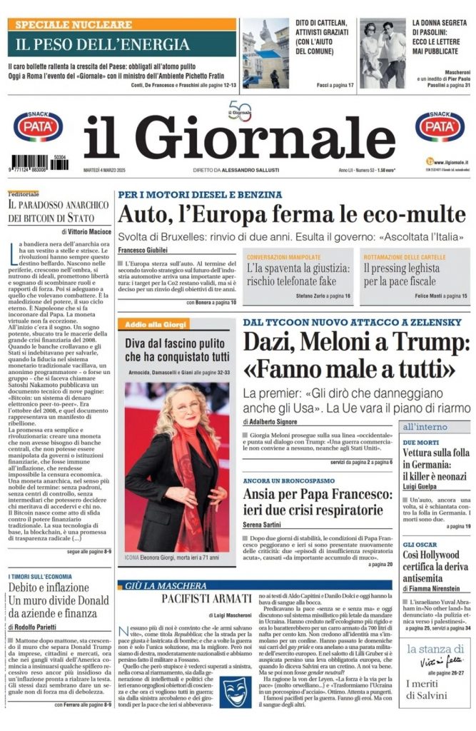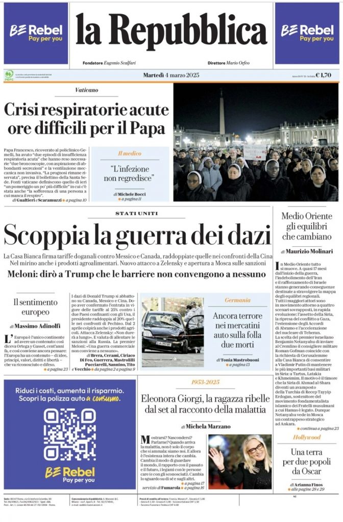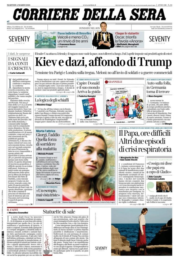 Rassegna stampa Le prime pagine di Martedì 4 Marzo 2025 Last updated: 04/03/2025 6:14 By Redazione 103 Views 0 Min Read Share SHARE You Might Also Like Referendum, Marano (M5s): “Vinciamo insieme questa battaglia di giustizia sociale” Oroscopo del giorno, le previsioni di Lunedì 6 Ottobre segno per segno Maxi sequestro di latticini destinati alle mense scolastiche a Caltagirone Meloni e i giornalisti, storia di un rapporto complicato: risposte in calo, fastidio in aumento Auto elettriche, arrivano i nuovi incentivi: bonus fino a 20mila euro, ecco per chi e come funzionano TAGGED:Le prime pagineRassegna stampa Share This Article Facebook Twitter Whatsapp Whatsapp Email Copy Link Print