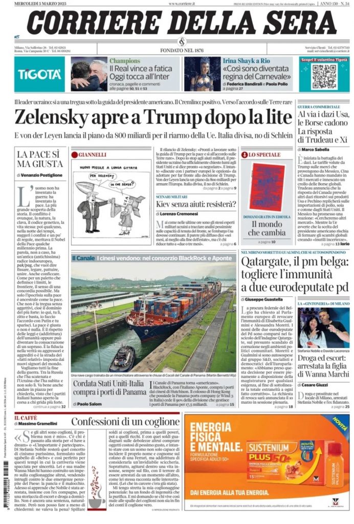 Rassegna stampa Le prime pagine di Mercoledì 5 Marzo 2025 Last updated: 05/03/2025 6:28 By Redazione 92 Views 0 Min Read Share SHARE You Might Also Like Gela, operazione di polizia giudiziaria “H24 Store” Accordo a rischio sui dazi, Donald snobba pure Giorgia Ucraina, Zelensky: “Non cederemo la nostra terra all’occupante”. Media: la Cina pronta a inviare truppe di peacekeeping a Kiev Caltanissetta: Cerimonia per ricordare i caduti della Polizia di Stato Meteo: Prossime ore, forti Temporali in arrivo su alcune regioni TAGGED:Le prime pagineRassegna stampa Share This Article Facebook Twitter Whatsapp Whatsapp Email Copy Link Print